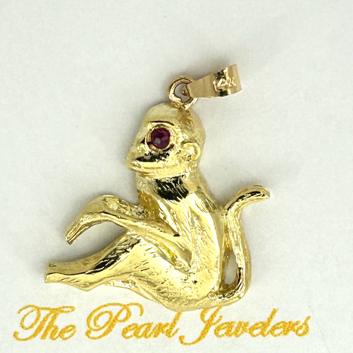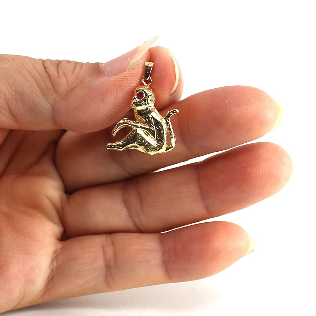 Handcrafted Chinese Zodiac Monkey Ruby Eye 14k Solid Gold Pendant