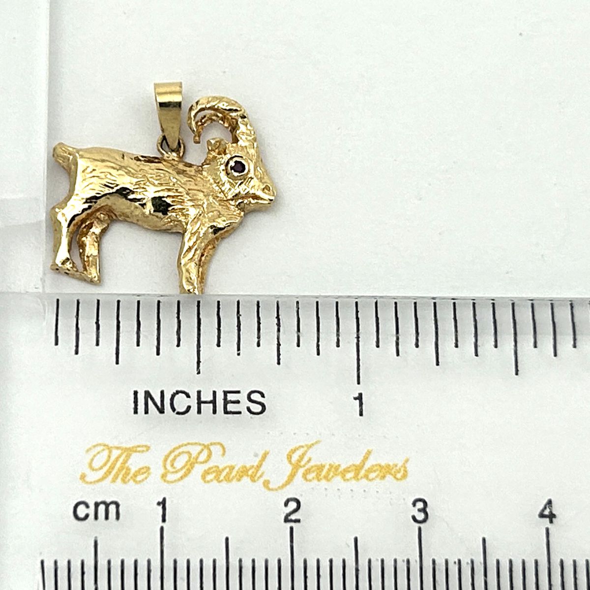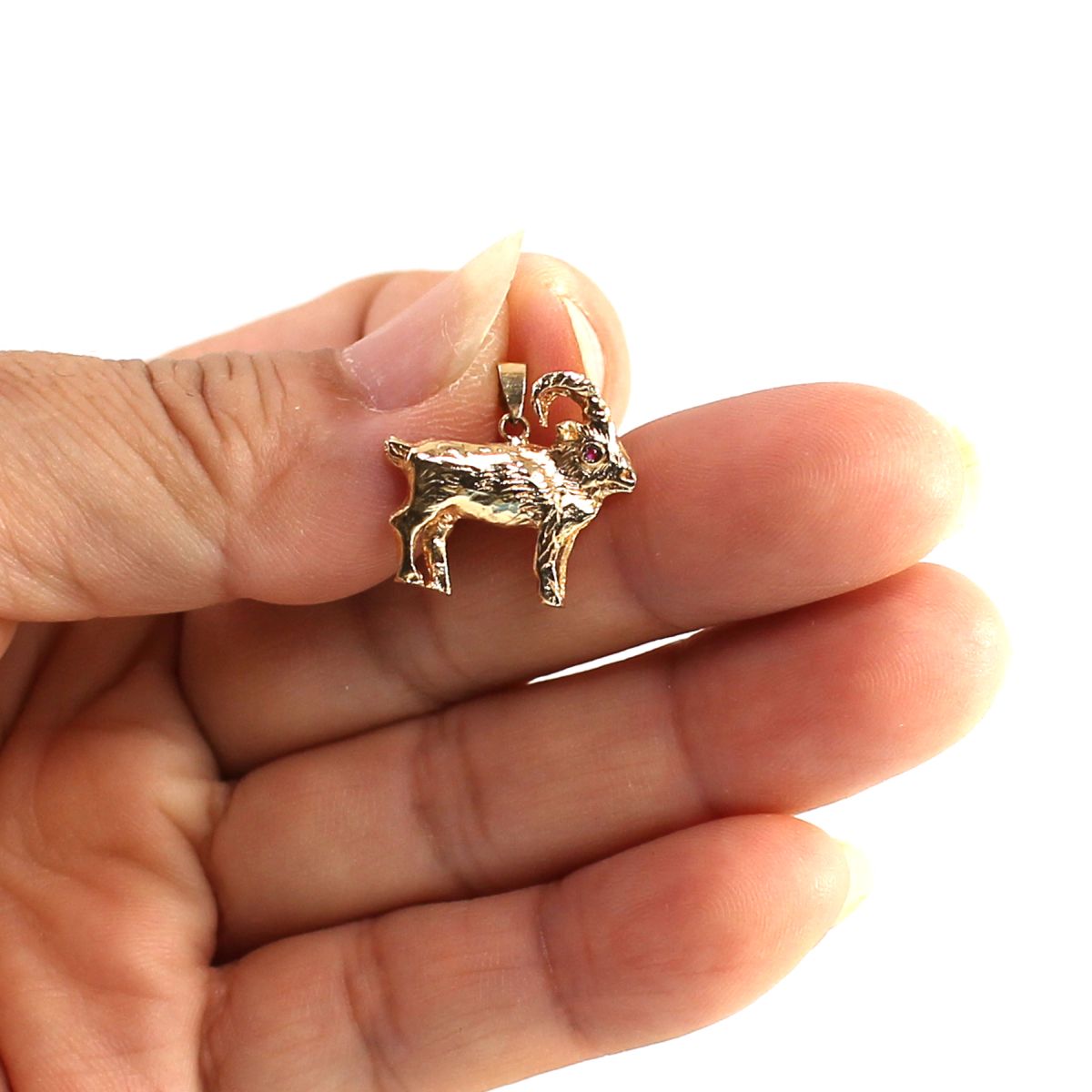 **Handcrafted Chinese Zodiac Goat Ruby Eye 14k Solid Gold Pendant**