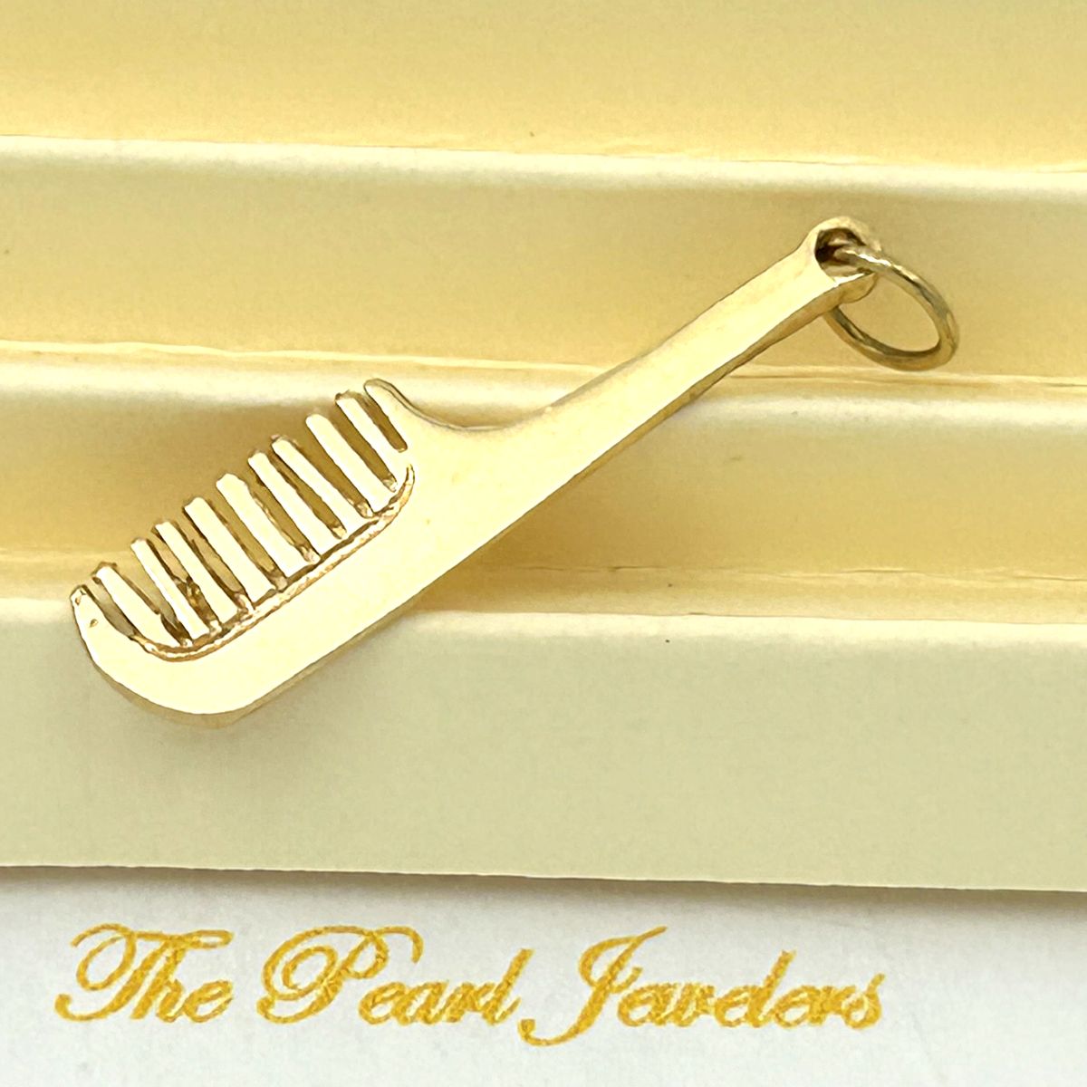 Crafted in solid 14k yellow gold, this unique comb charm adds a touch of fun and elegance to your jewelry collection. Perfect for everyday wear or as a thoughtful gift.