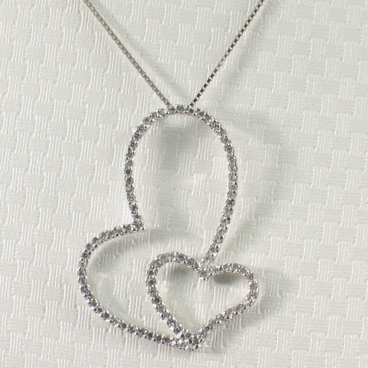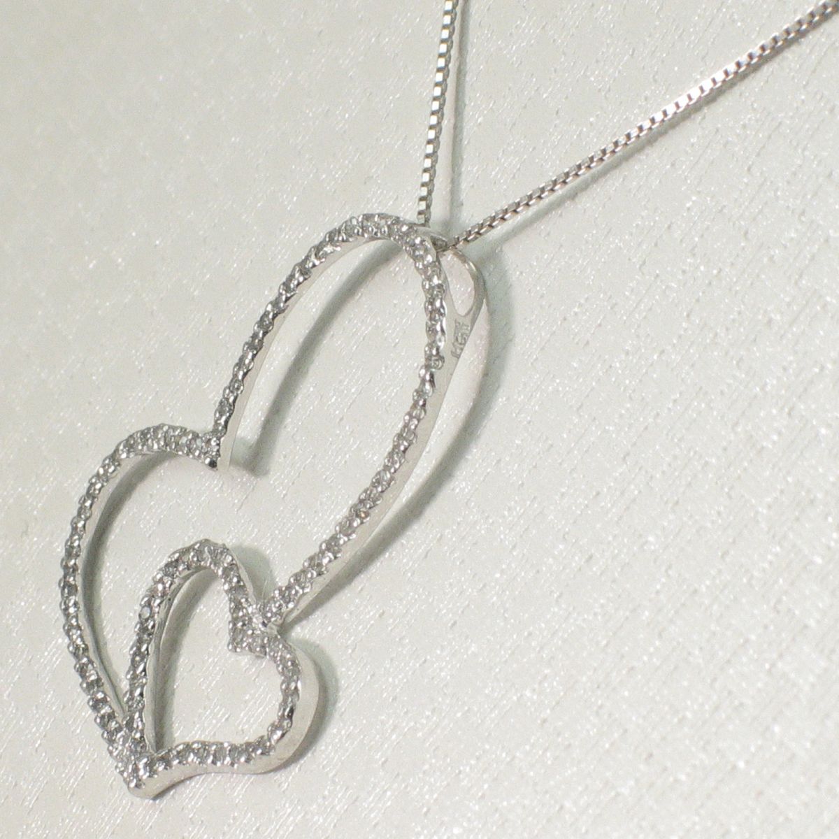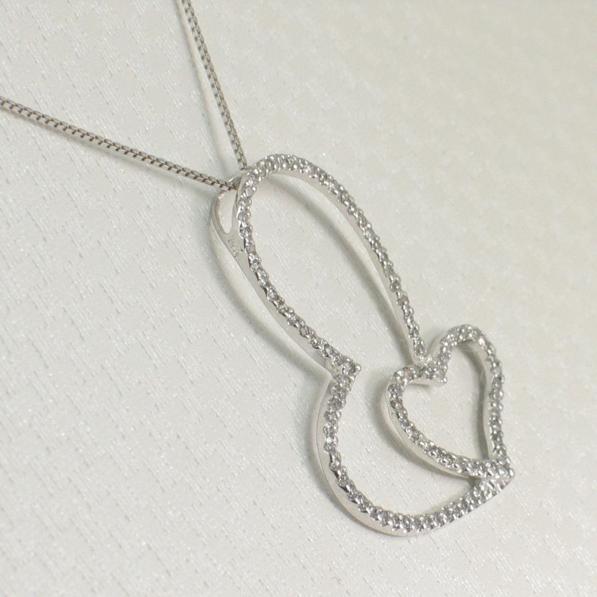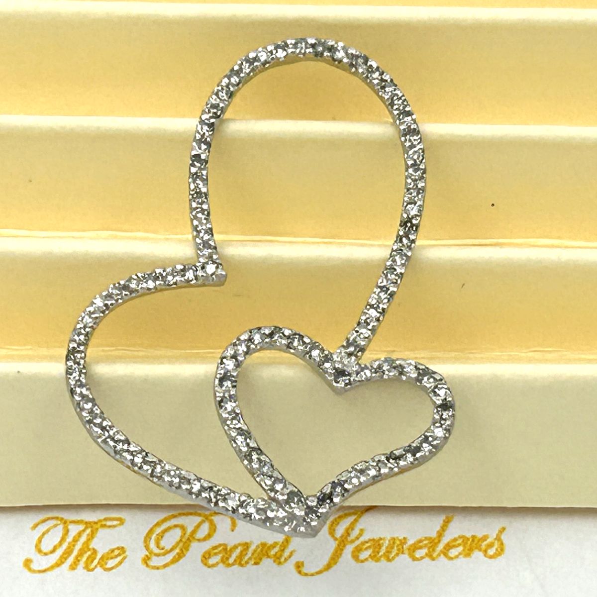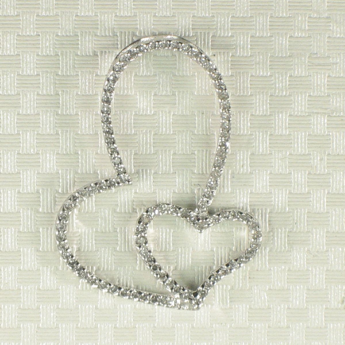 Crafted from solid 14k white gold, this pendant features a graceful heart-in-heart motif adorned with 89 sparkling genuine round diamonds. A refined piece that blends romance with modern elegance.