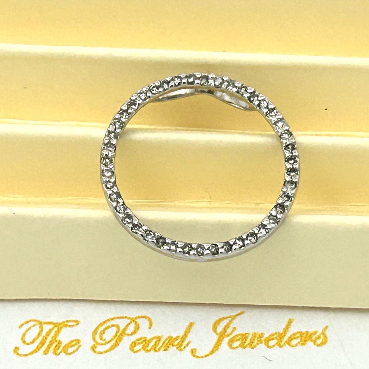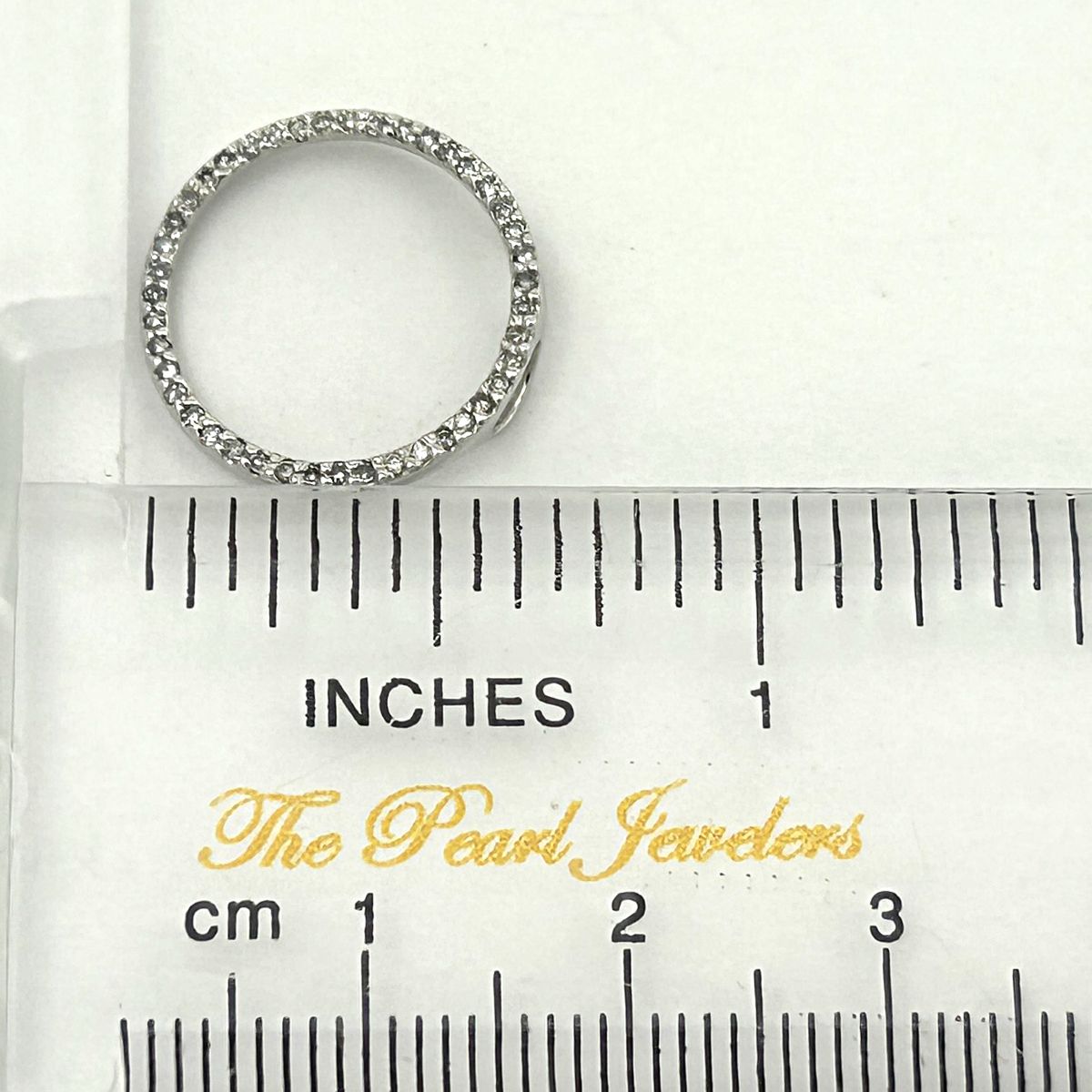 This elegant circle pendant is adorned with 43 shimmering round diamonds, set in solid 14k white gold with a polished finish.