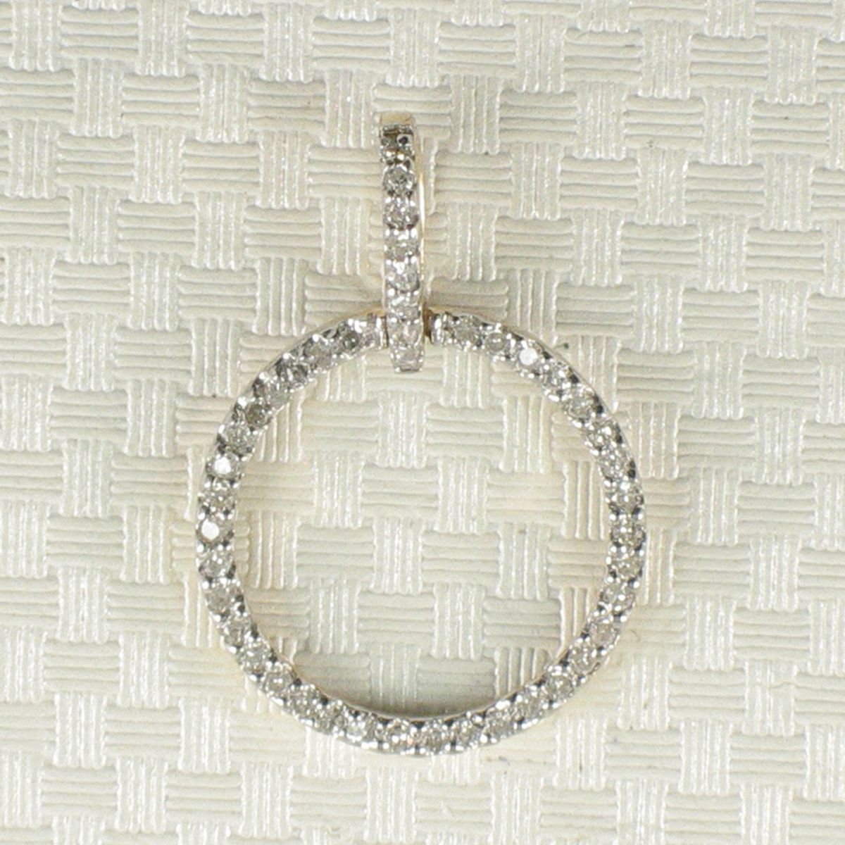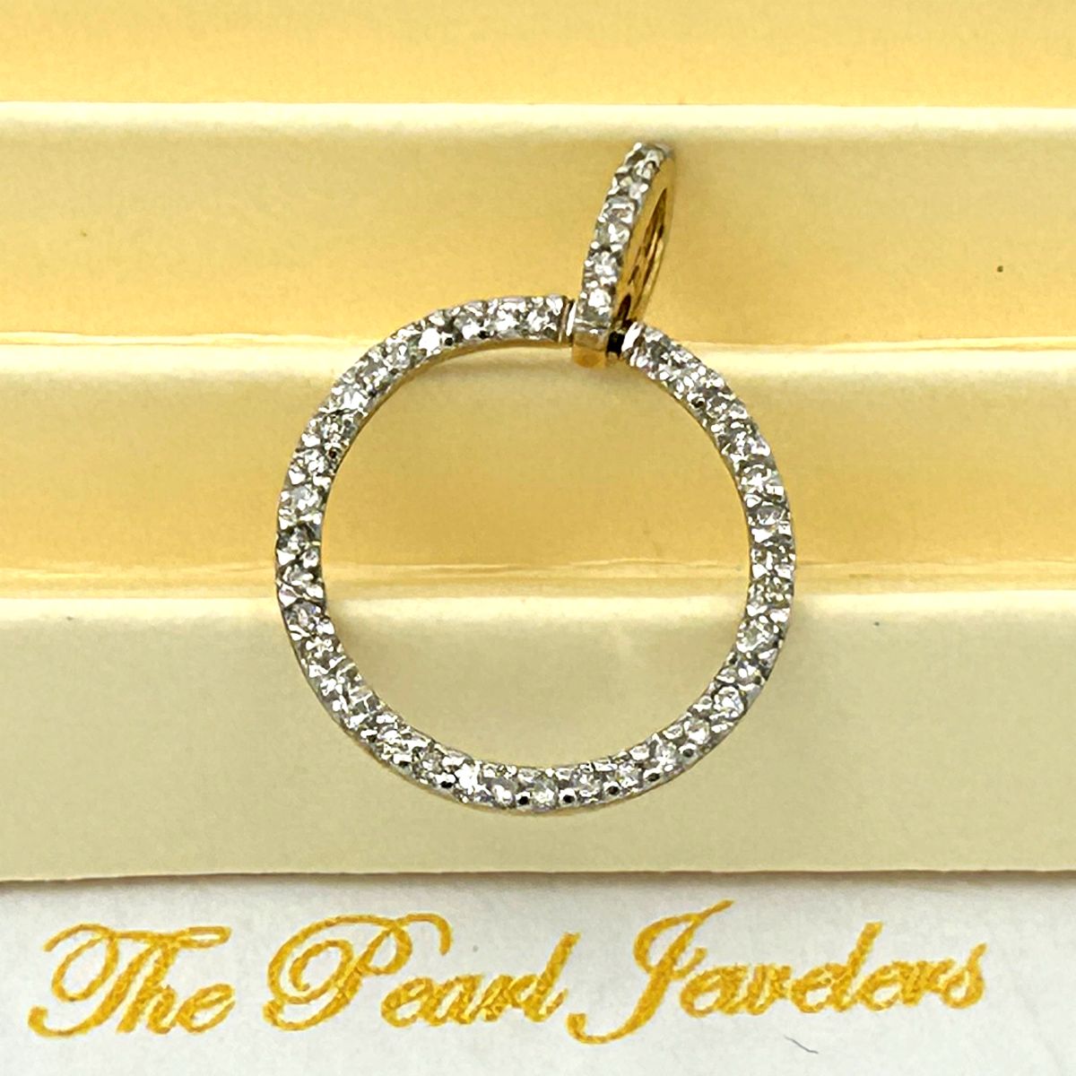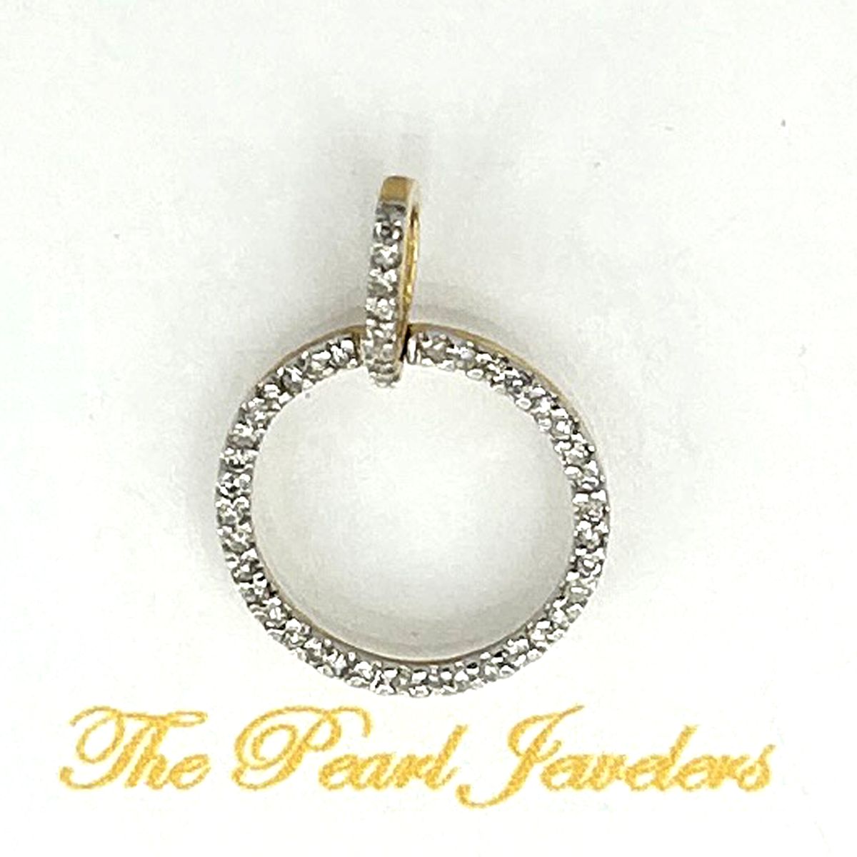 A radiant circle pendant featuring 46 round diamonds, finely crafted in solid 14k yellow gold with a polished finish.