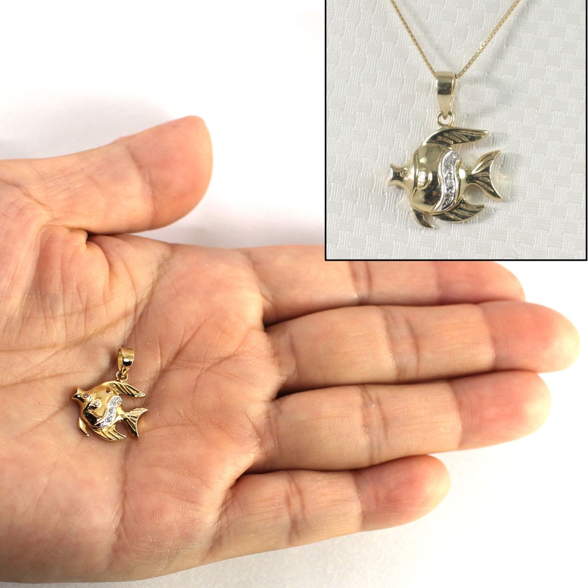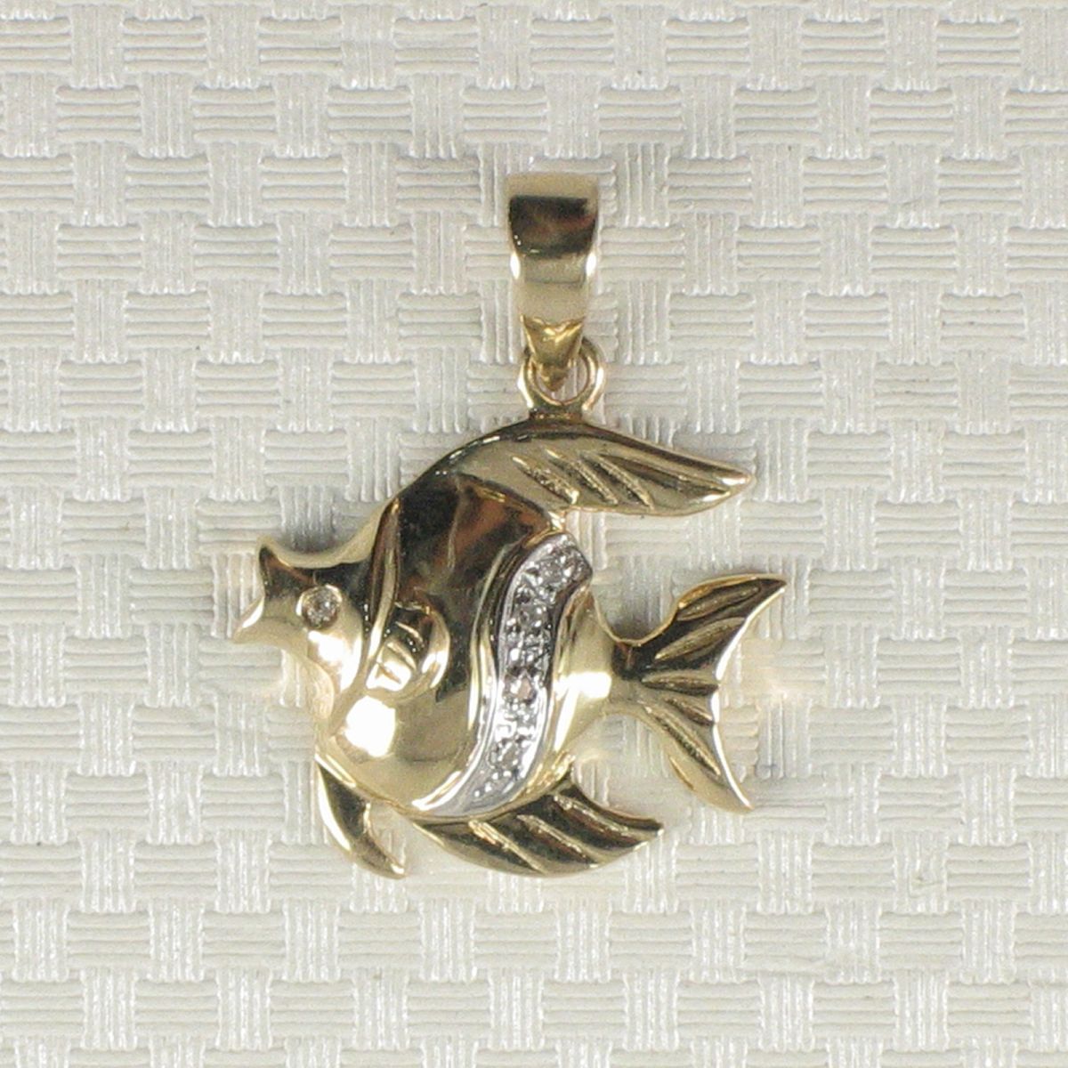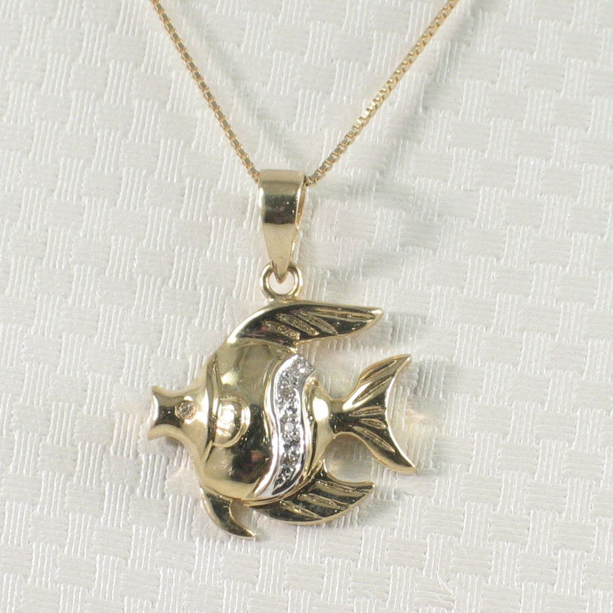 A charming fish pendant in 14k yellow gold, accented with four sparkling genuine diamonds, available with or without a box chain.