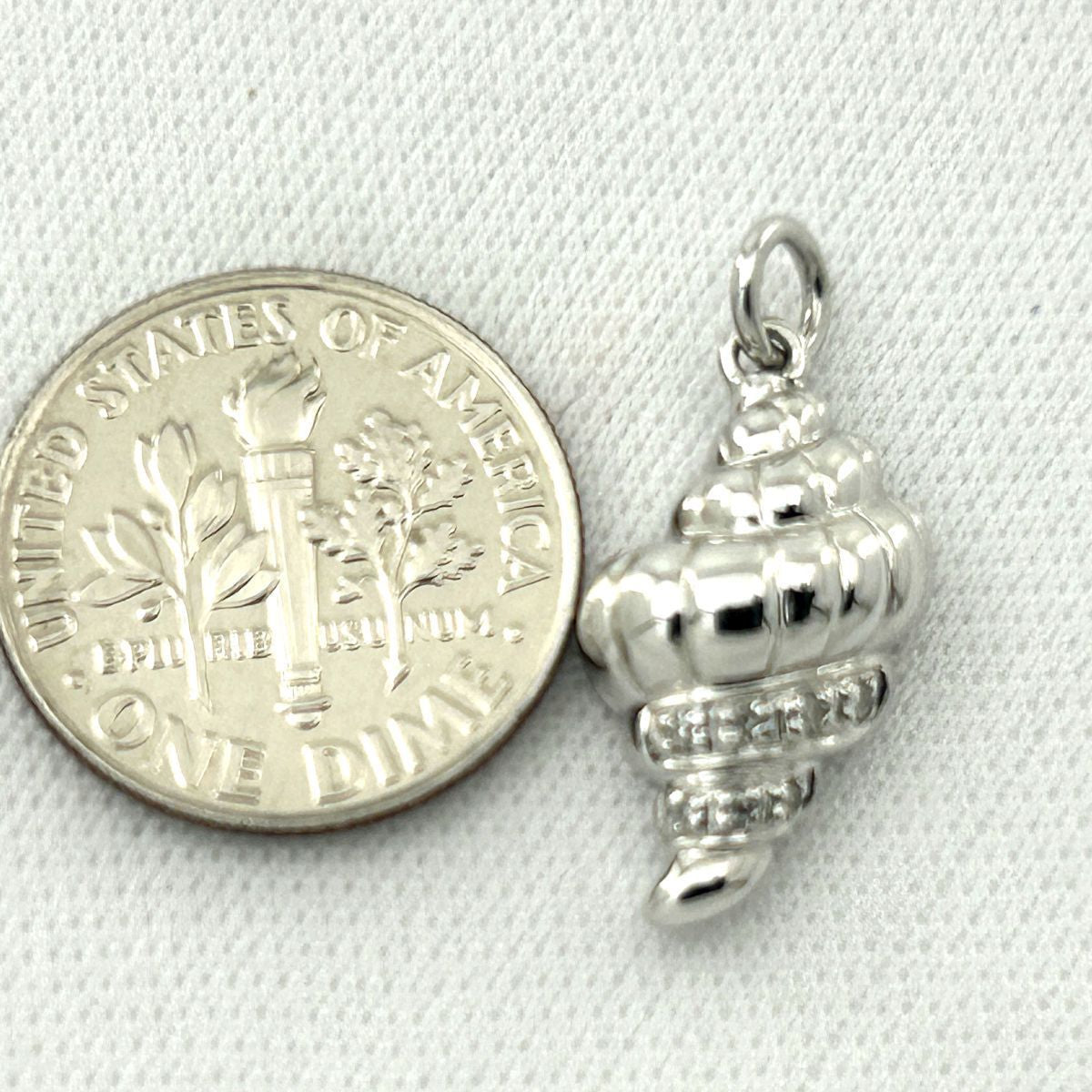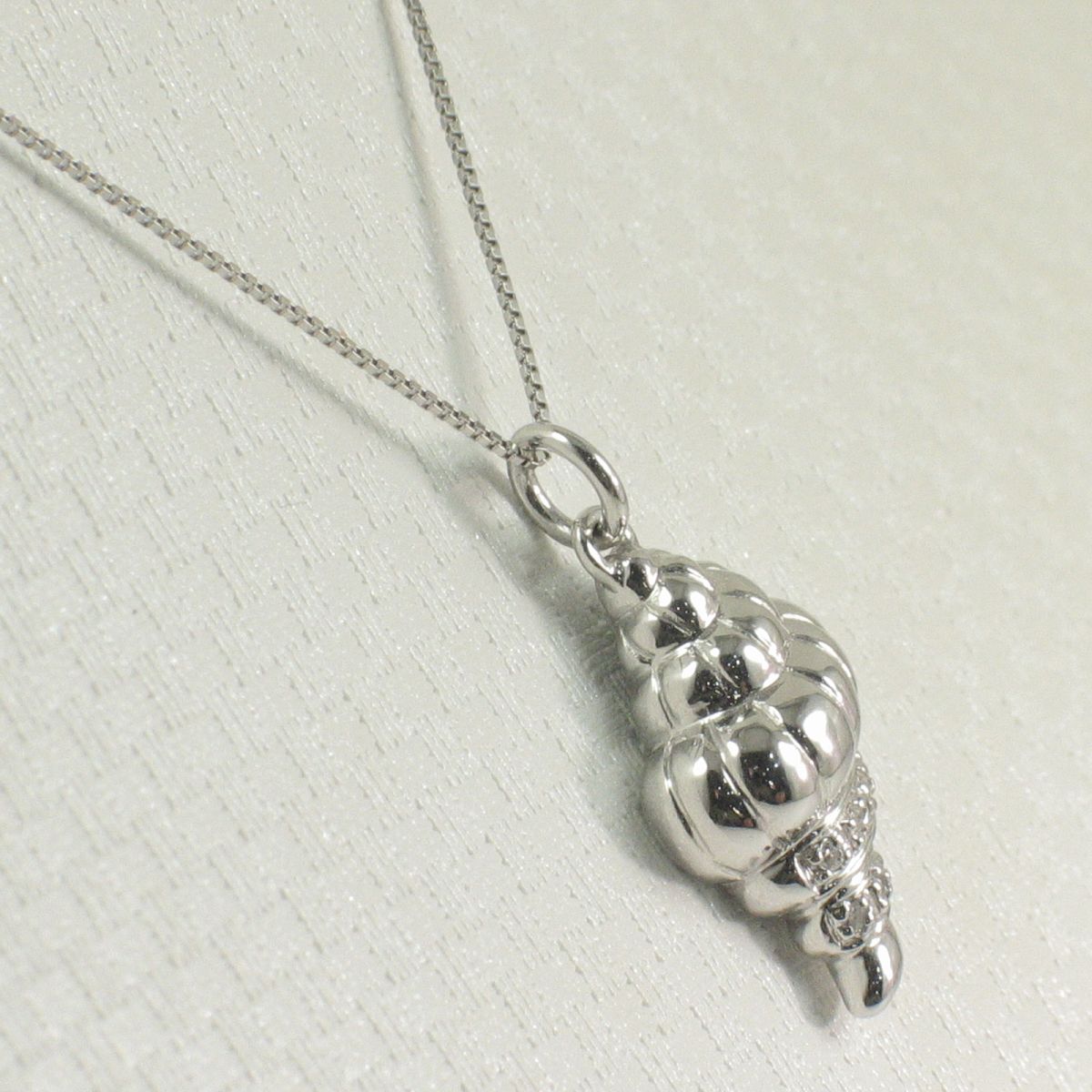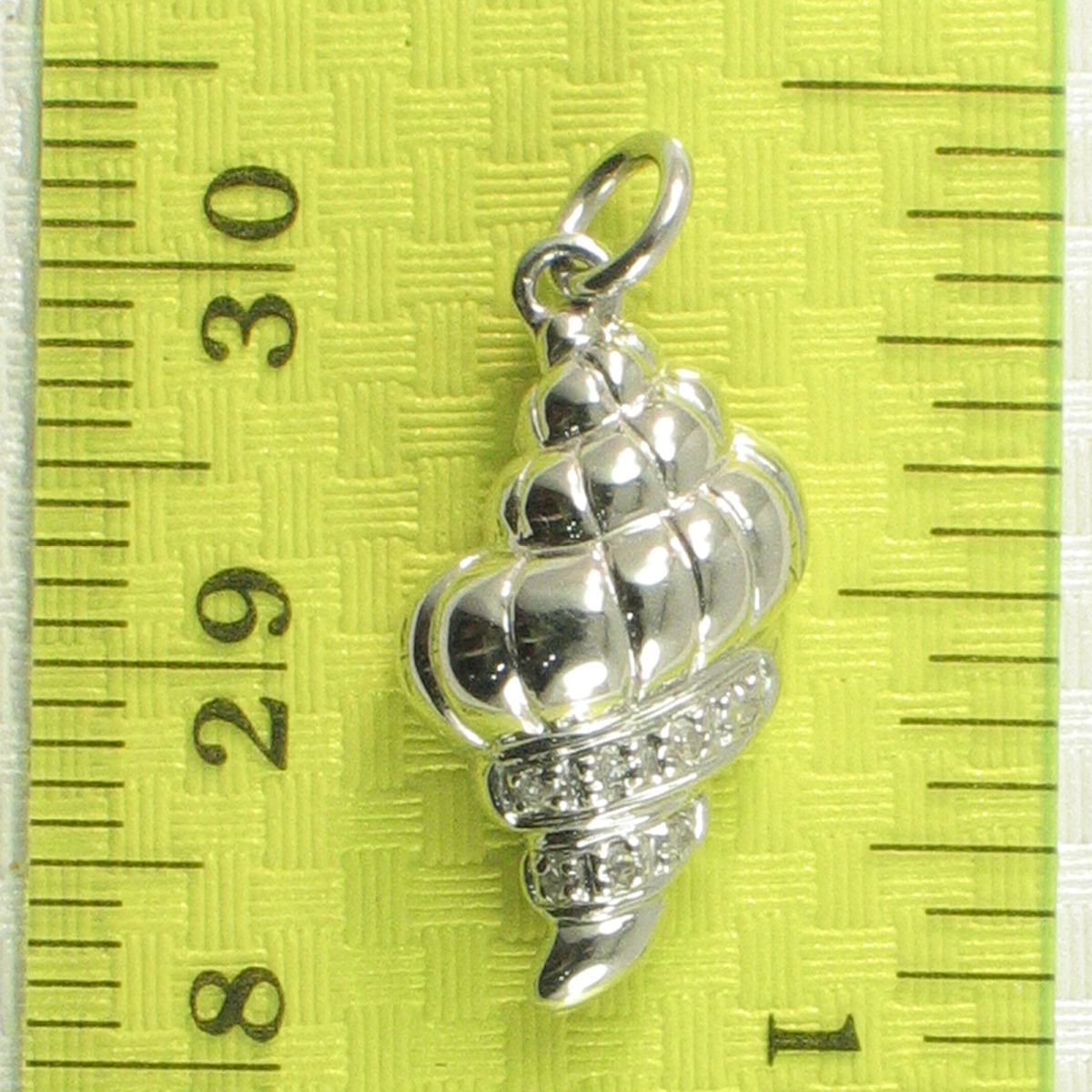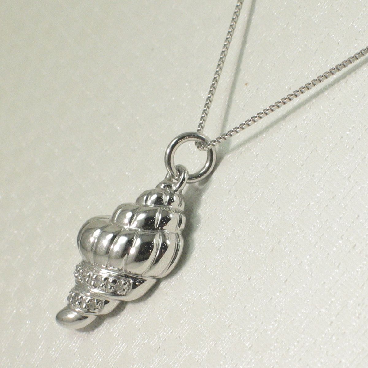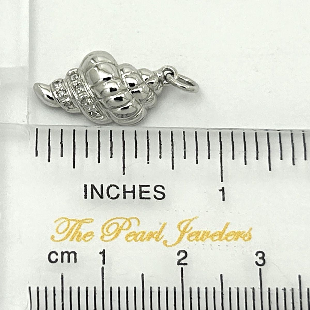 A beautiful conch pendant in 14k white gold, sparkling with seven genuine diamonds for timeless seaside elegance.