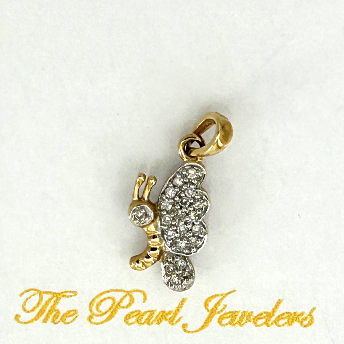 A lovely butterfly pendant crafted in solid 14k yellow gold, adorned with twenty sparkling diamonds for a graceful and feminine look.