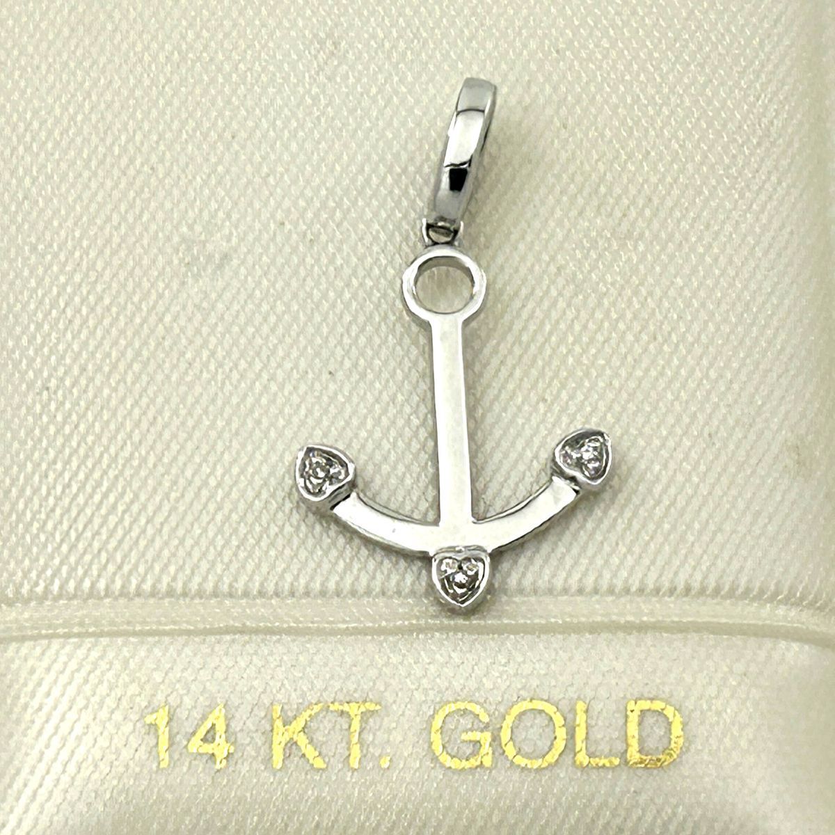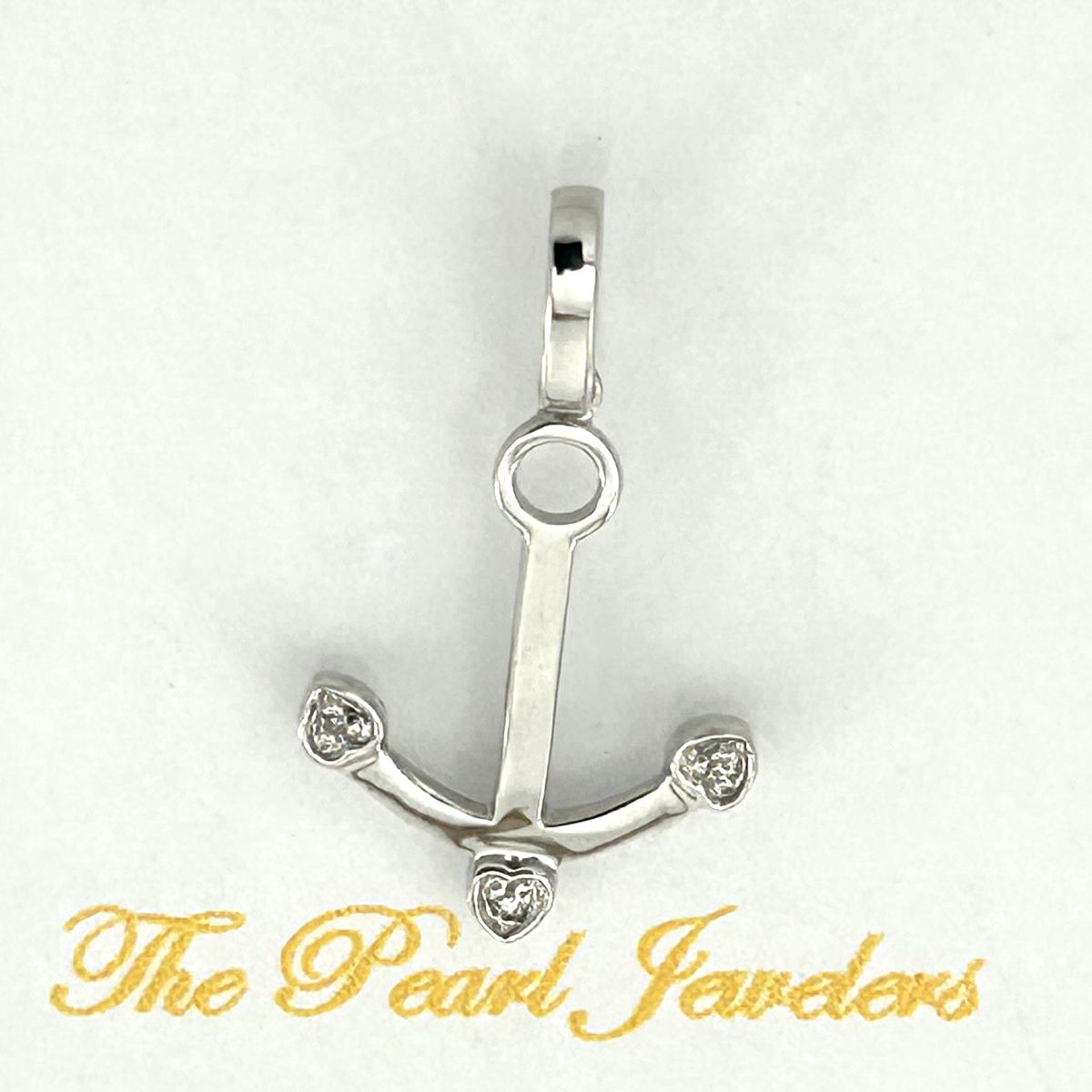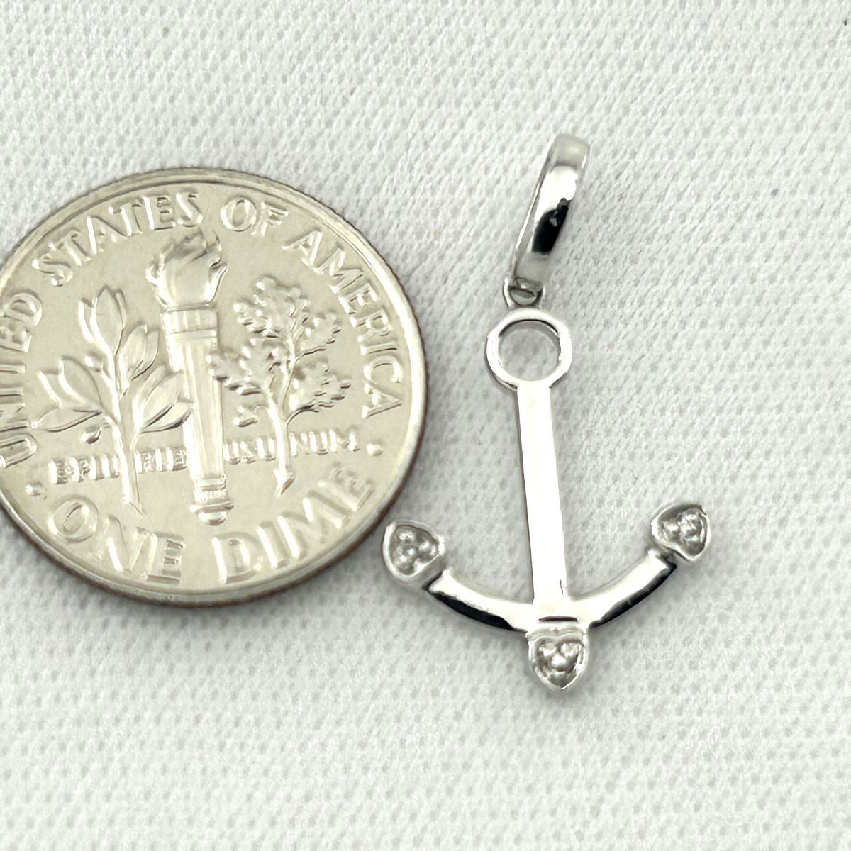 A refined anchor charm in solid 14k white gold, highlighted with three sparkling diamonds in a sleek pave setting.