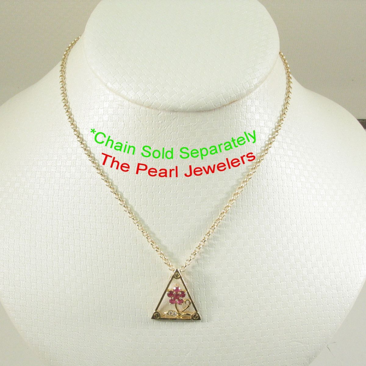 Genuine Natural Ruby & Diamond Triangle Pendant in 14k Yellow Gold