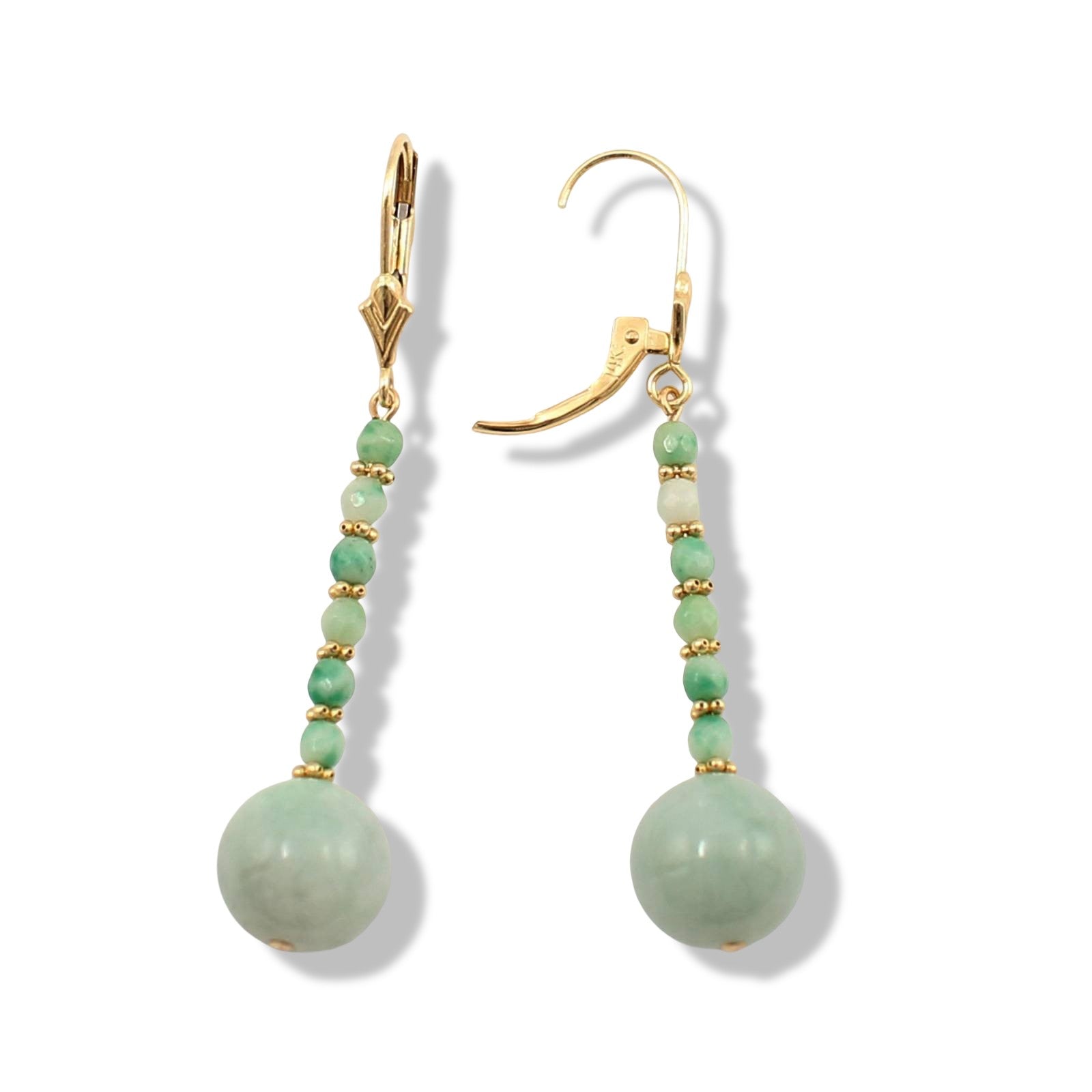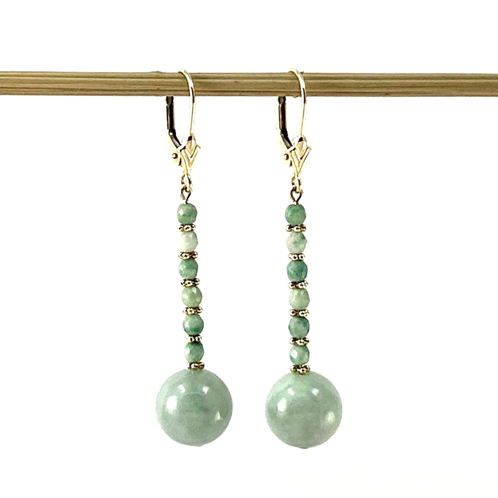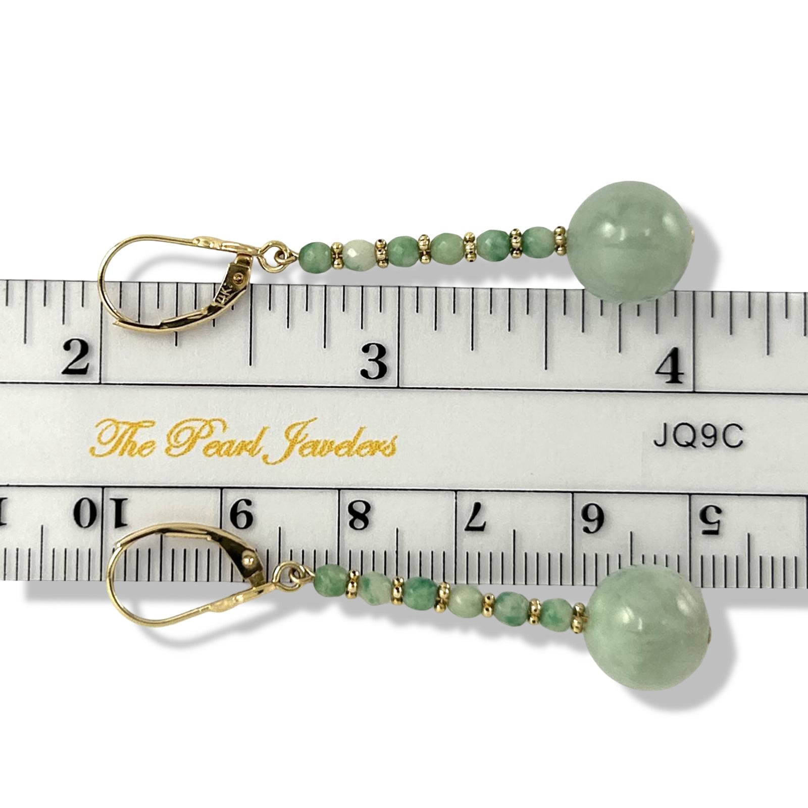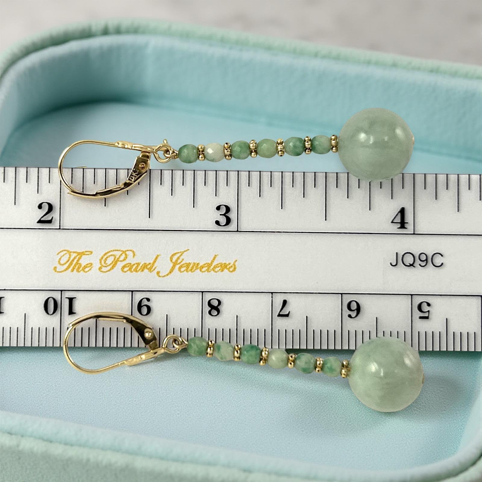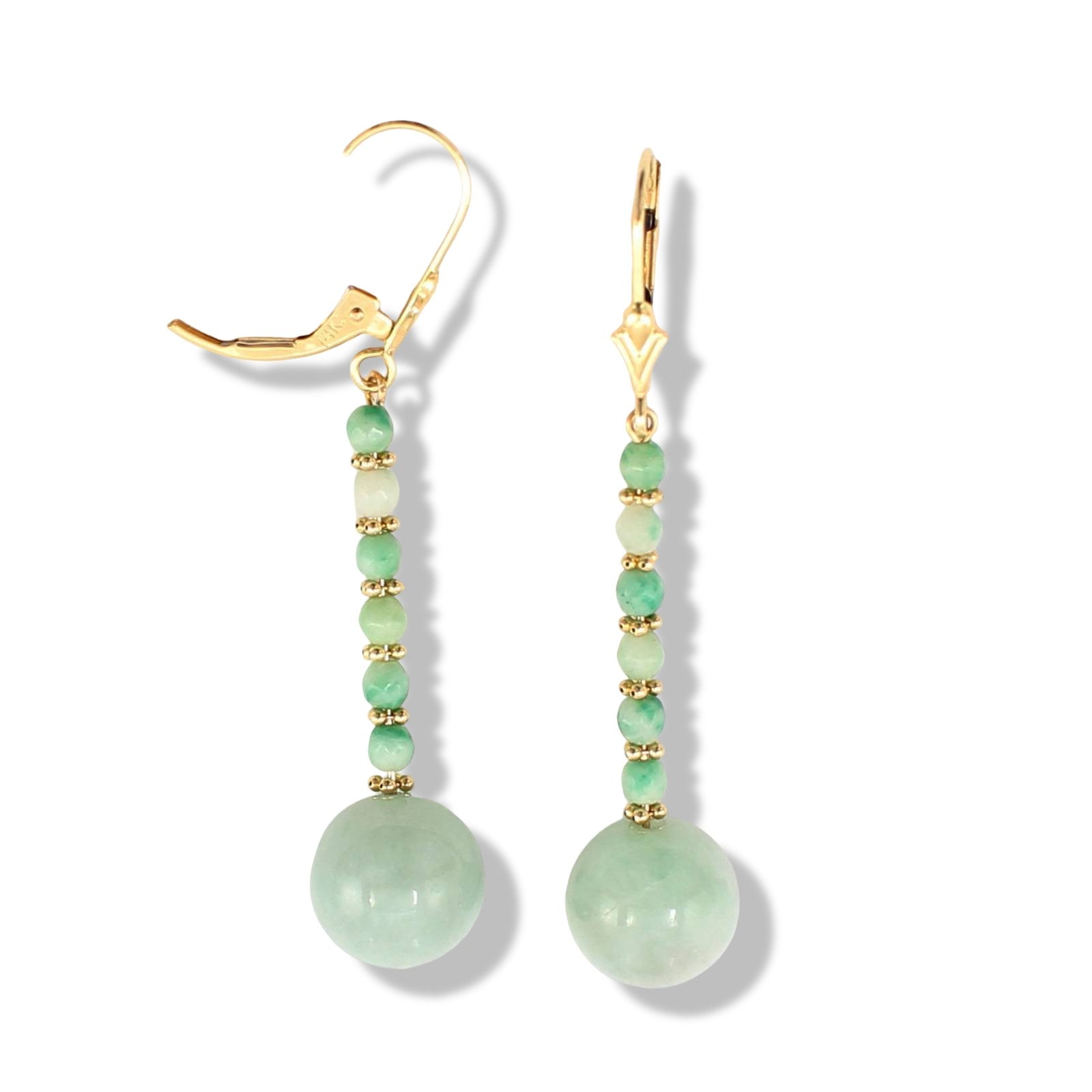 Crafted in solid 14K yellow gold, these leverback earrings feature premium celadon green jadeite beads, offering a timeless and refined look, designed for comfort and dependable daily wear.
