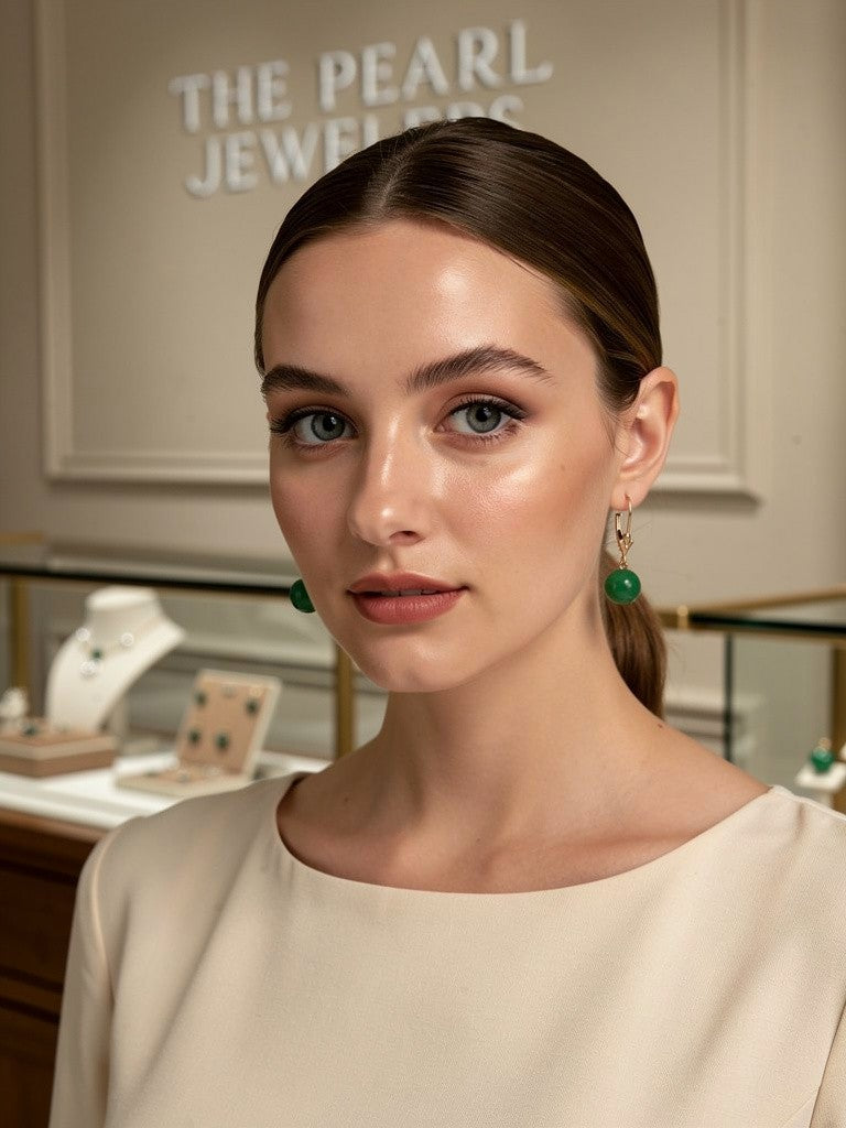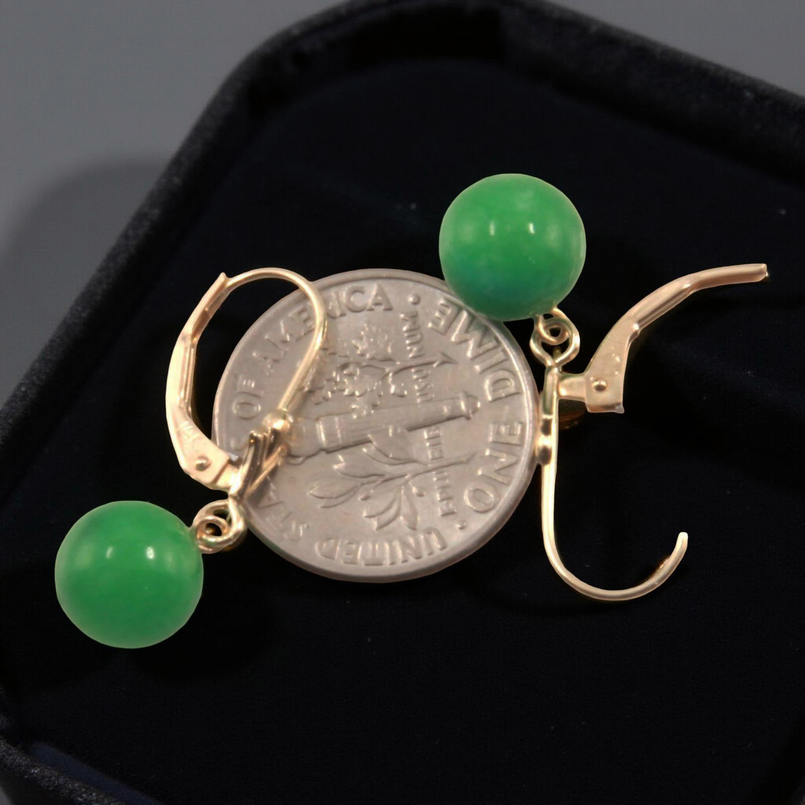 Featuring well-matched round green jade beads, these earrings bring good fortune and prosperity with their classic leverback designed for comfort and dependable daily wear.