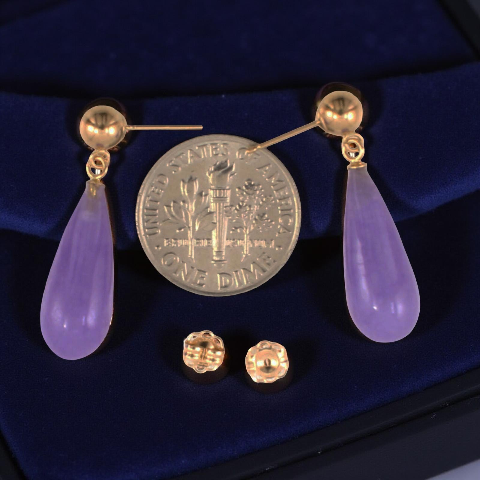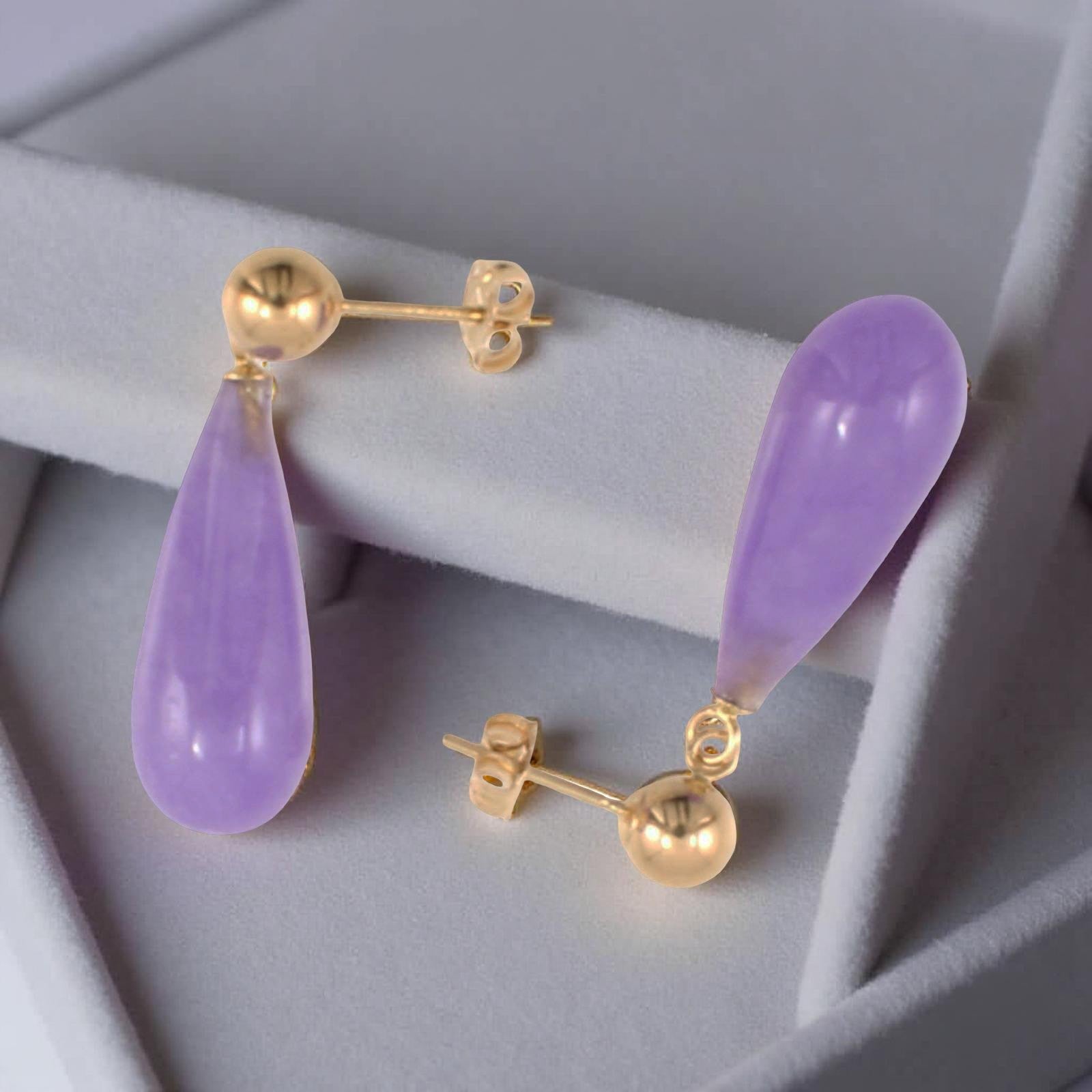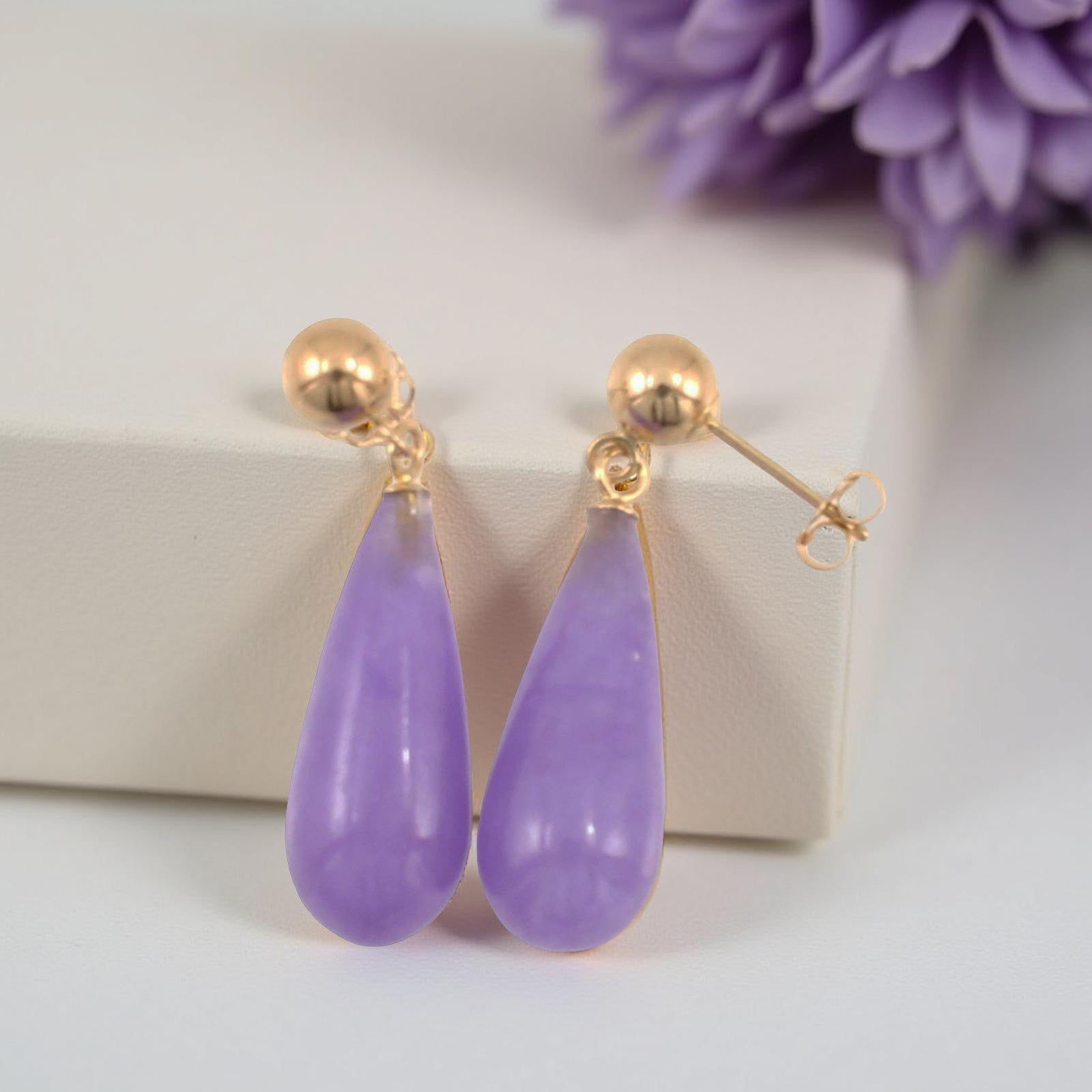 These teardrop-shaped lavender jade earrings bring a subtle yet stunning touch to any outfit, designed for comfort and dependable daily wear.