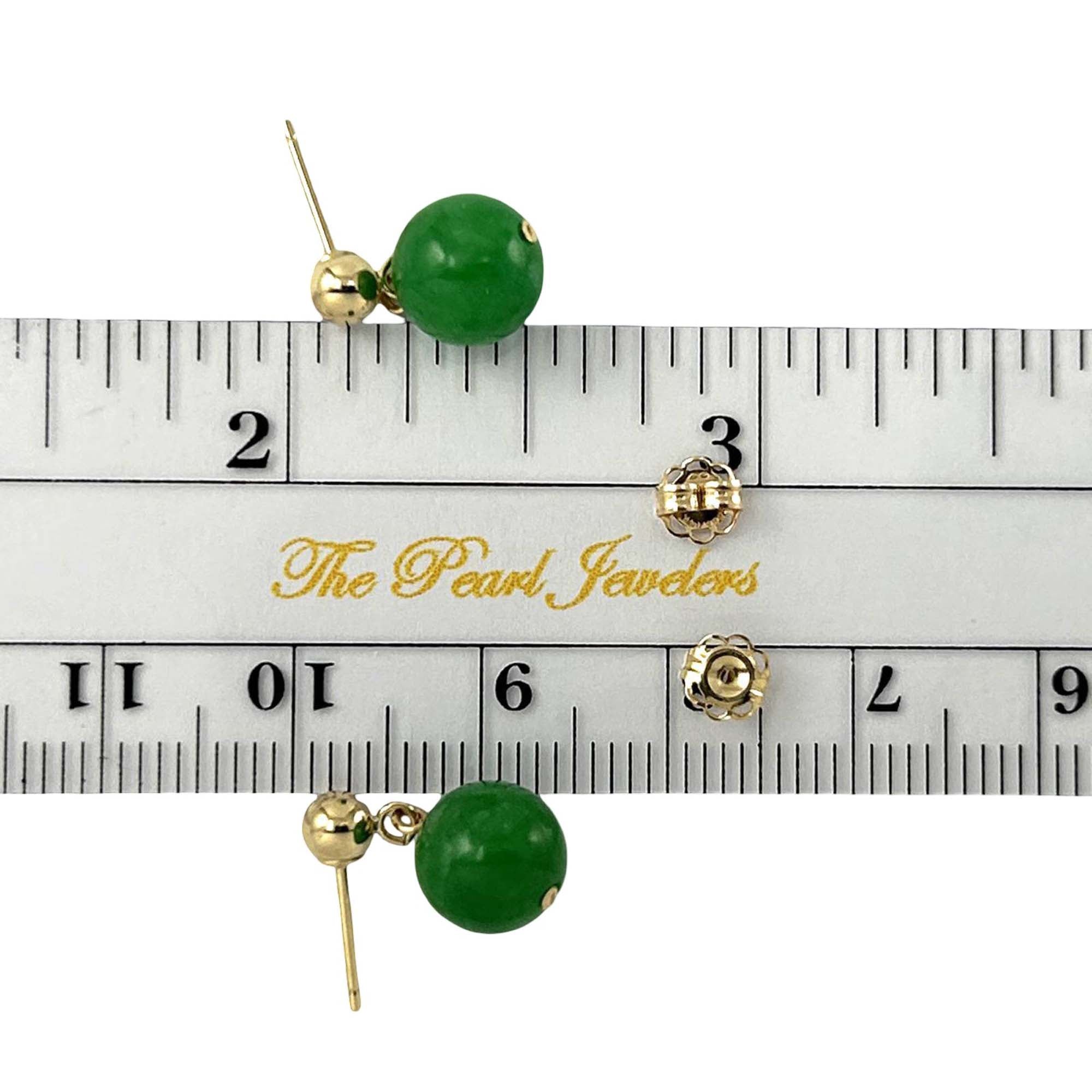 14K Yellow Gold Green Jade Post Dangle Earrings