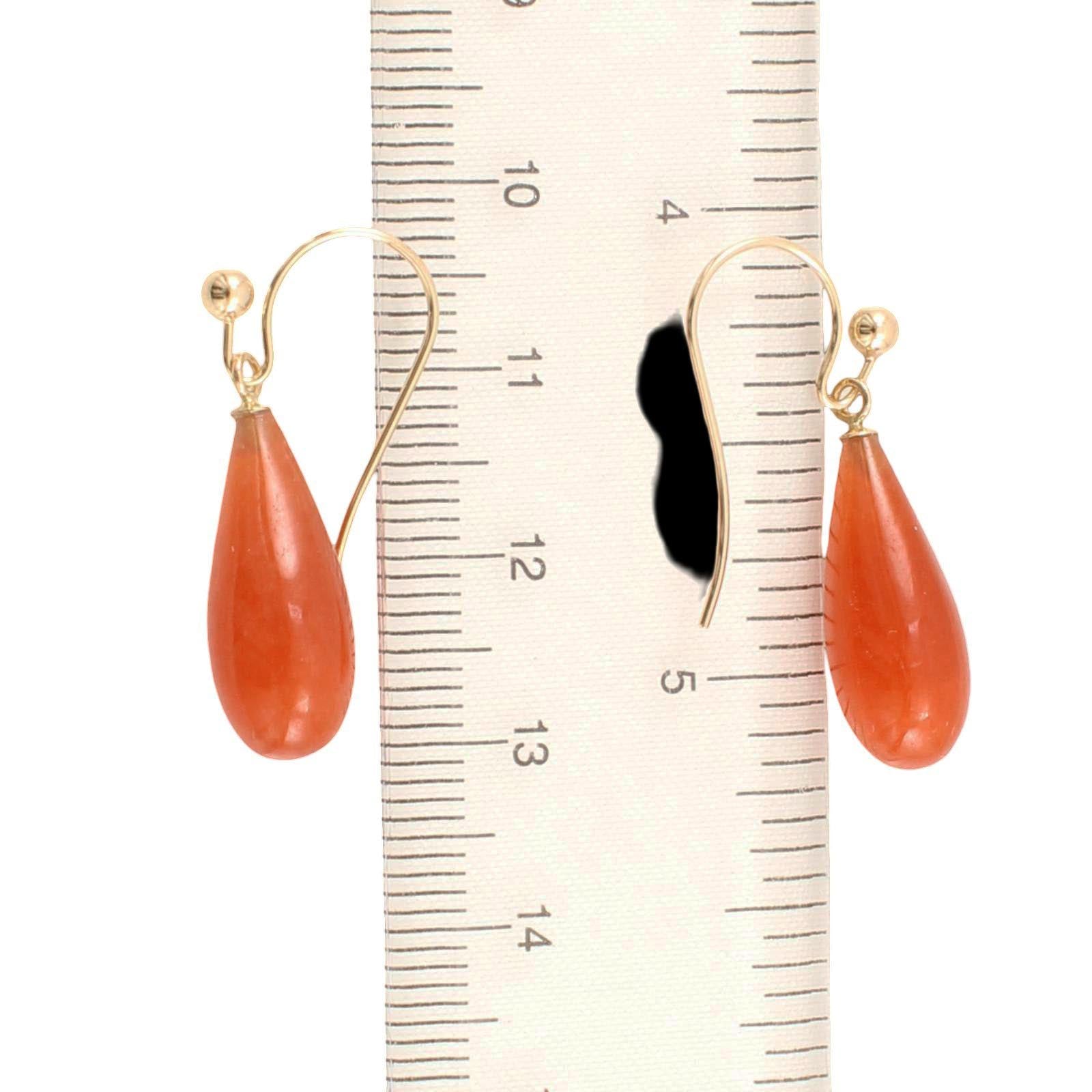 A bold yet elegant choice, these pear-shaped red jade earrings, set in solid 14K gold, add a vibrant touch to any outfit, designed for comfort and dependable daily wear.