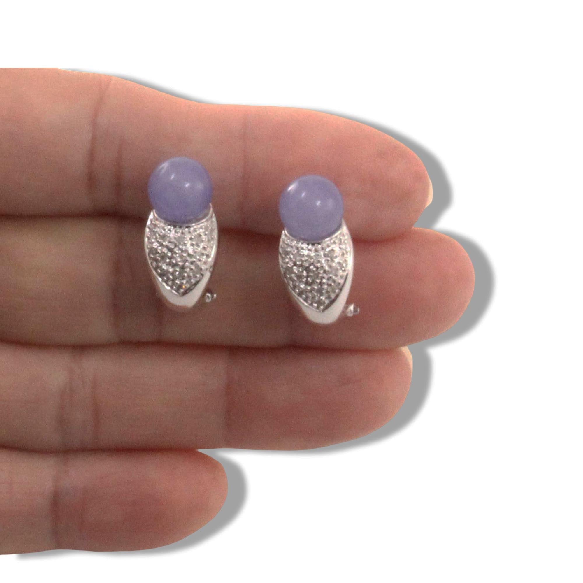 14K White Gold Diamonds Lavender Jade Omega Back Earrings