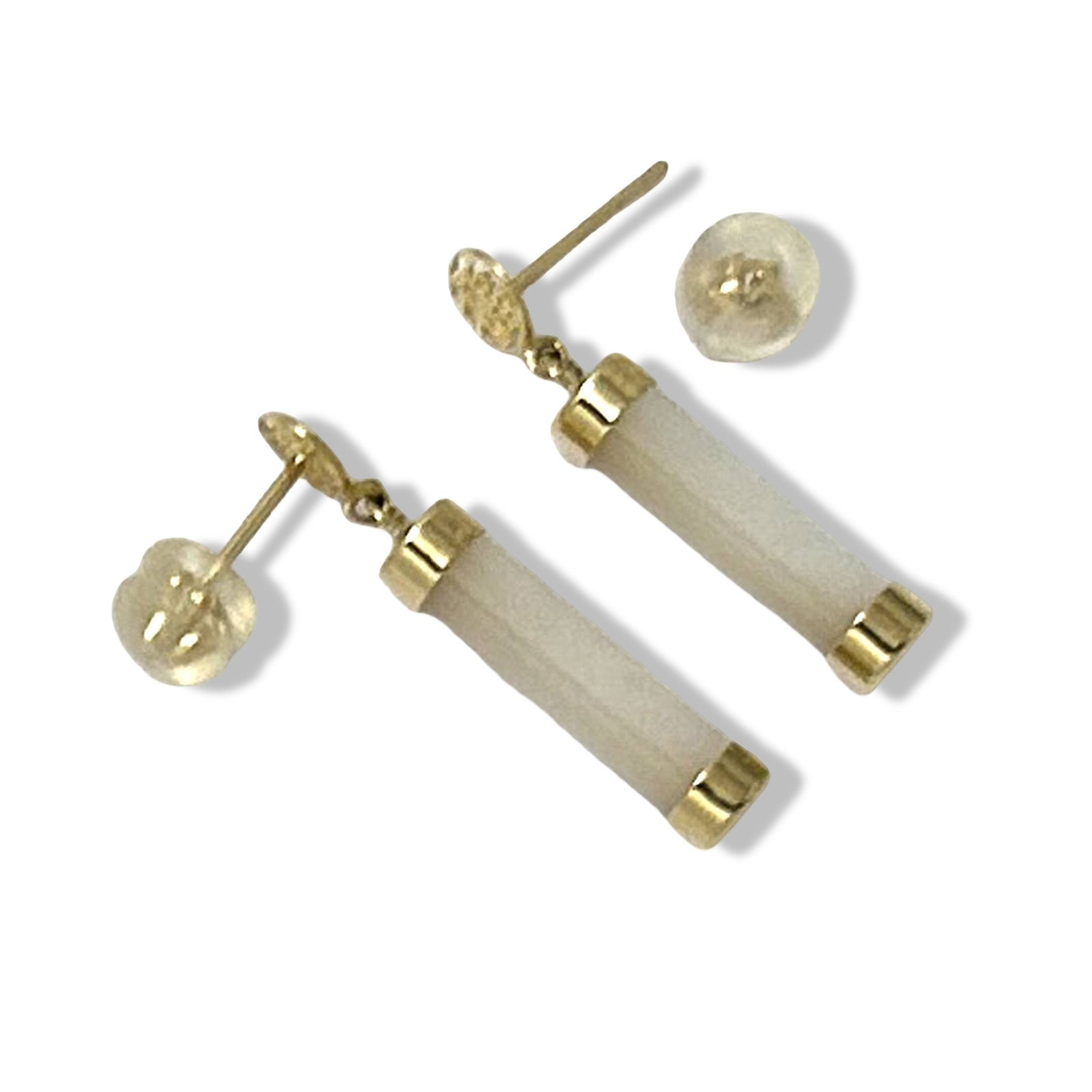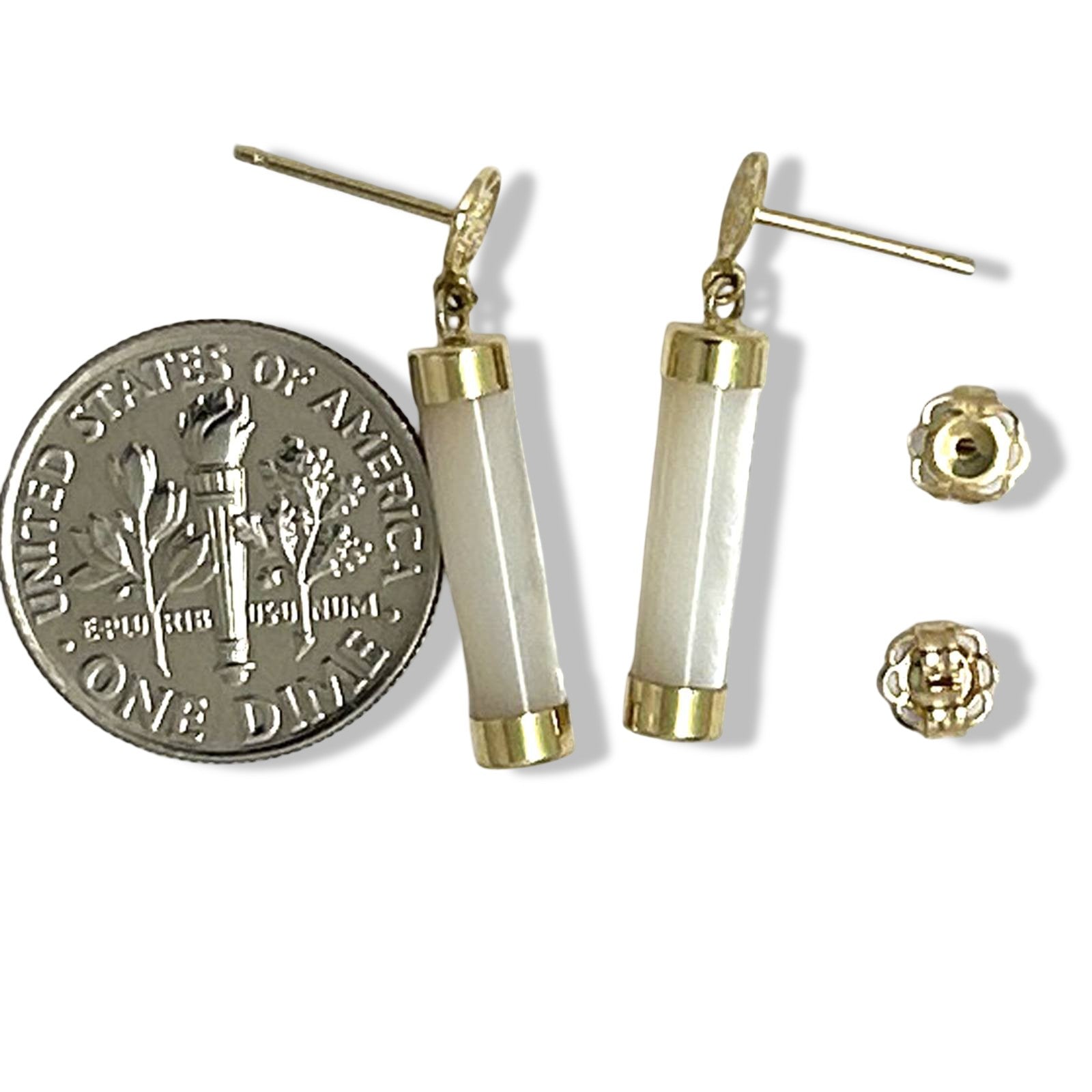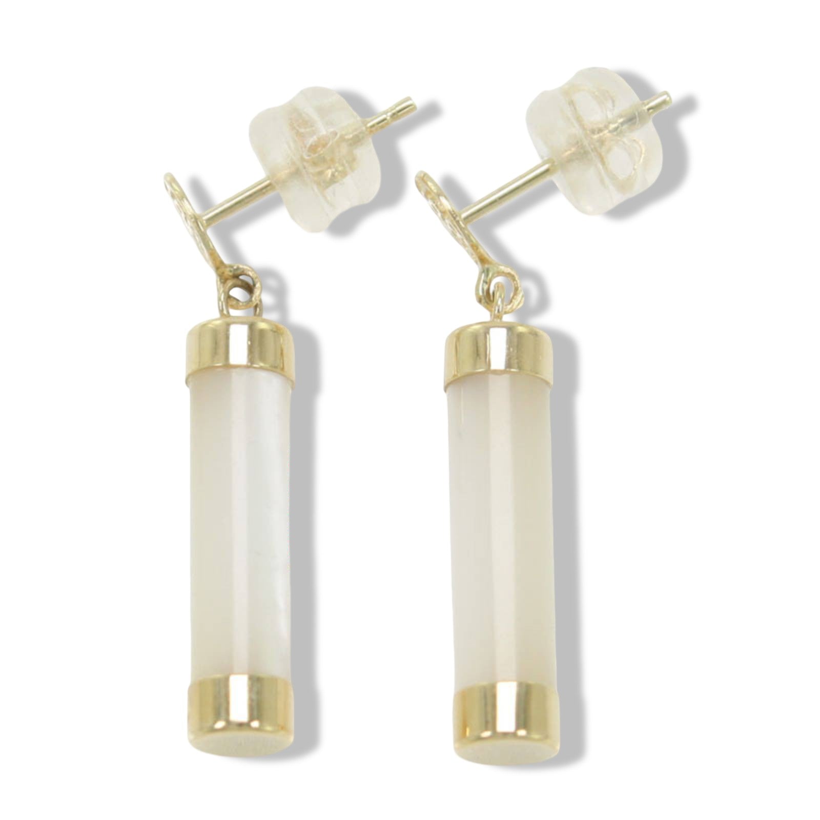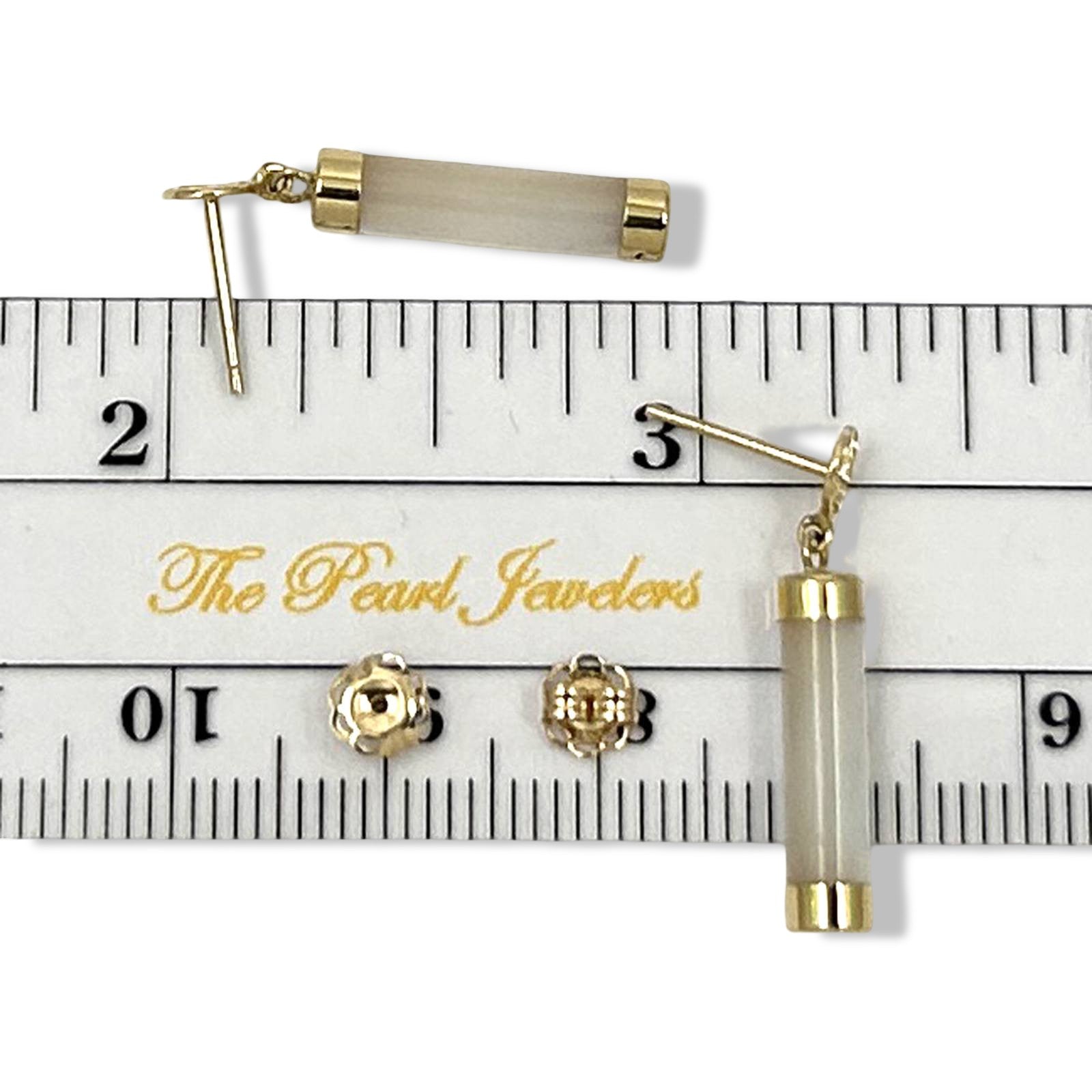 Featuring a Chinese 'Good Fortune' character, these 14K solid gold earrings elegantly dangle from premium mother of pearl tubes, designed for comfort and dependable daily wear.