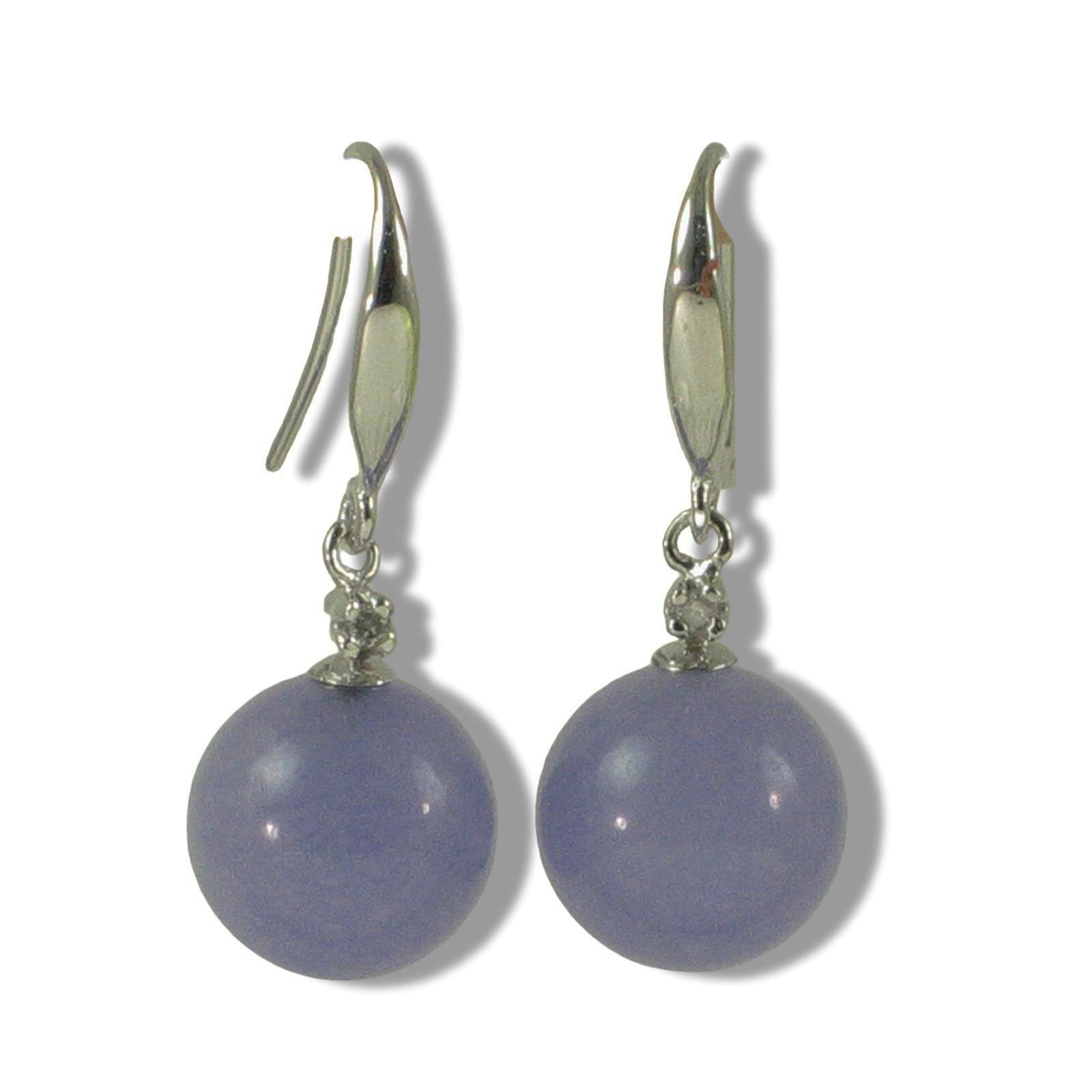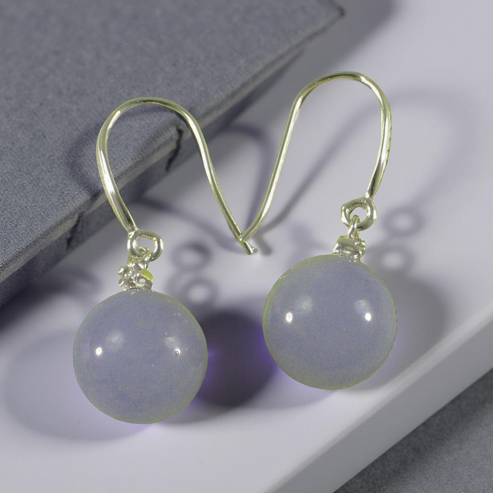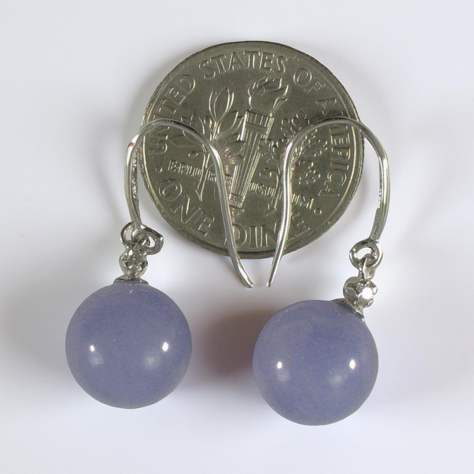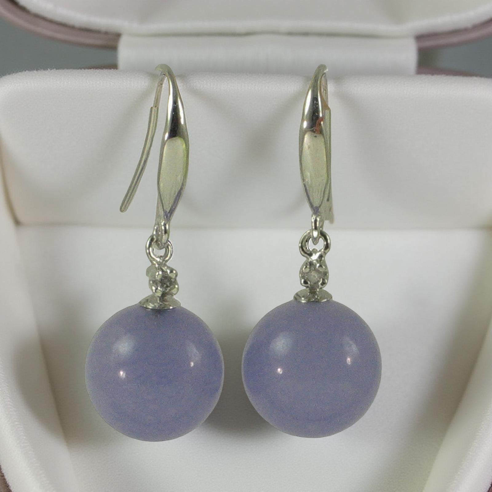 These exquisite hook earrings feature two sparkling diamonds set in 14K white gold, with round lavender jade beads for a sophisticated and timeless look, designed for comfort and dependable daily wear.