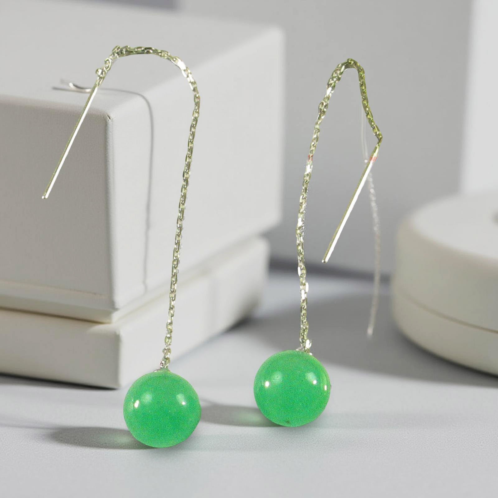 π Timeless Green Jade Threader Earrings