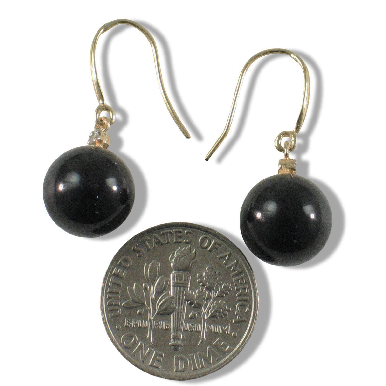 These luxurious 14K yellow gold hook earrings feature two sparkling diamonds accenting 10mm round black onyx beads, adding a sophisticated touch to any outfit, designed for comfort and dependable daily wear.