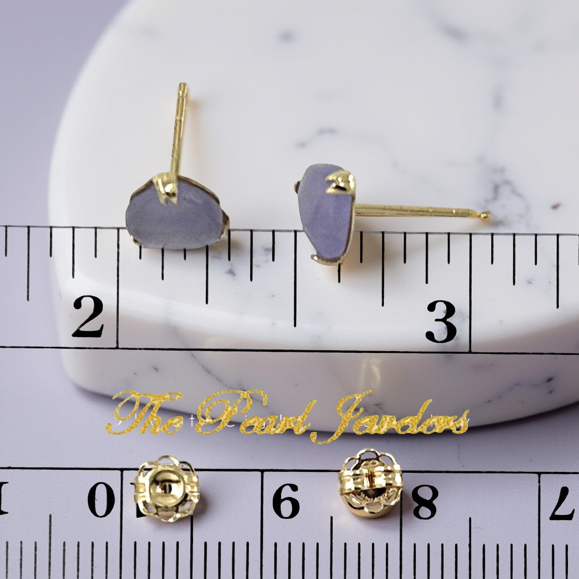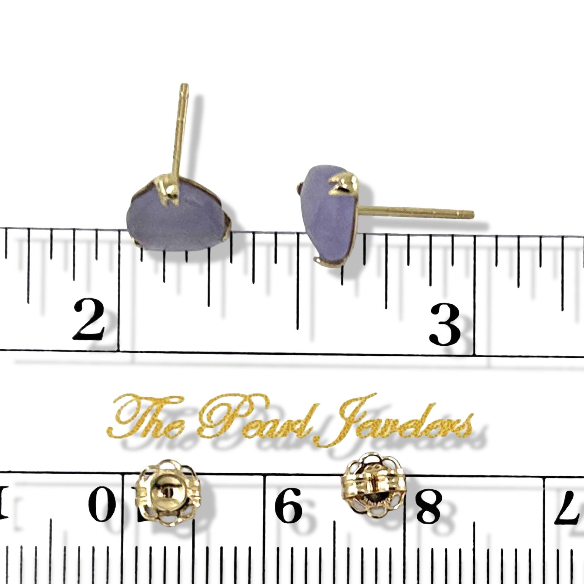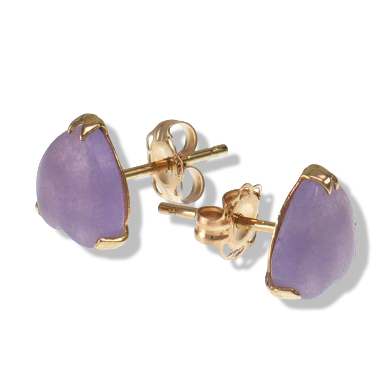 These lovely 14K yellow gold earrings feature a heart-shaped lavender jade stone, adding a touch of romance and elegance, designed for comfort and dependable daily wear.