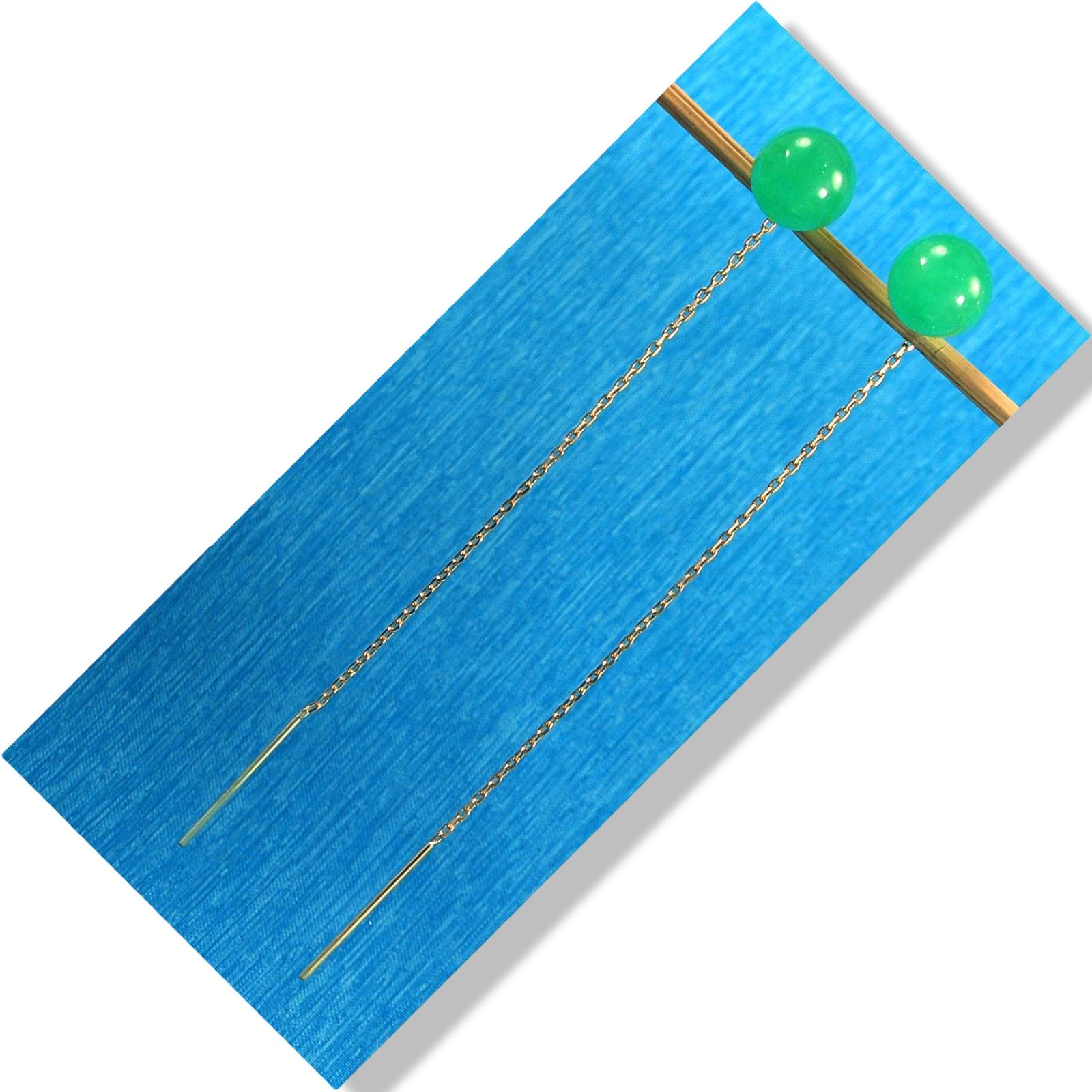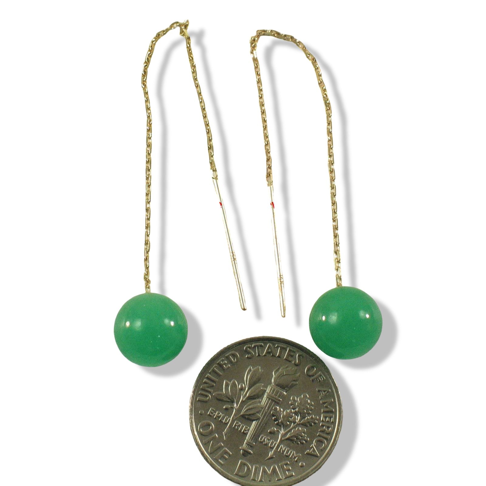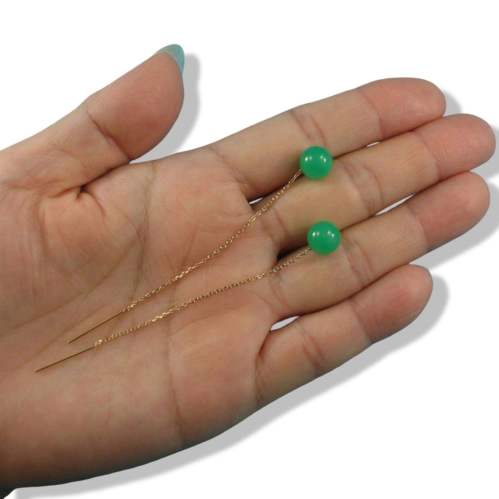 Handcrafted in 14K yellow gold, these elegant threader earrings showcase green jade beads for a sleek and stylish look, designed for comfort and dependable daily wear.