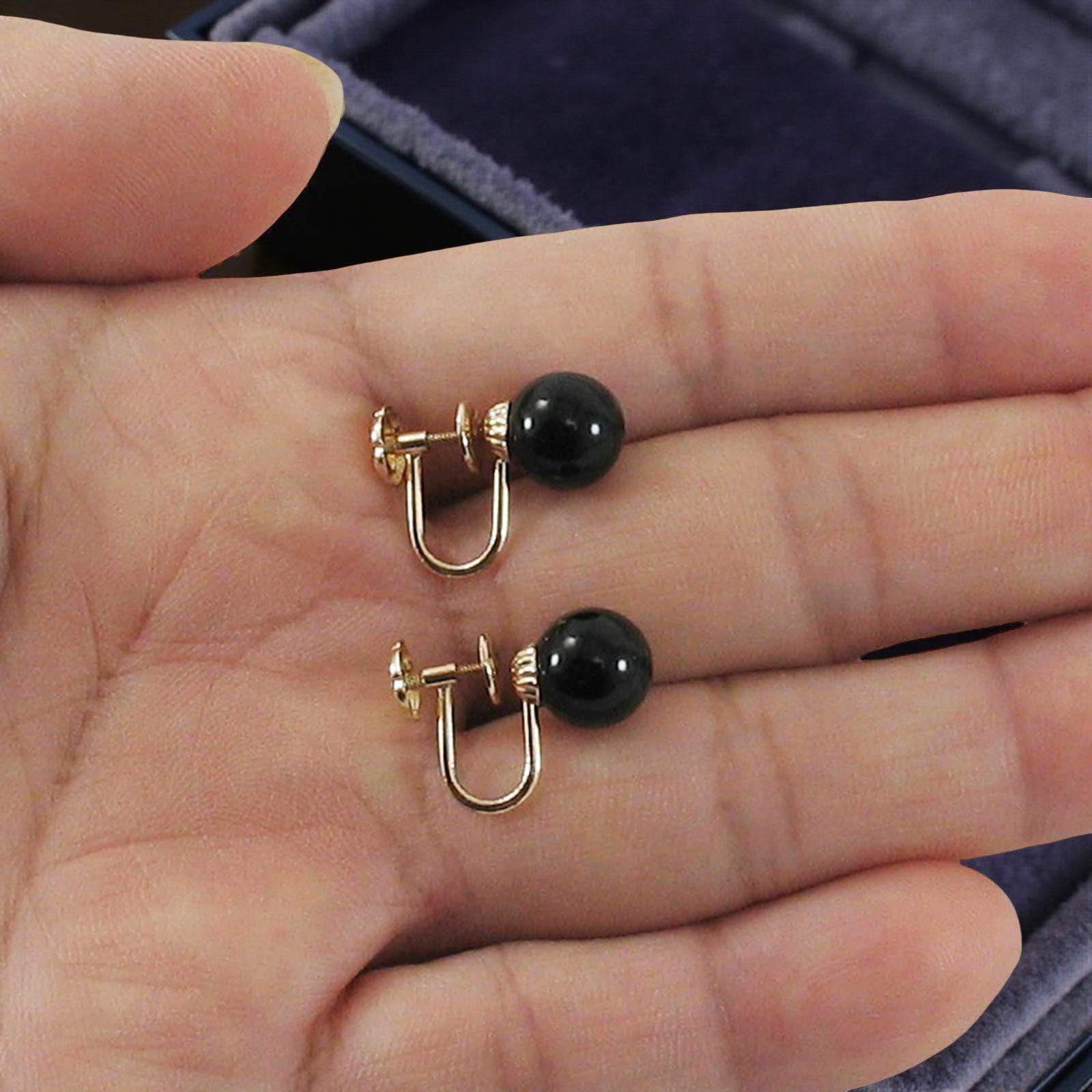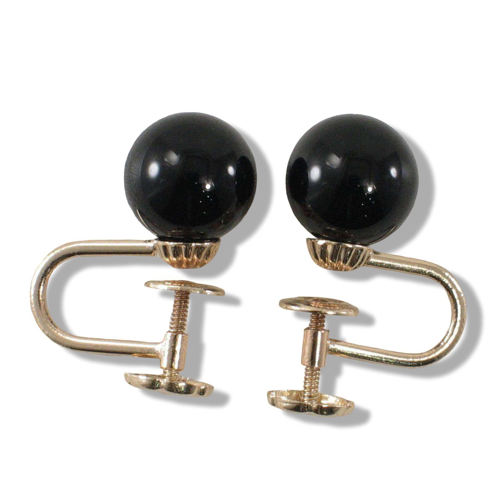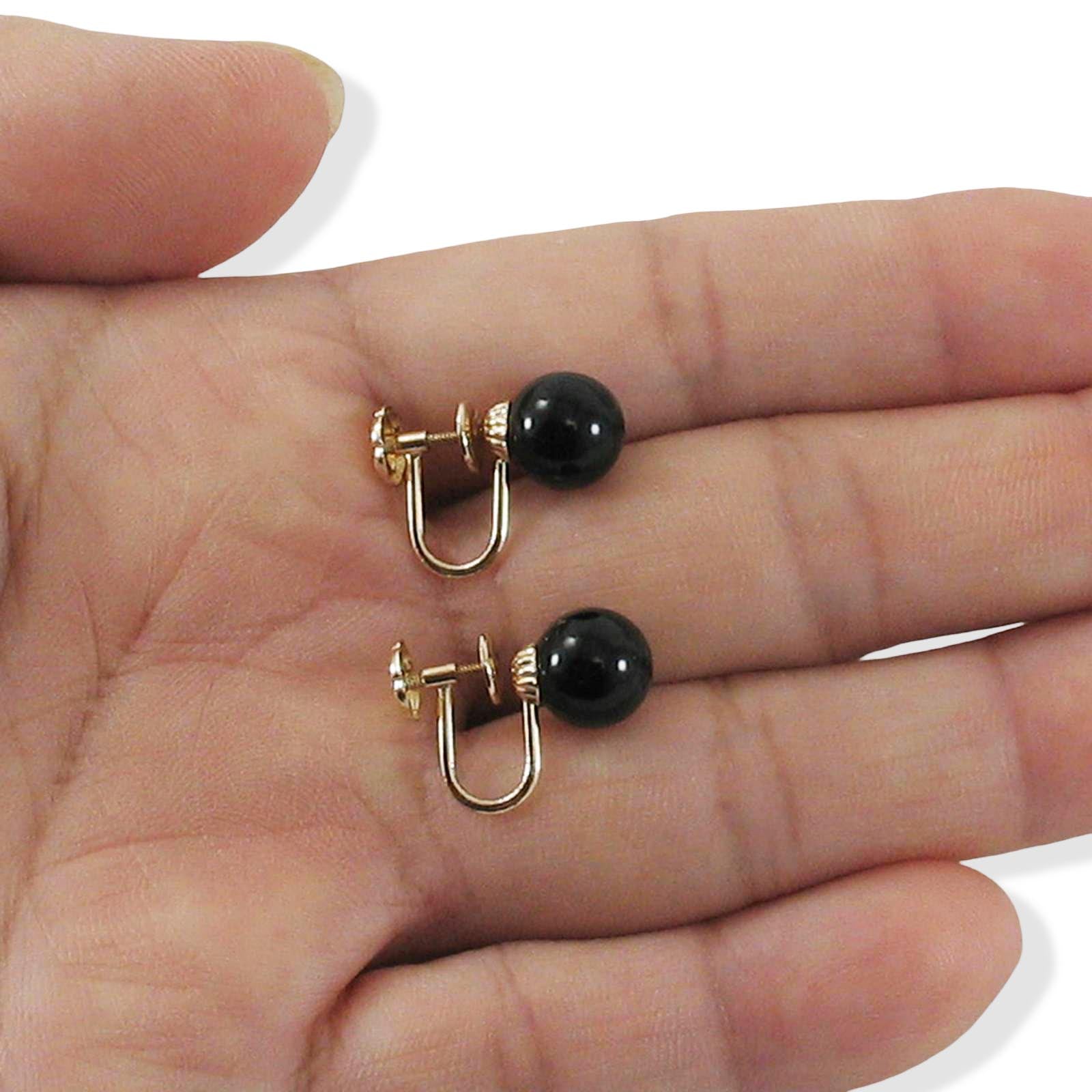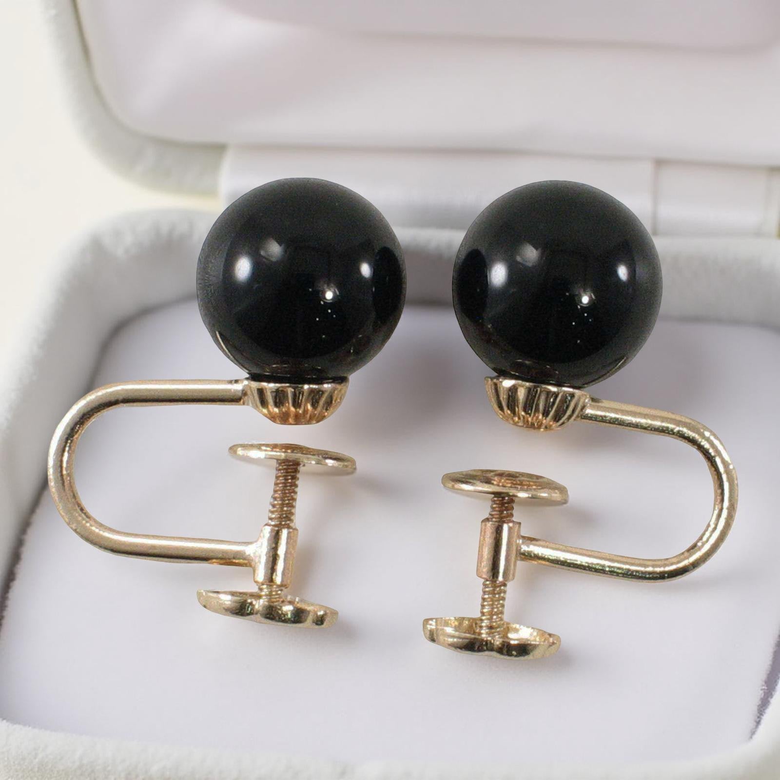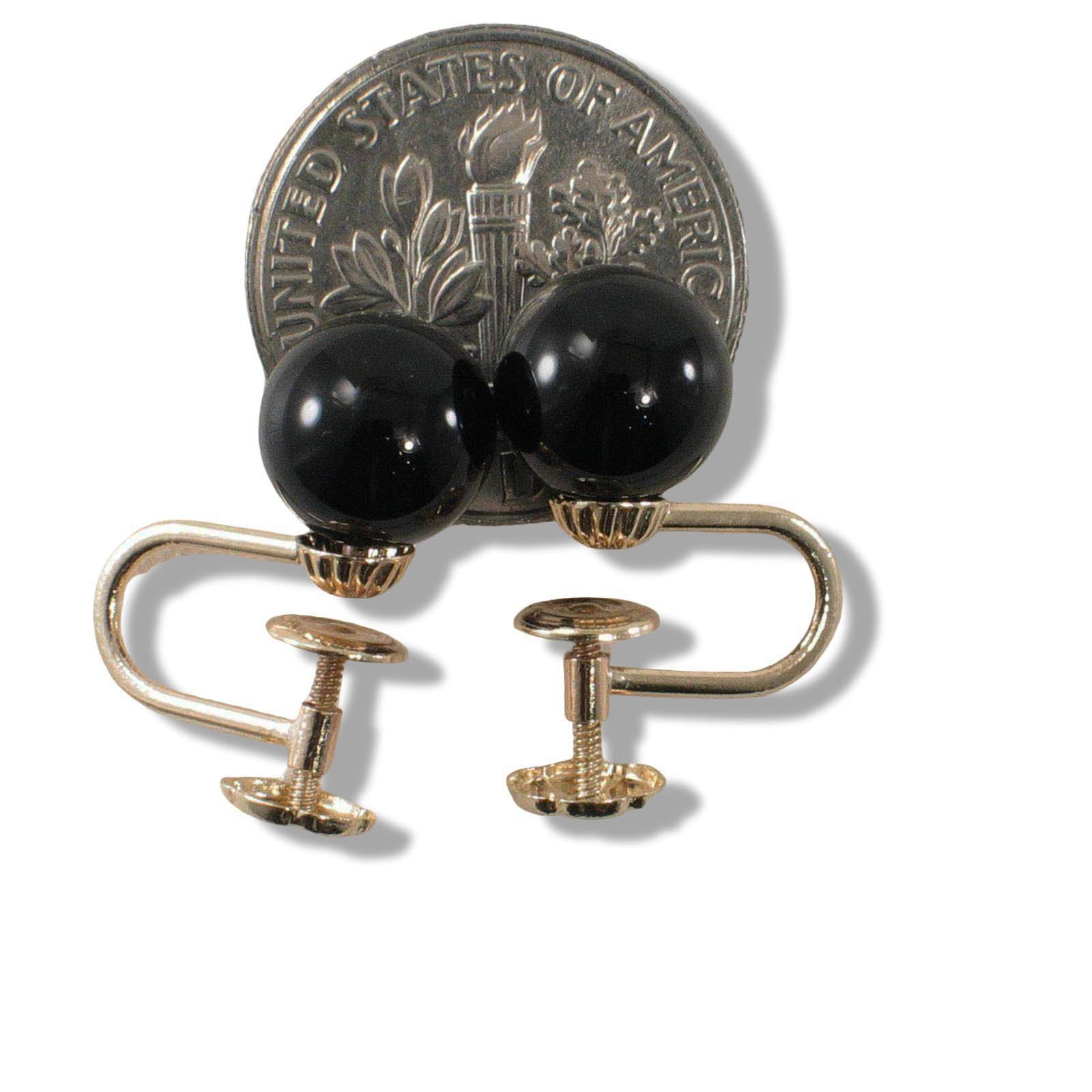 These elegant non-pierced earrings feature 8mm black onyx beads set in solid 14K yellow gold French screw backs, offering a comfortable and sophisticated design.