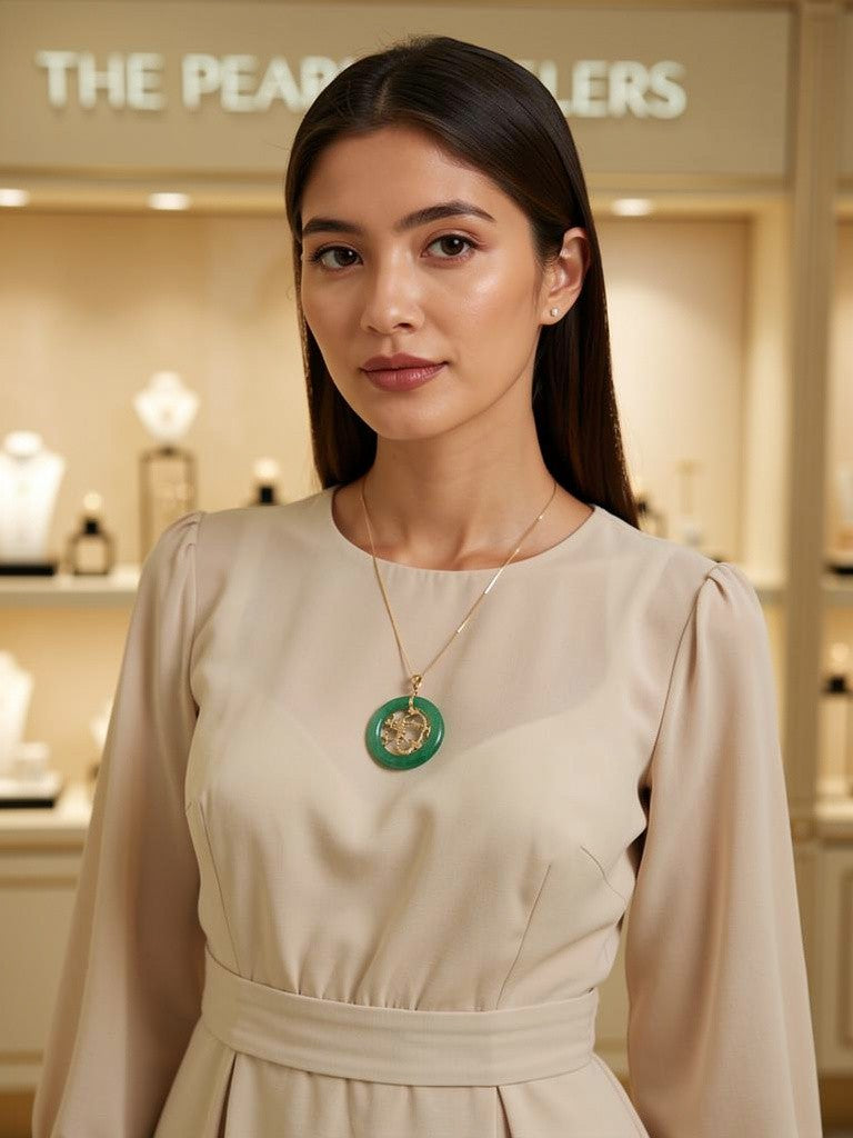 Expert hand-cut jade paired with traditional gold detailing for a refined, elegant look.