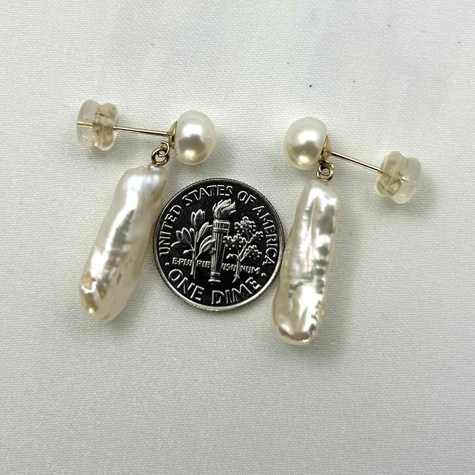 White Biwa & Freshwater Cultured Pearl Dangle Earrings ā 14 k Yellow Gold designed for comfort and dependable daily wear.