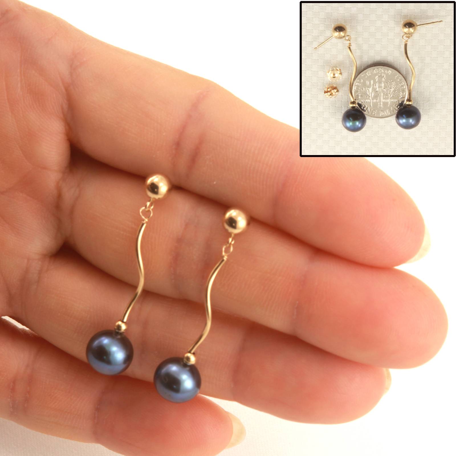 š Filename: 14k-yellow-gold-spiral-tube-gray-pearl-dangle-stud-earrings-885mm-'1025341
