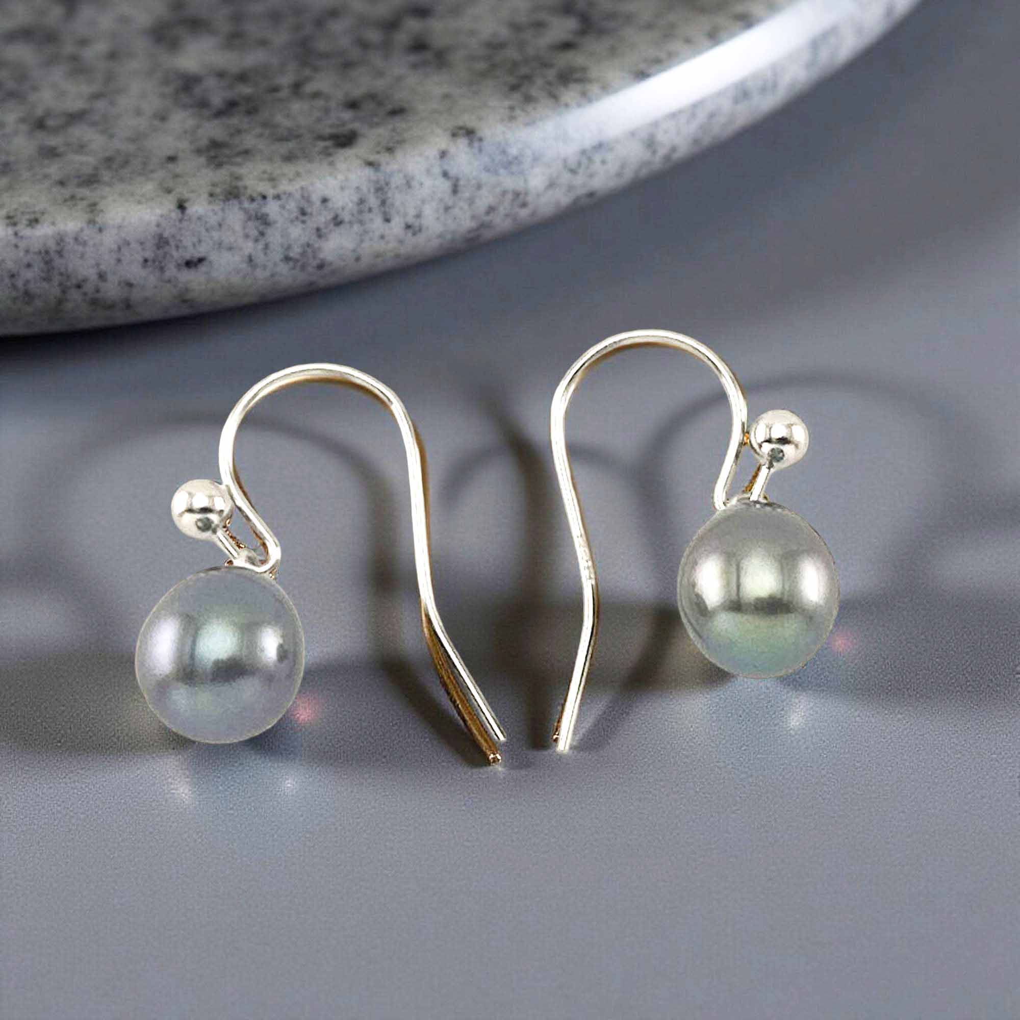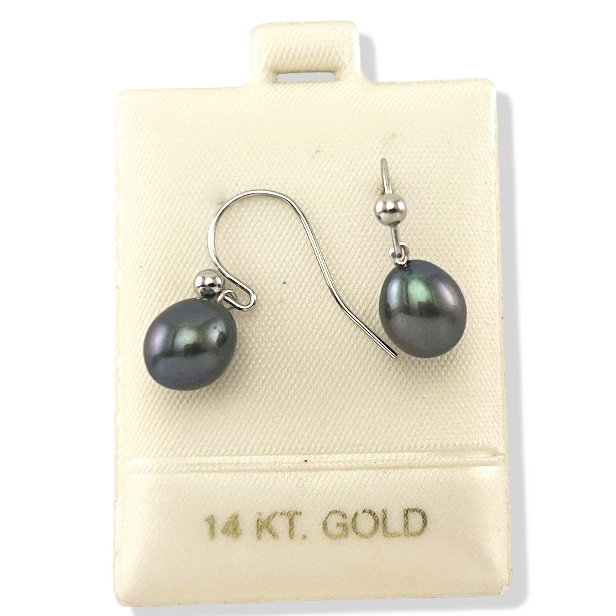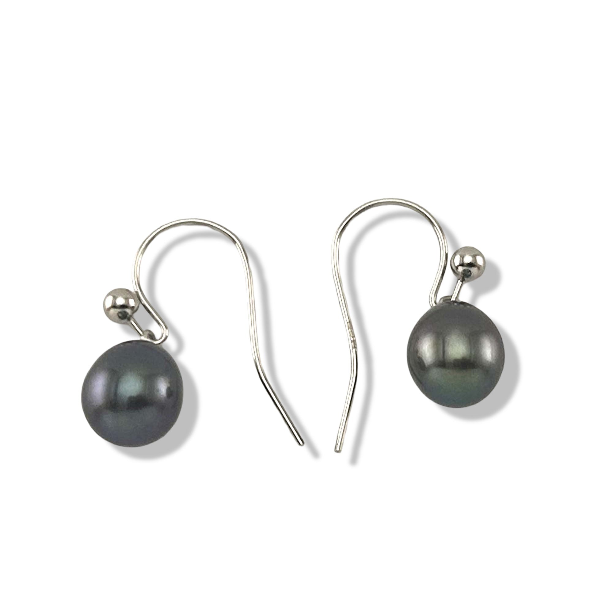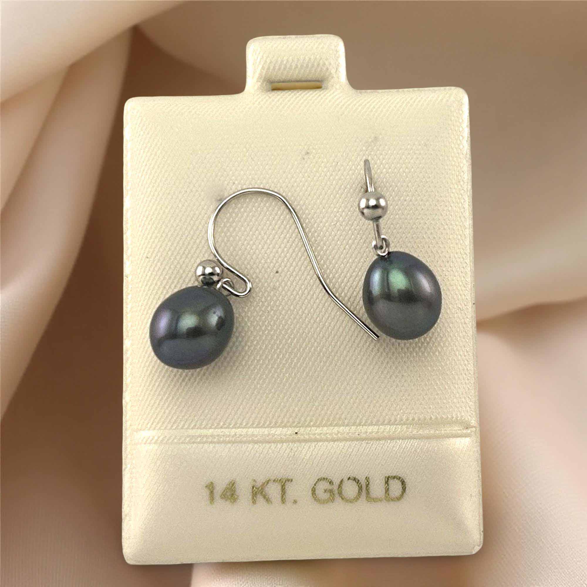 These 7.5–8mm teardrop freshwater black pearls are set in solid 14K white gold fish hook earrings—striking yet lightweight, designed for comfort and dependable daily wear.