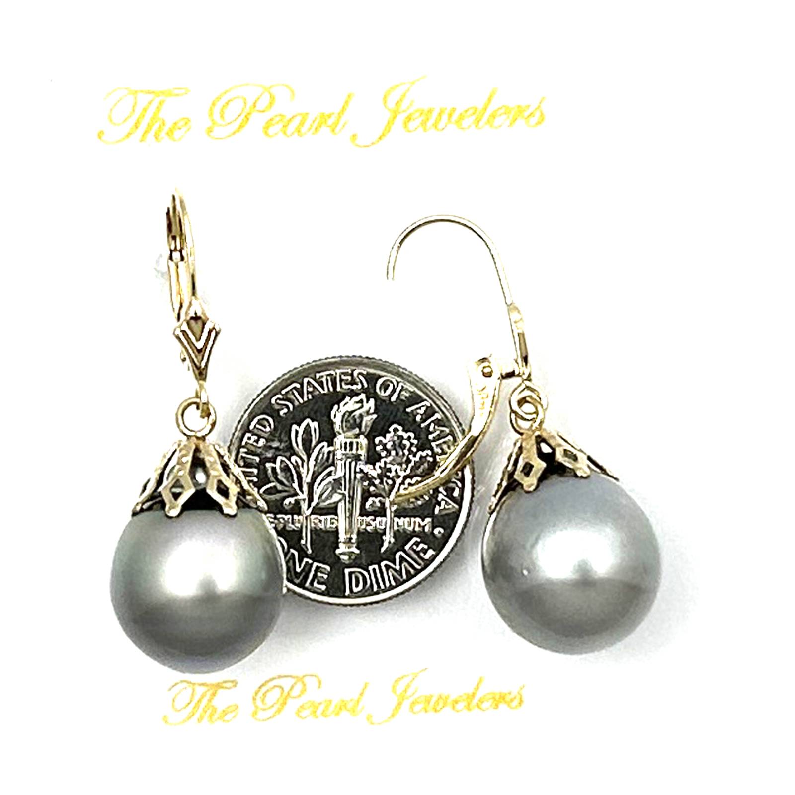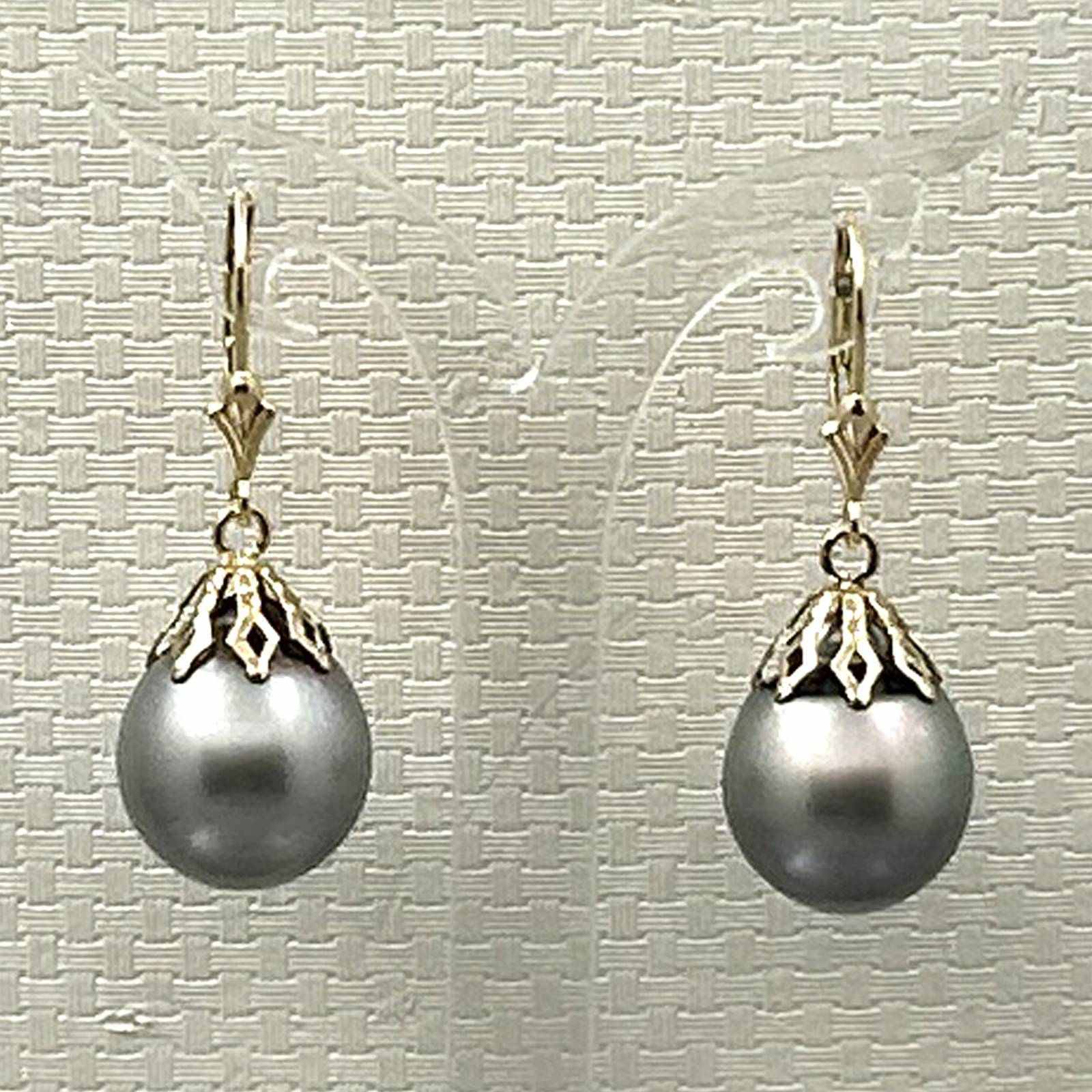 14k Yellow Gold Grey Baroque Tahitian Pearl Leverback Dangle Earrings