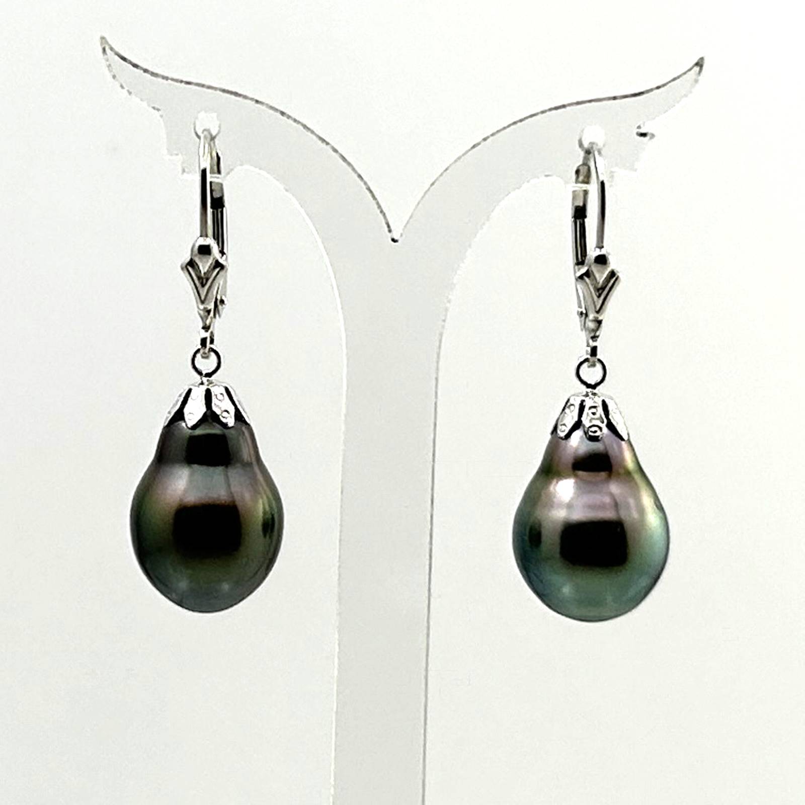 **Classic Baroque Tahitian Pearl Dangle Earrings – 14kt White Gold**