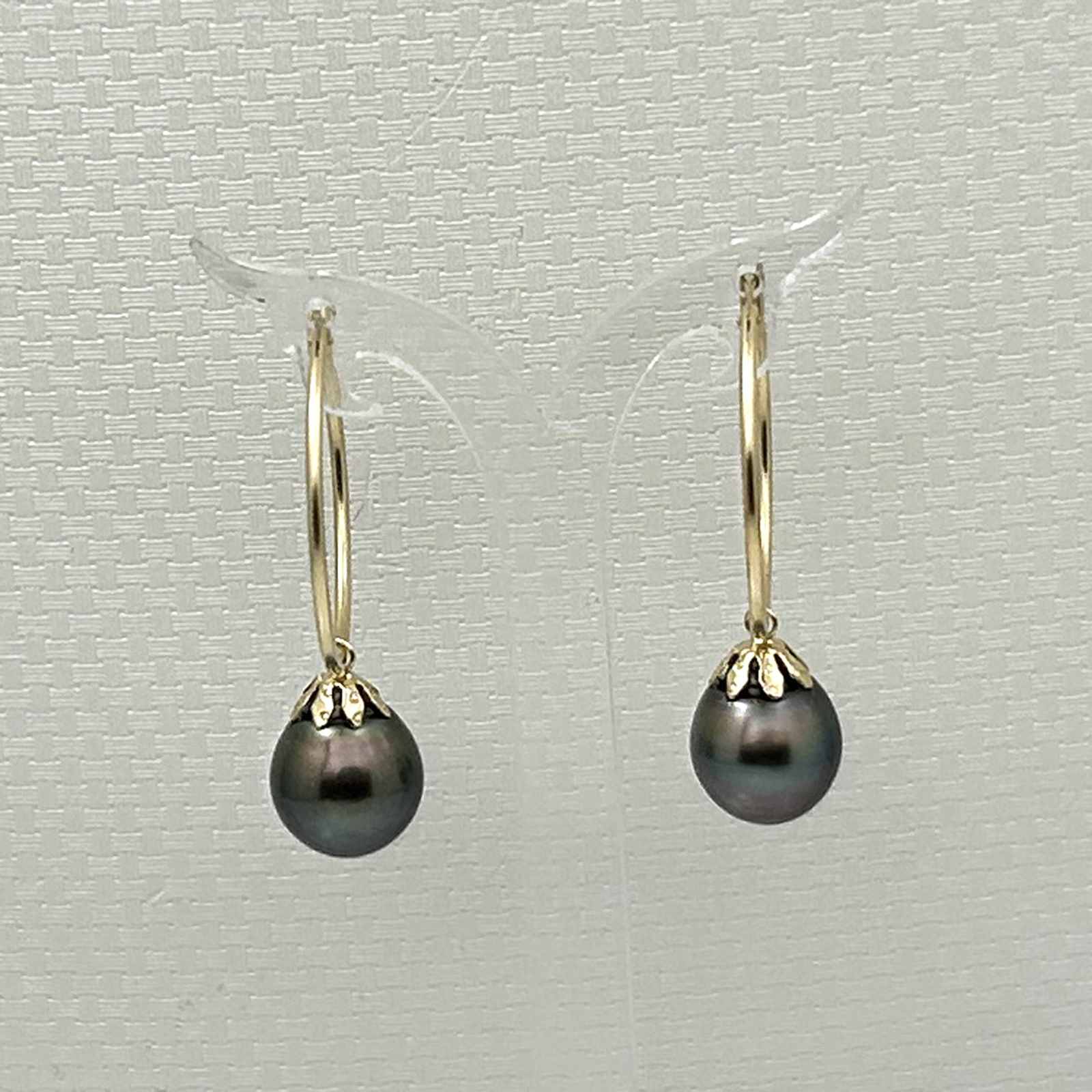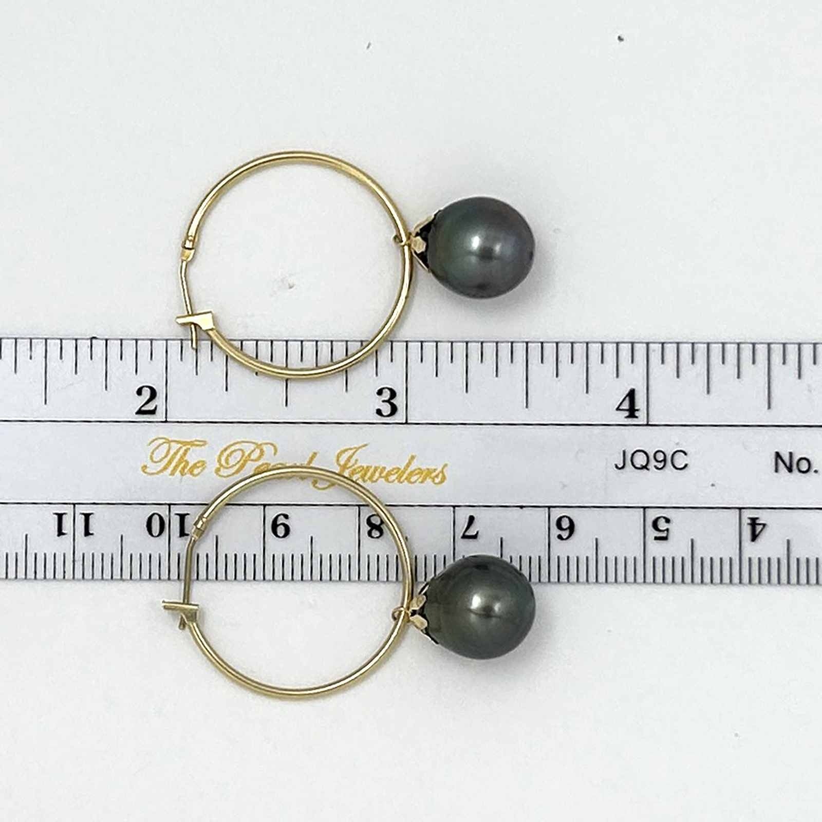 **Classic Tahitian Pearl Hoop Earrings ā 14k Yellow Gold**