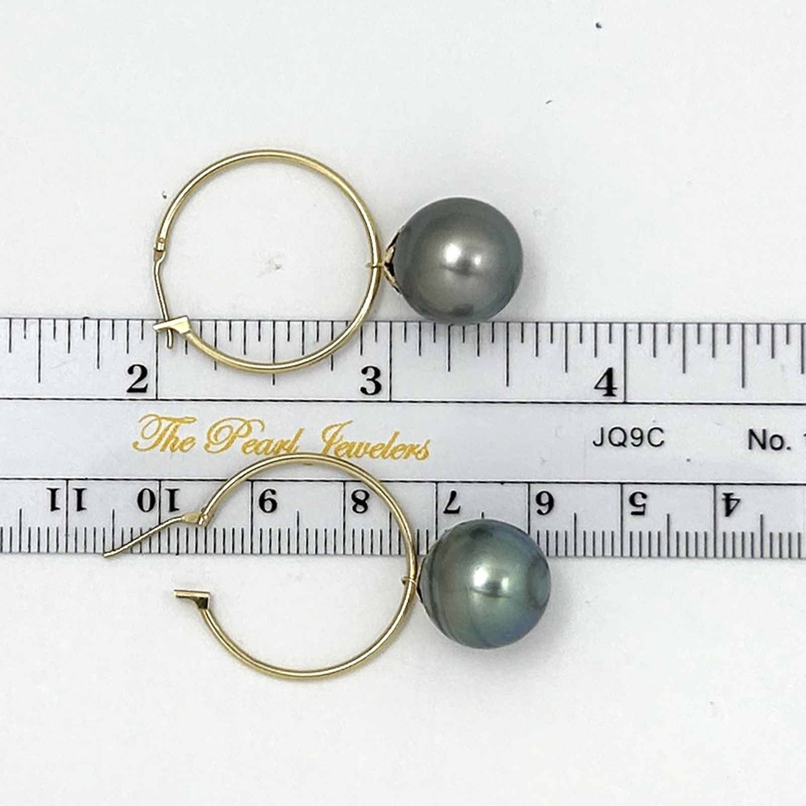 **Natural Black Tahitian Pearl Hoop Earrings ā 14k Yellow Gold**