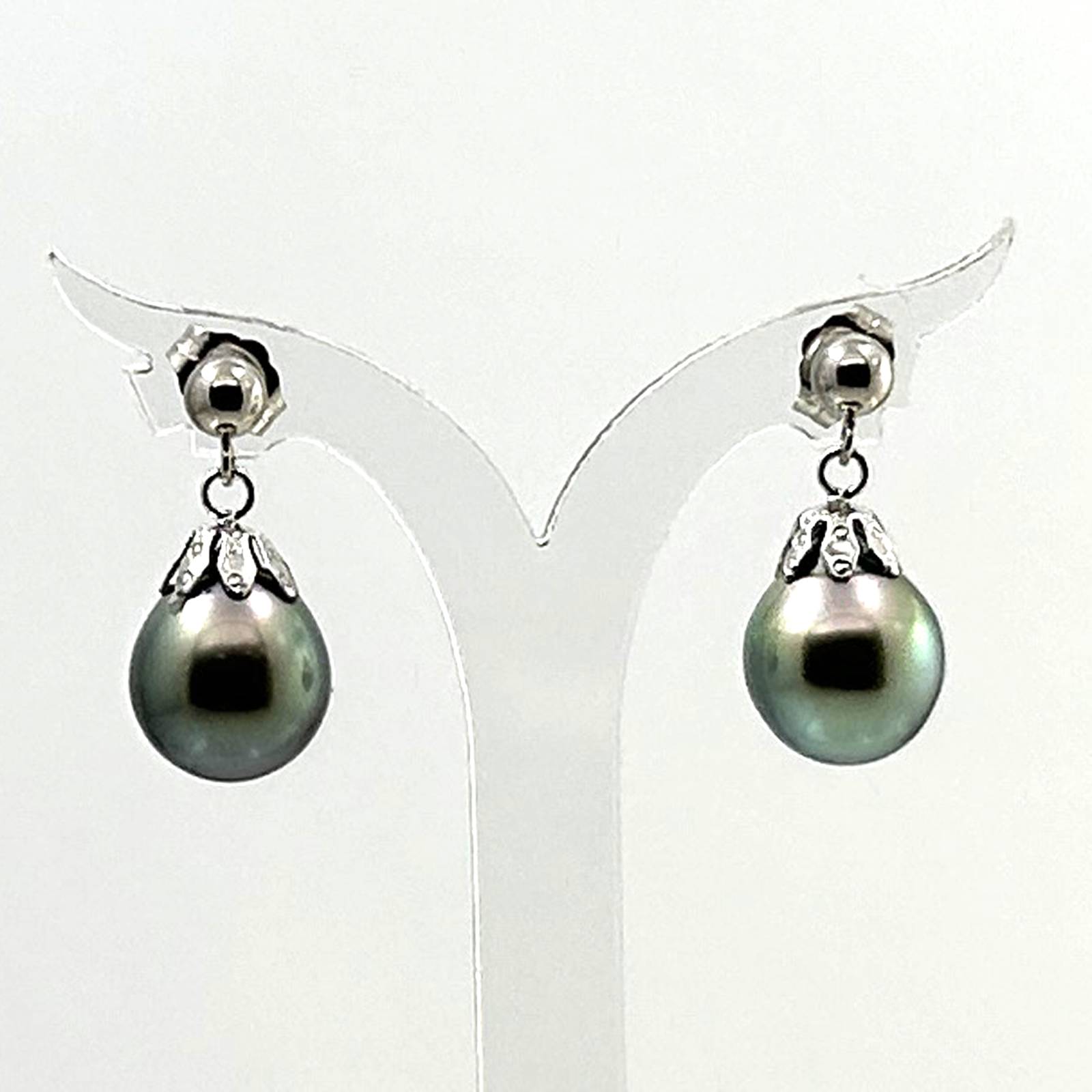 **Baroque Tahitian Pearl Dangle Earrings ā 14k White Gold**