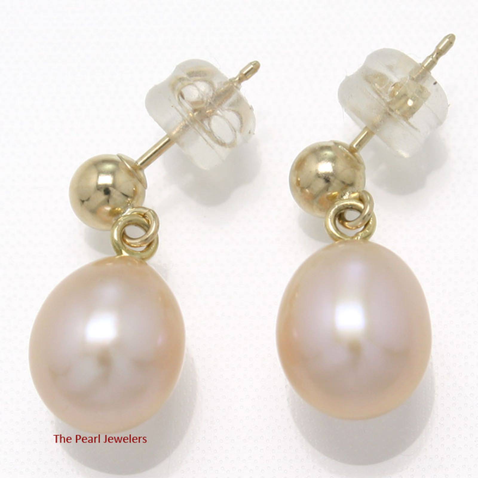 Small Peach Pearl Stud Dangle Earrings ā 14k Yellow Gold designed for comfort and dependable daily wear.