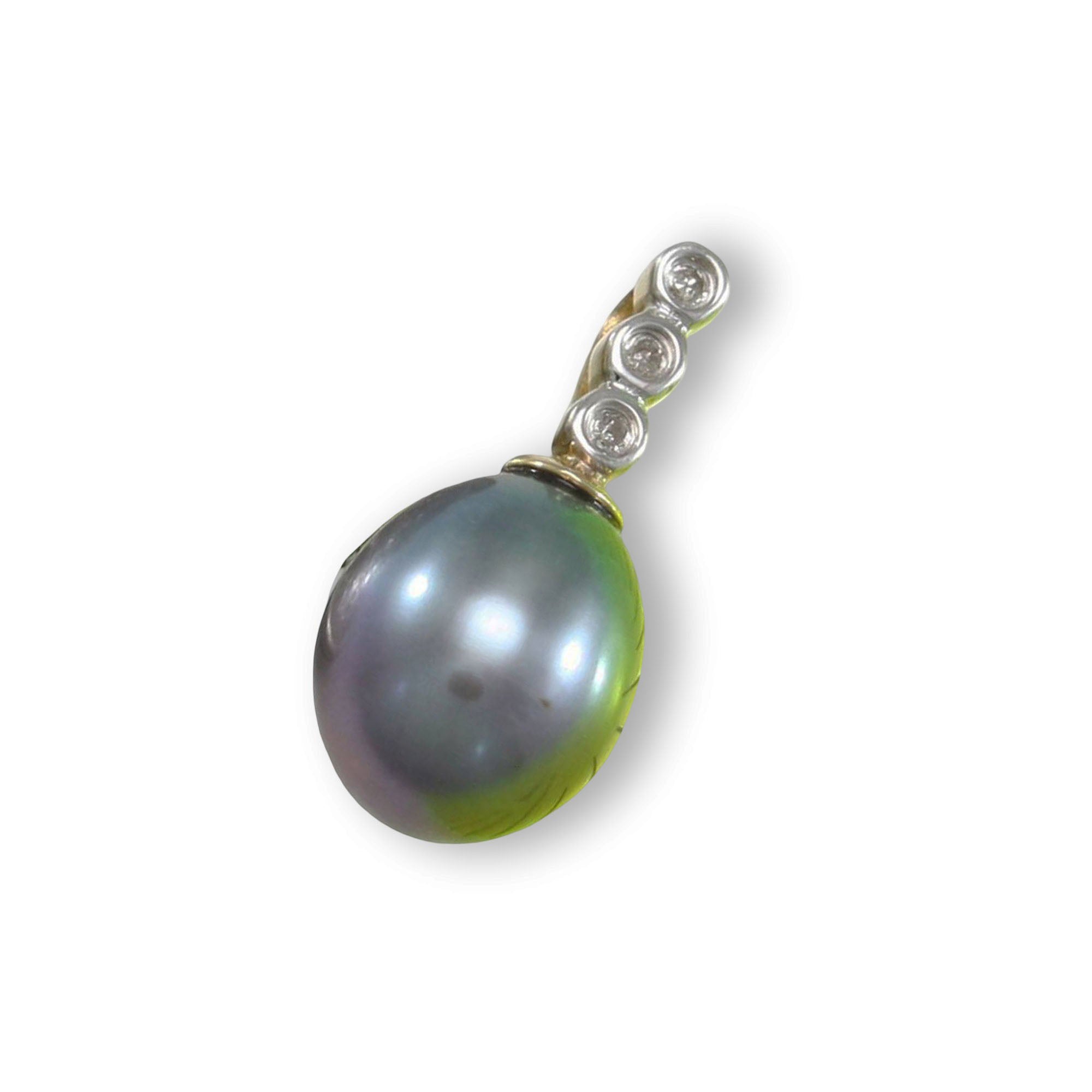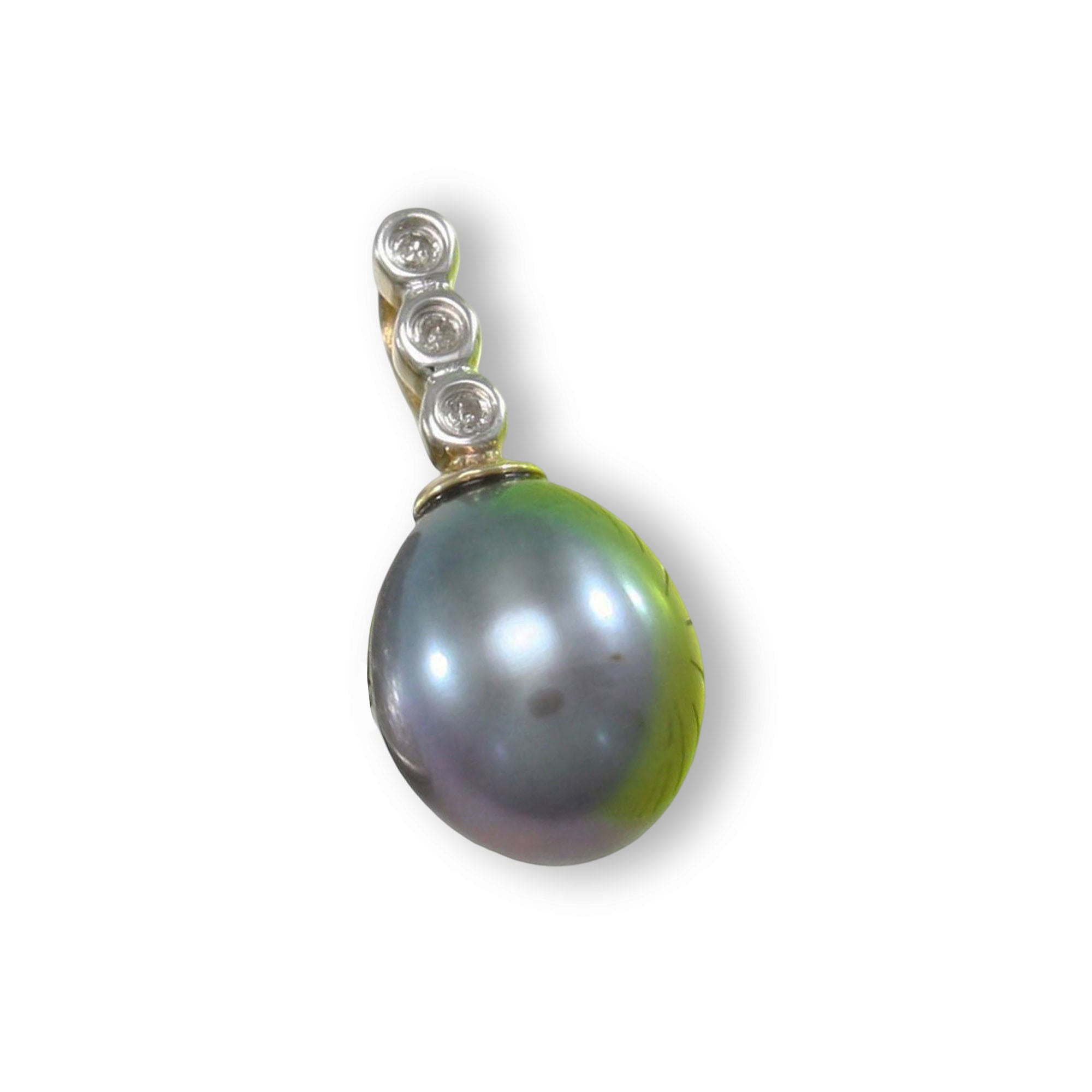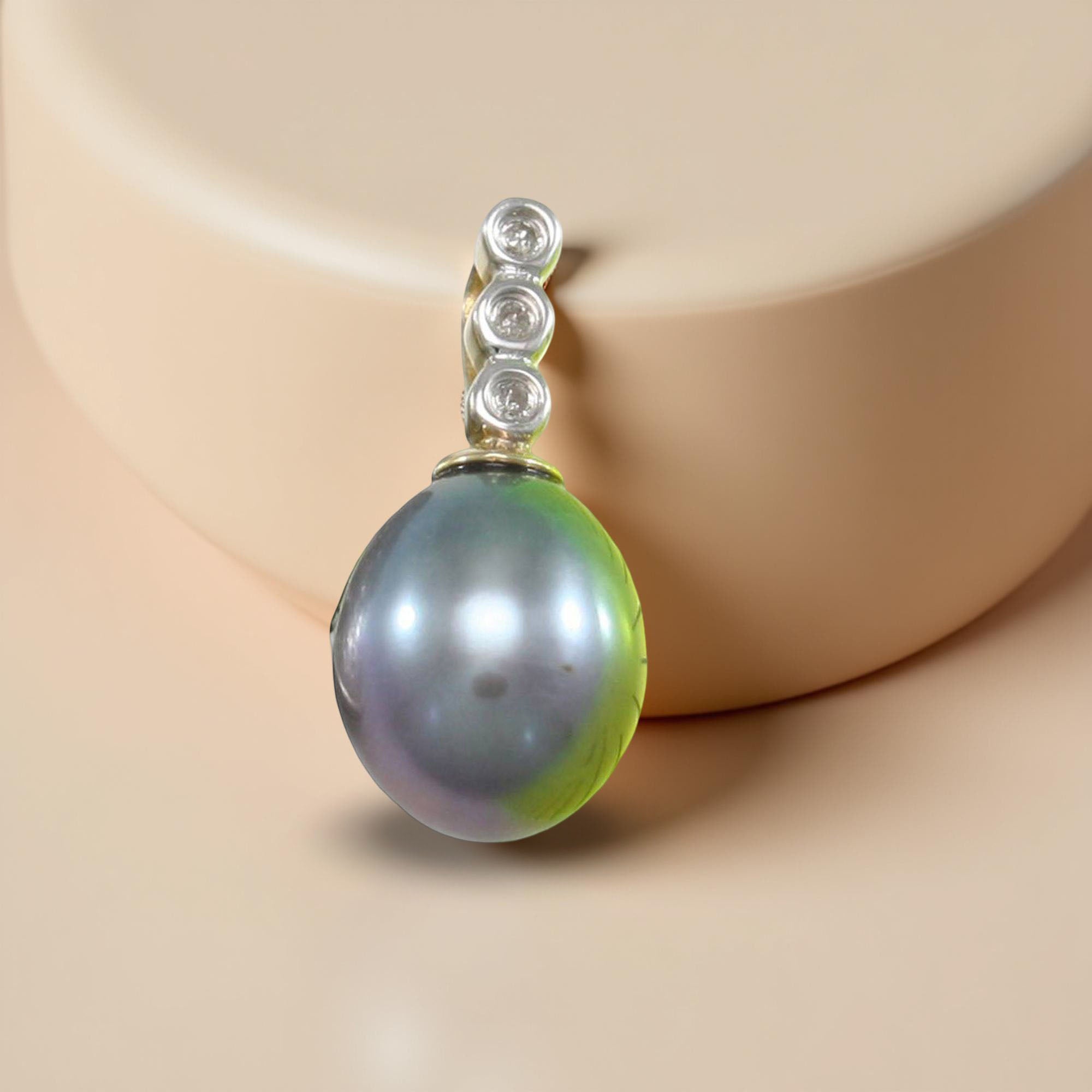 Black Pearl Pendant – 14k Yellow Gold + Diamond
