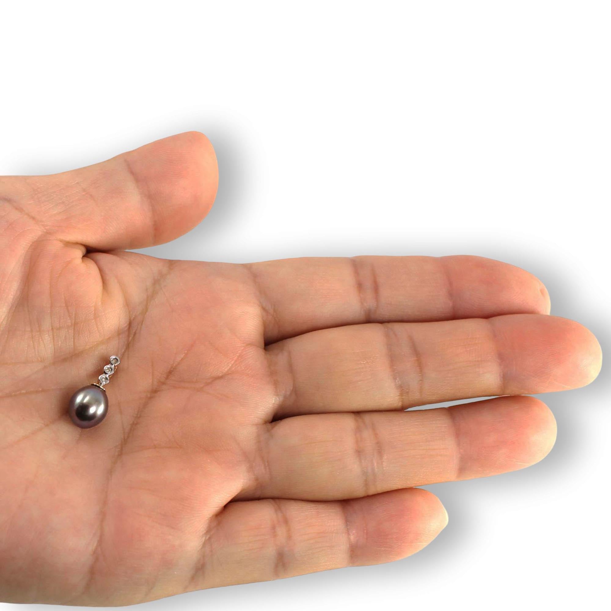 This 7–7.5mm cultured black pearl pendant is crafted in solid 14k yellow gold and features three diamonds. Designed for comfort and dependable daily wear.