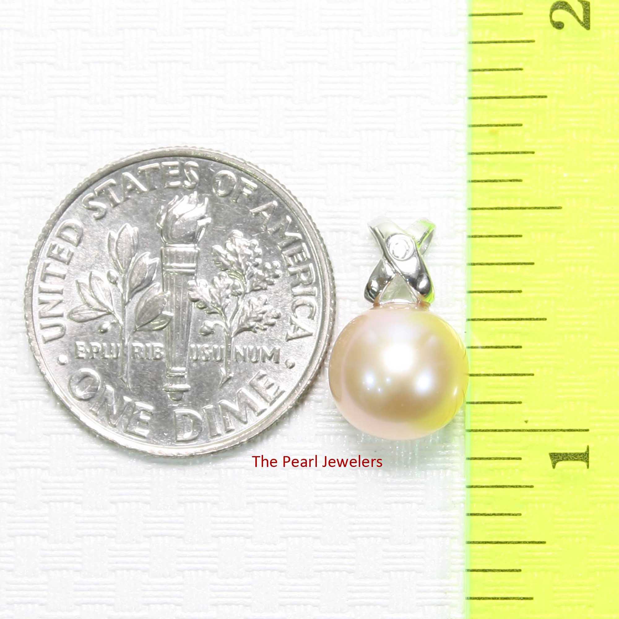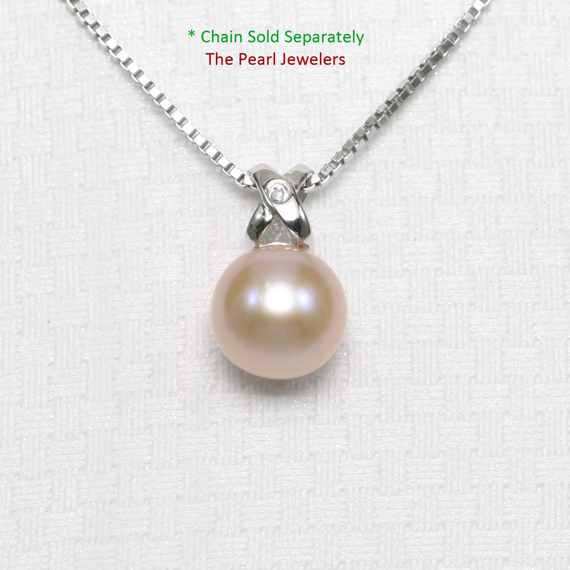 A 7.5mm premium lavender-pink freshwater pearl sits beneath a sparkling diamond bail in 14k white goldโa minimalist luxury for everyday wear.