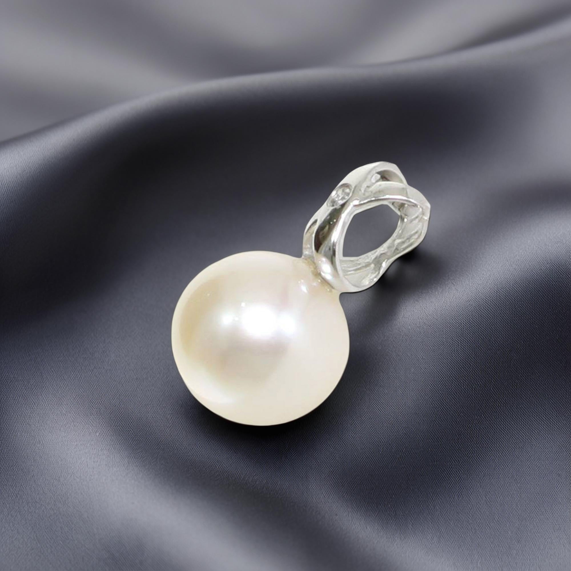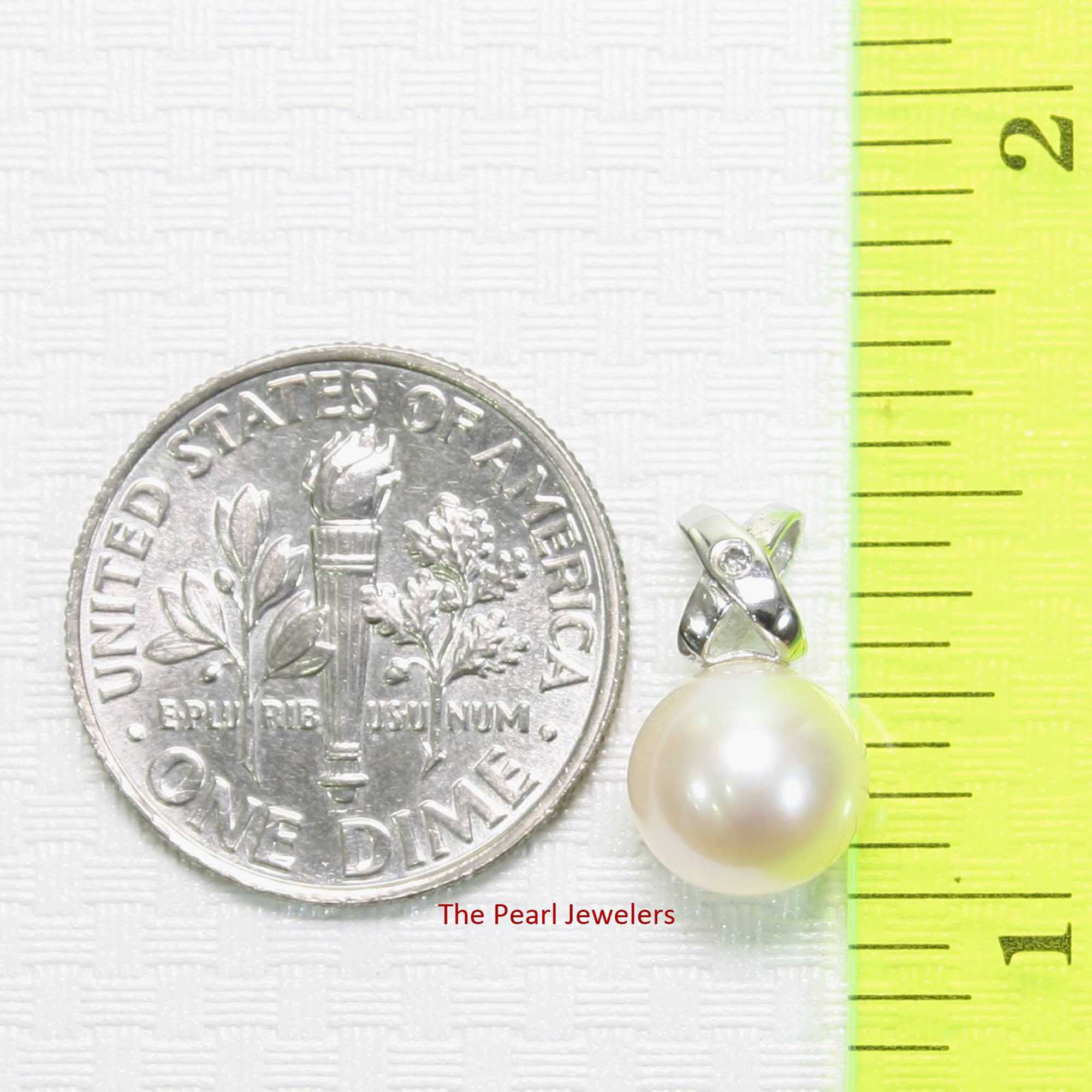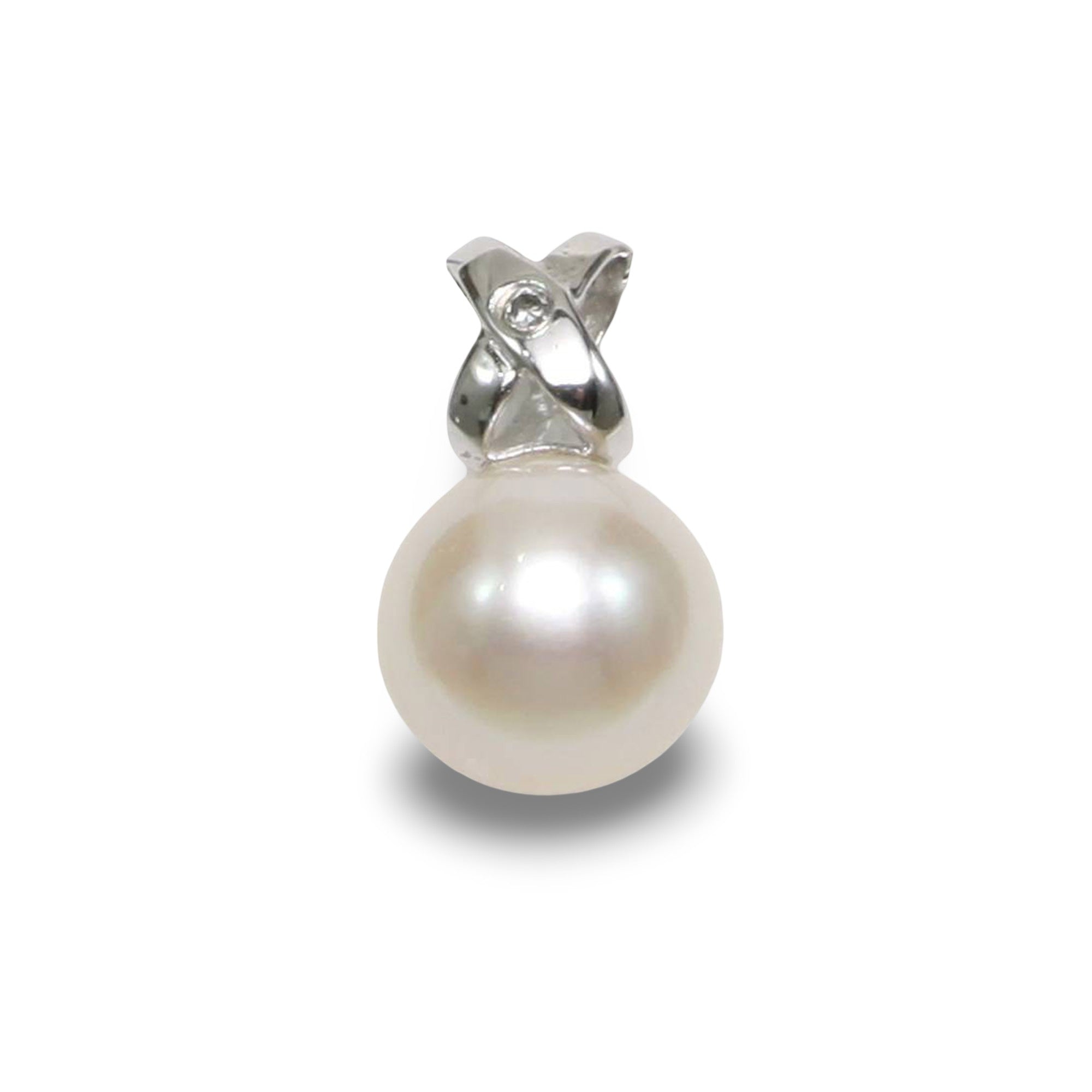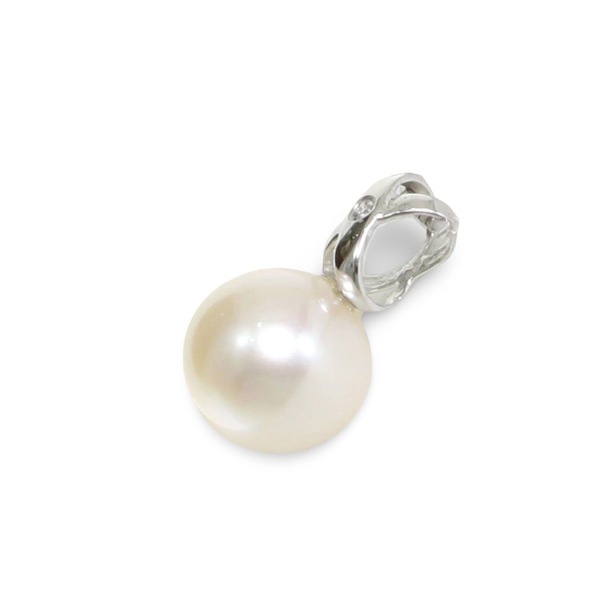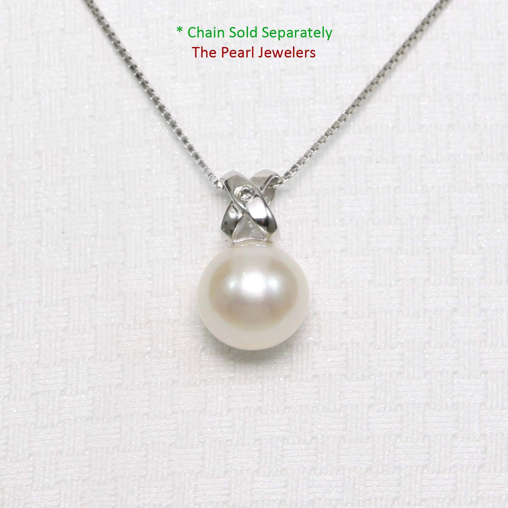 White Pearl Pendant – 14k White Gold with Diamond Bail