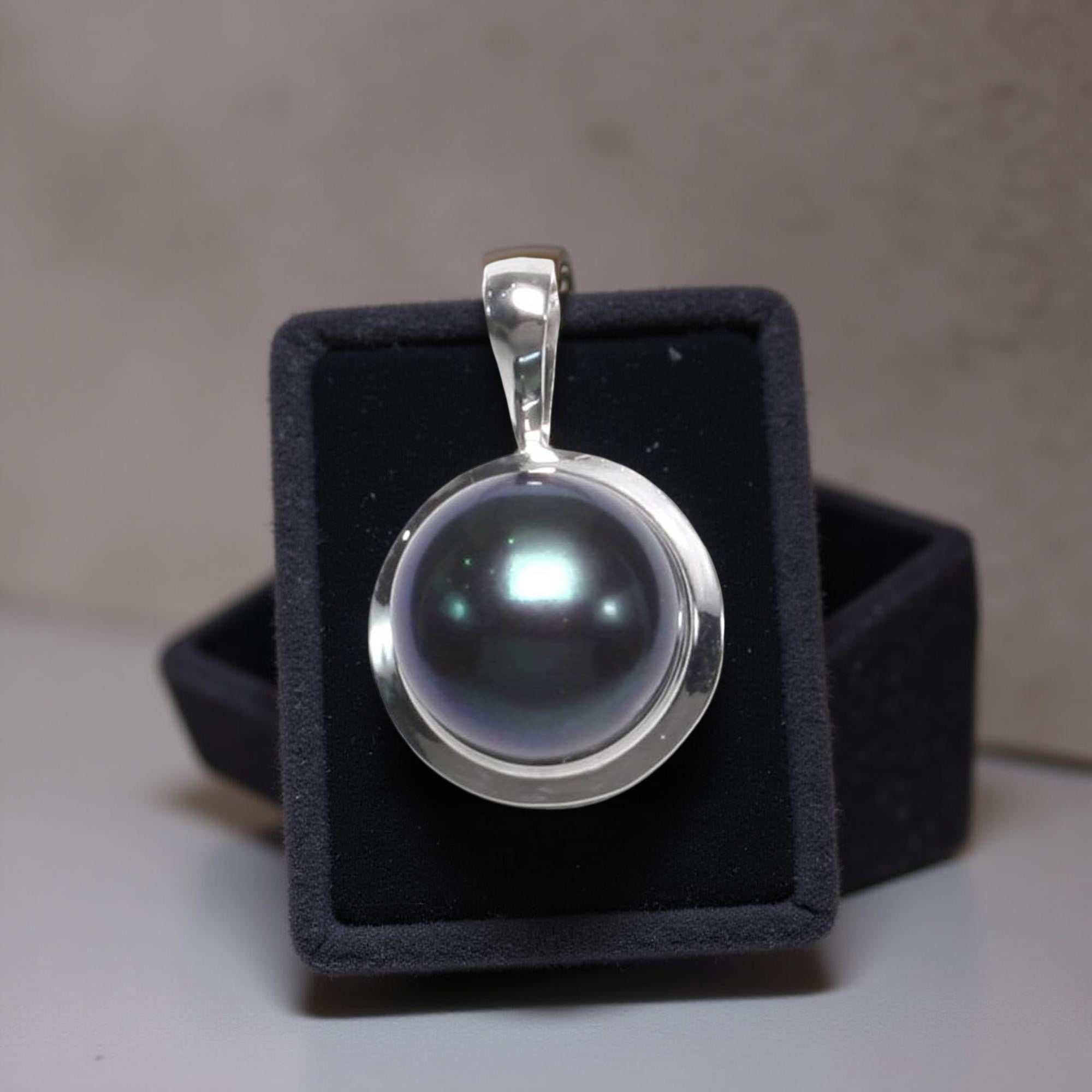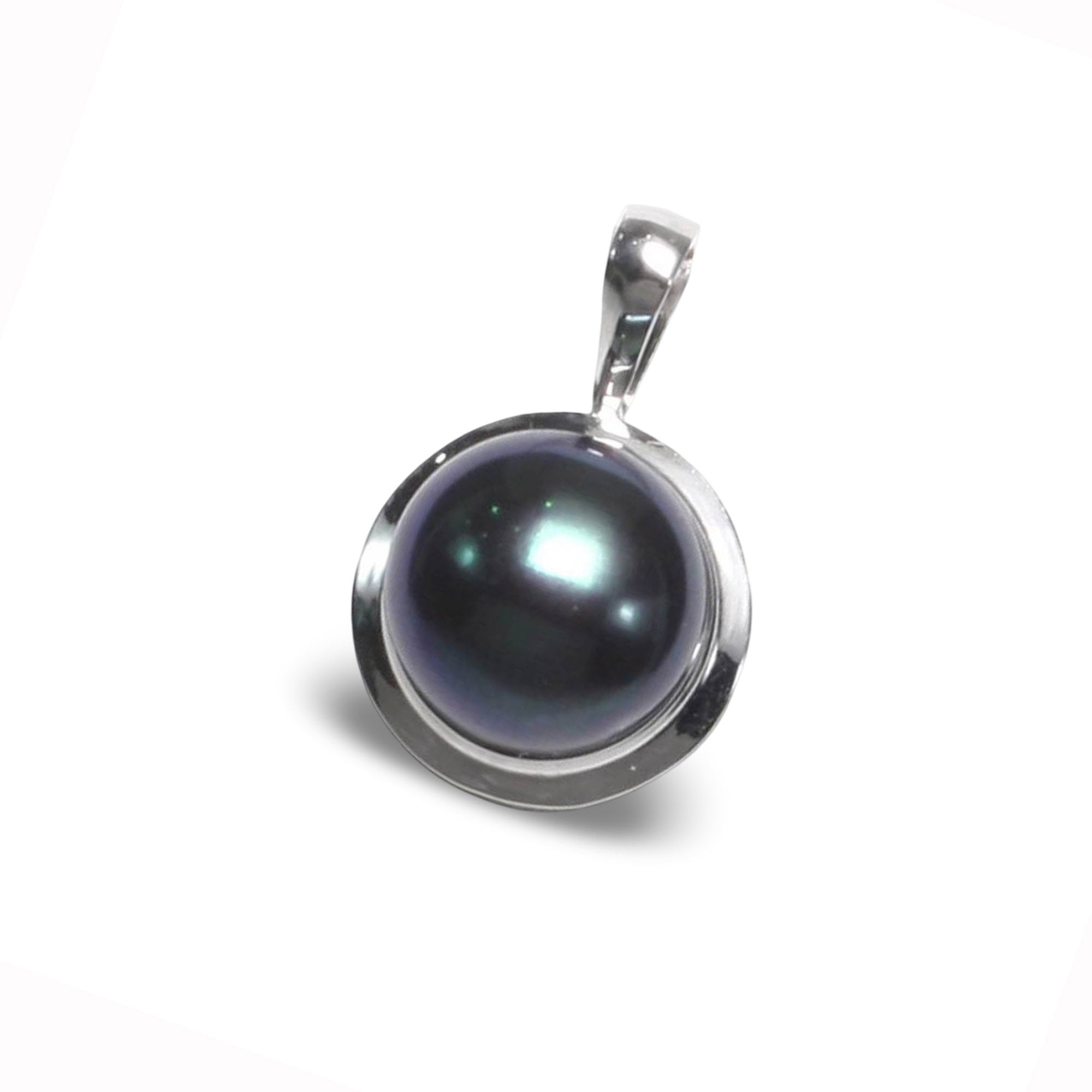 Black Pearl Pendant – 14k White Gold Encircles Design