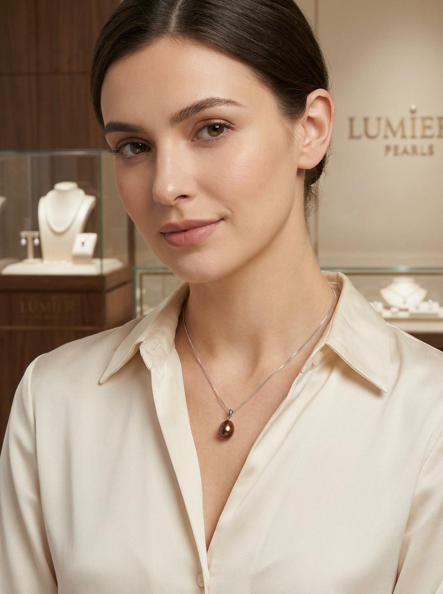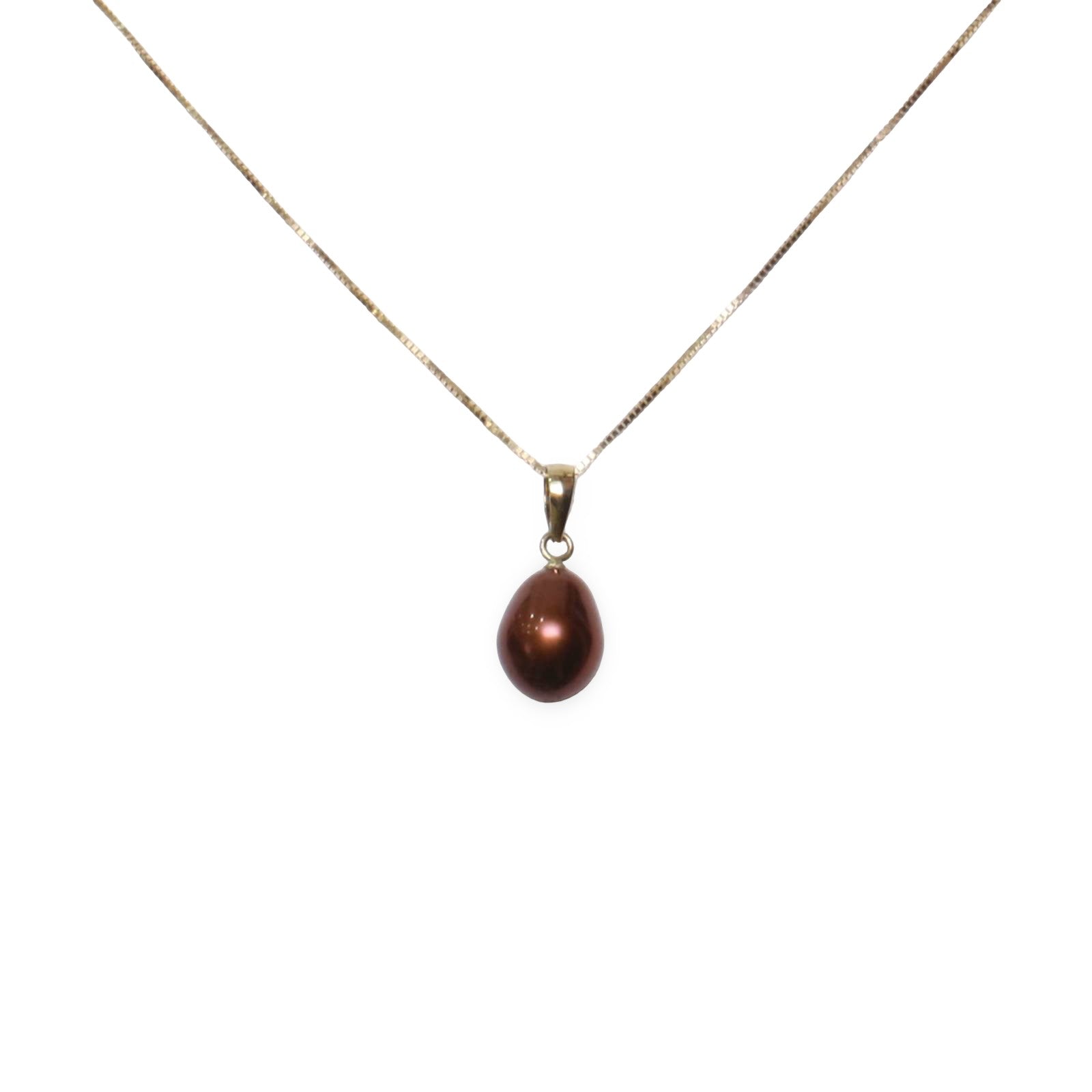 This simple yet rich-toned pendant features an 8mm AAA chocolate freshwater pearl, set with a polished 14k yellow gold bail, designed for comfort and dependable daily wear.