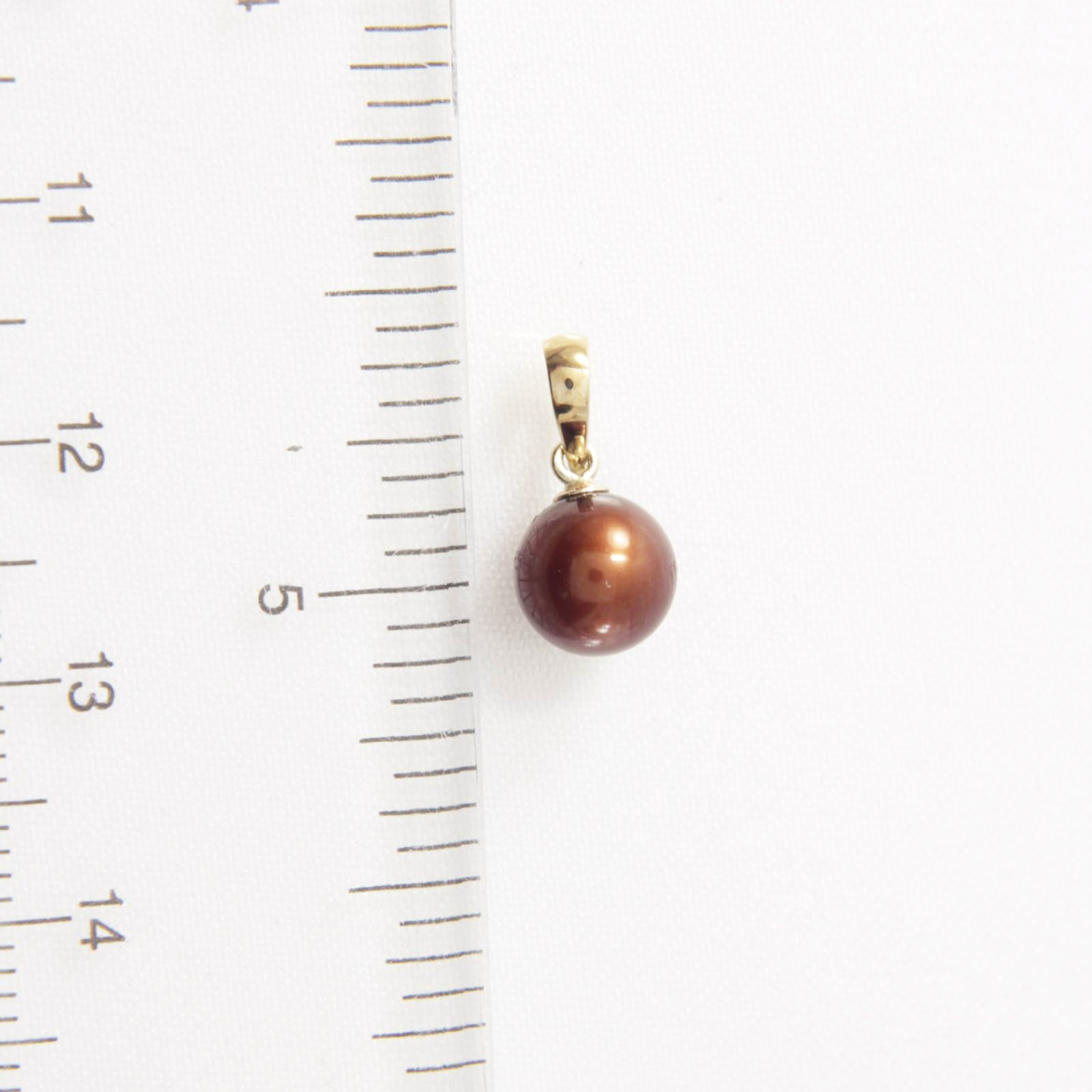A rich-toned 6.5β7mm chocolate freshwater pearl rests in a solid 14k yellow gold bail. Understated luxury for any look. A thoughtful gift choice and an easy match for casual or dressy looks.