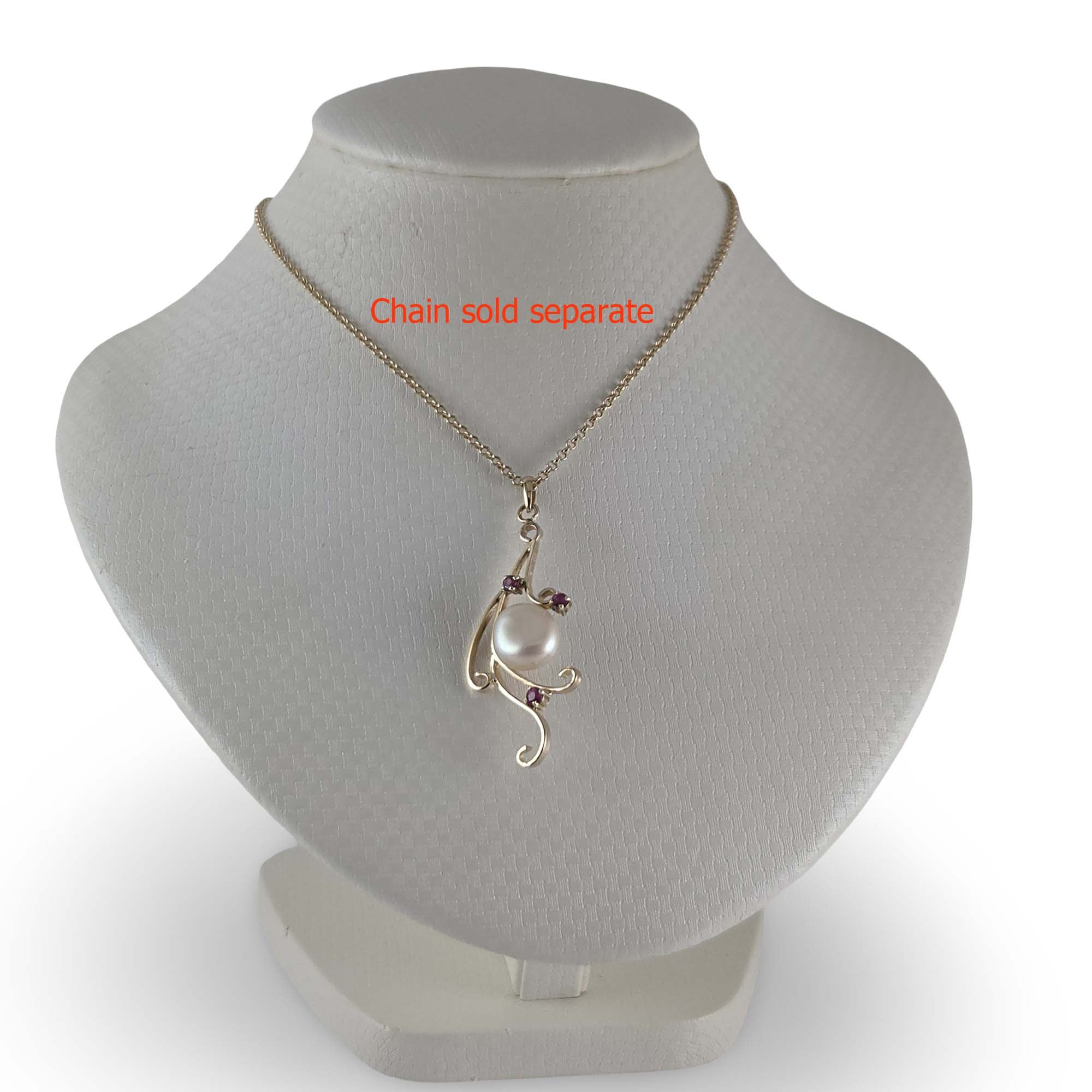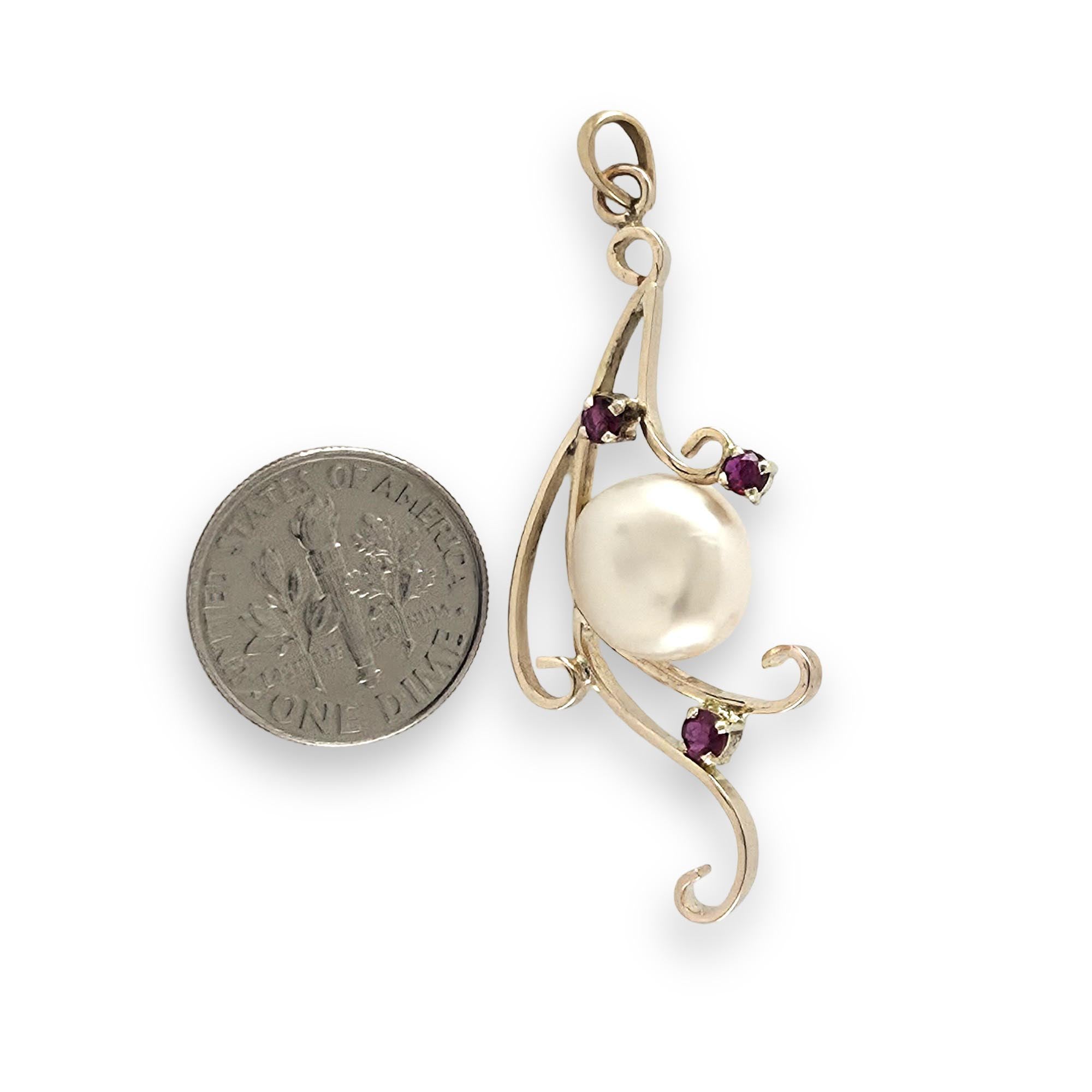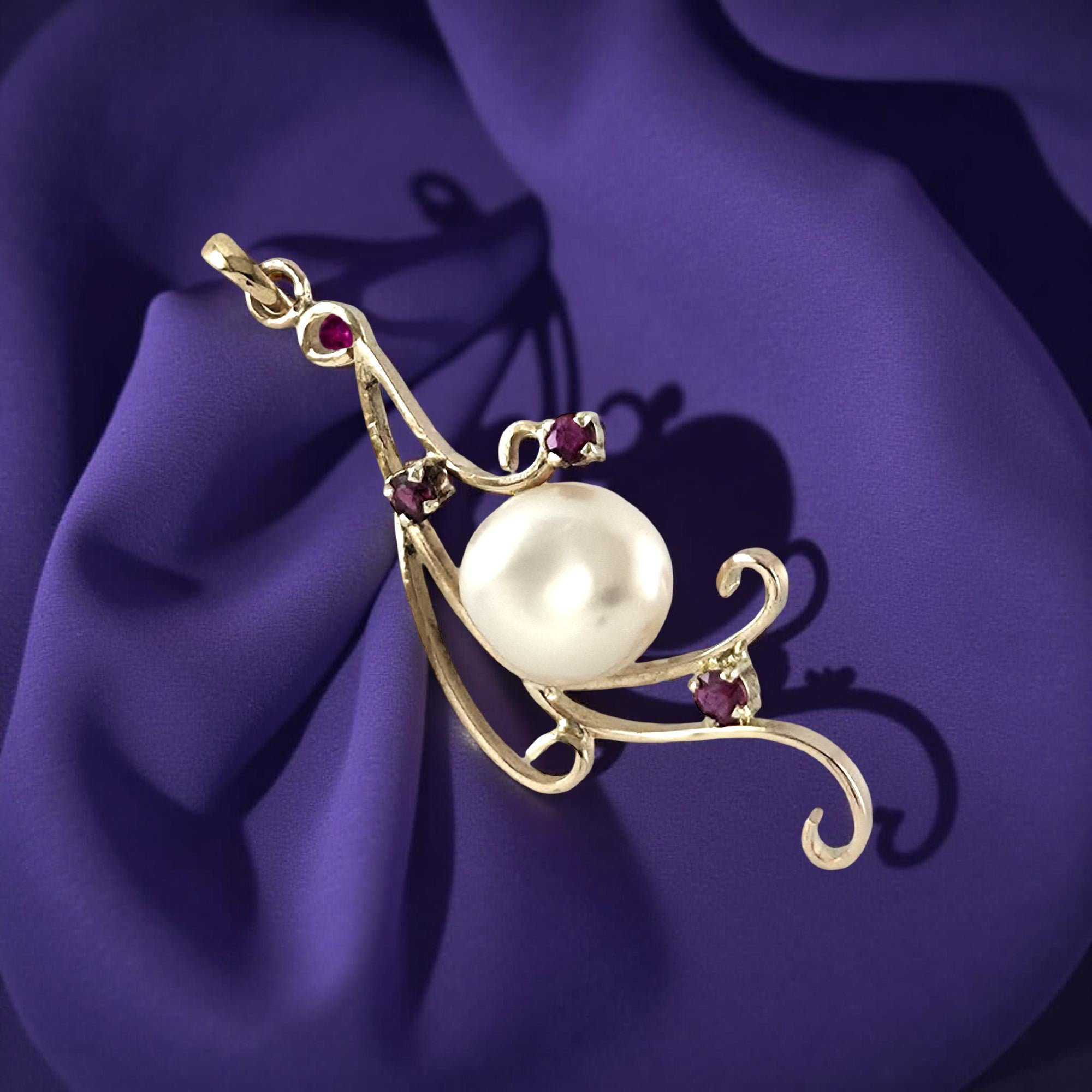 ❤️ Unique Pearl Pendant with Ruby Trio