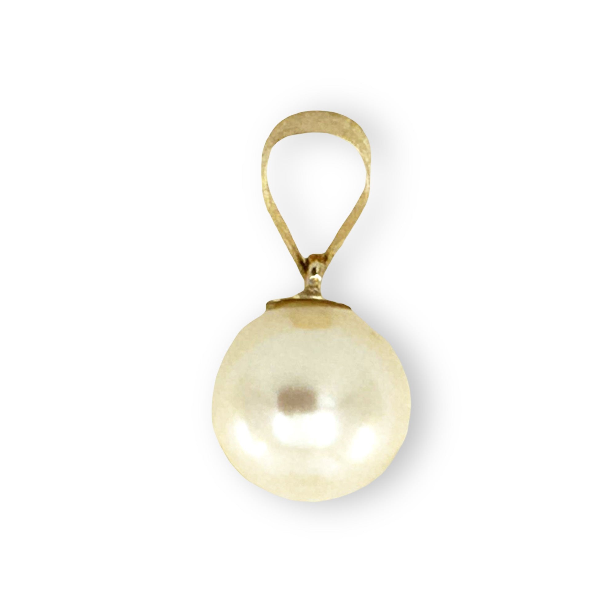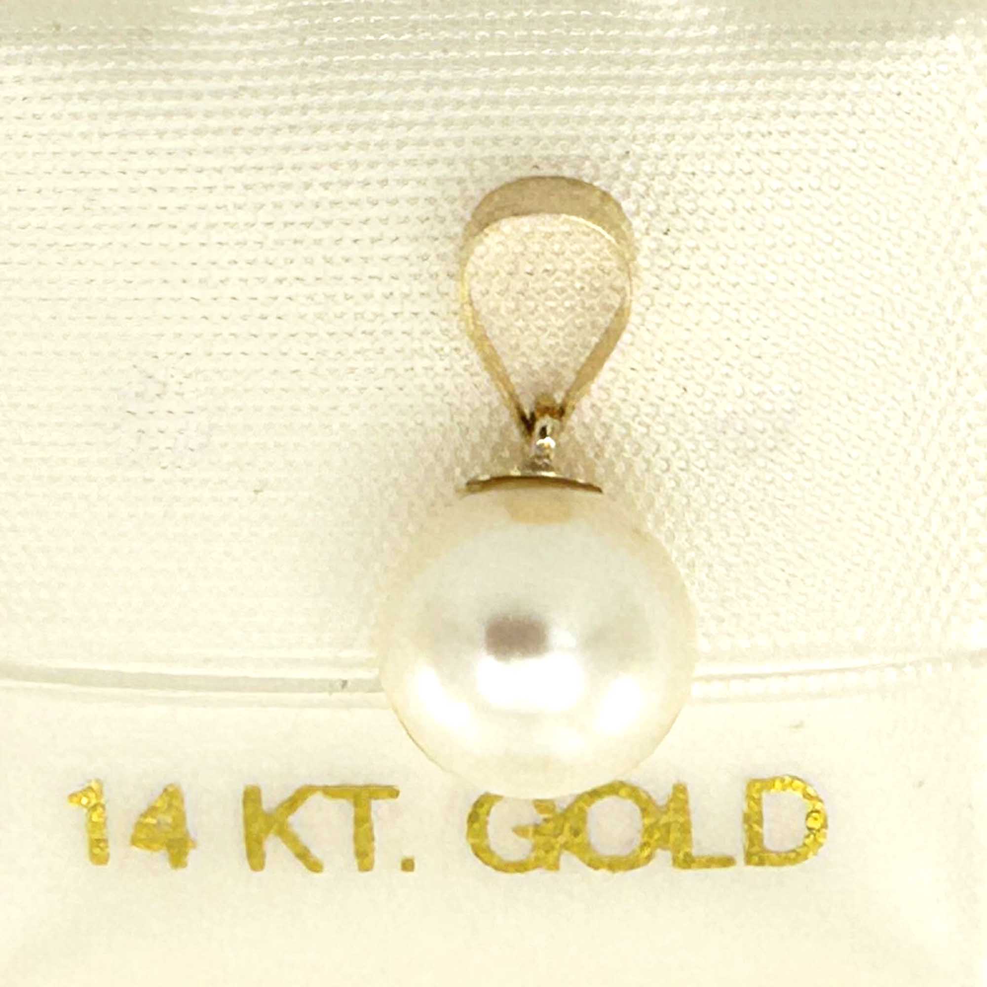 A classic 6.5β7mm white pearl in premium quality set in a smooth solid 14k yellow gold bail. Clean, elegant, and versatile. A thoughtful gift choice and an easy match for casual or dressy looks.