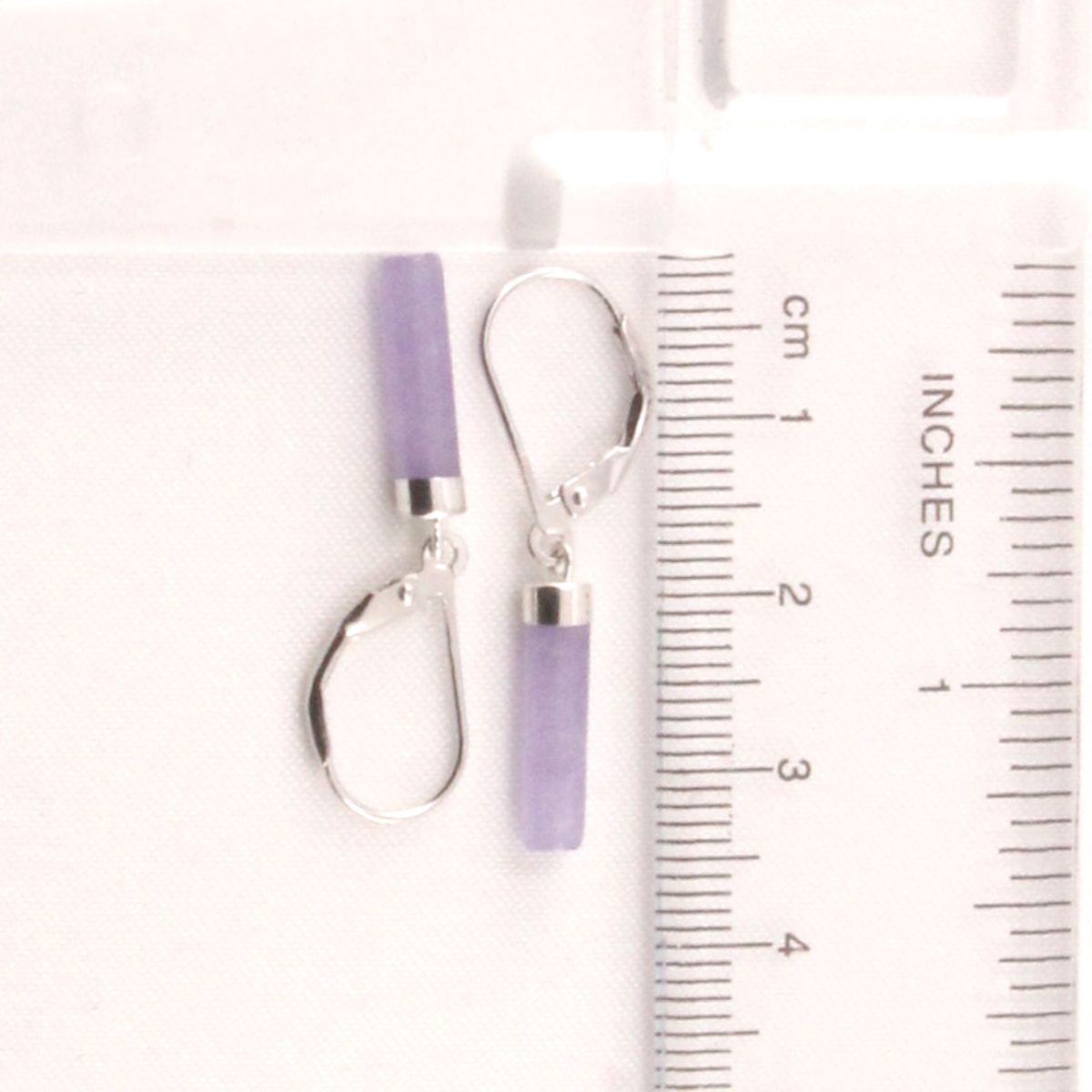Solid Sterling Silver 925 Lavender Jade Tube Leverback Earrings
