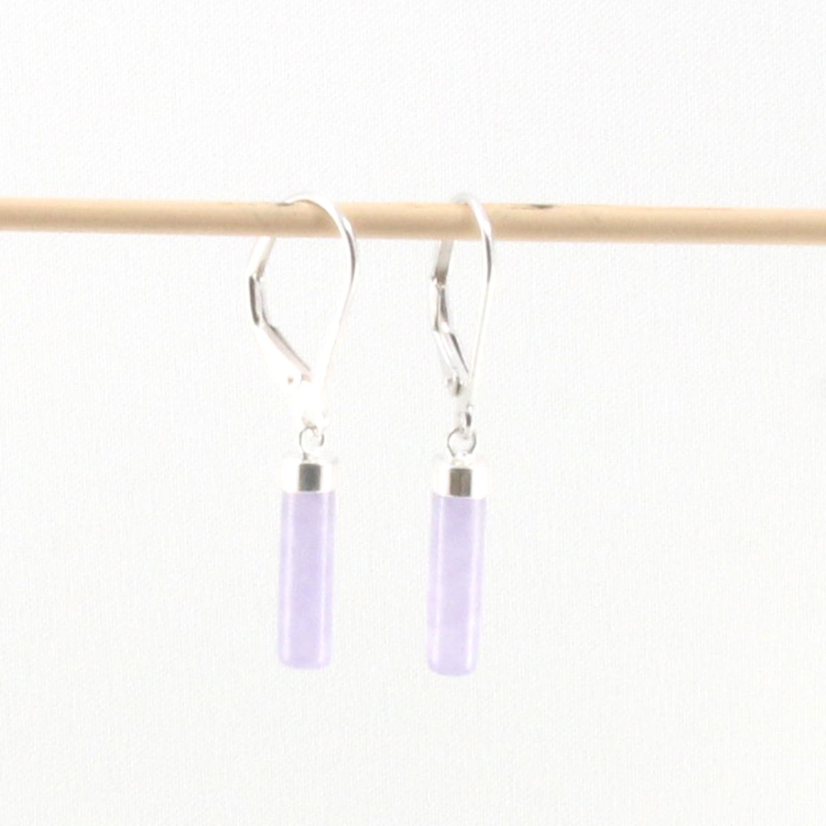 **Solid Sterling Silver 925 Lavender Jade Tube Leverback Earrings**