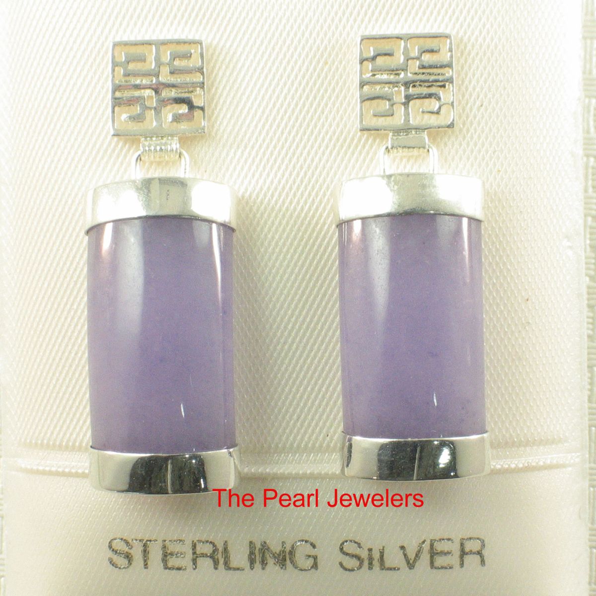**Solid Sterling Silver 925 Good Fortune Lavender Jade Dangle Earrings**