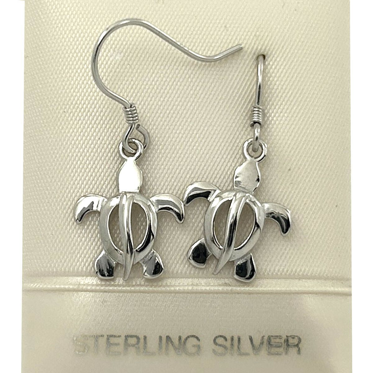 **Hawaiian Honu Sea Turtle Sterling Silver Dangle Earrings**