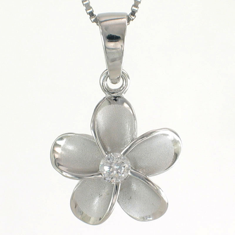 **Hawaiian Plumeria Sterling Silver CZ Pendant (10mm)**