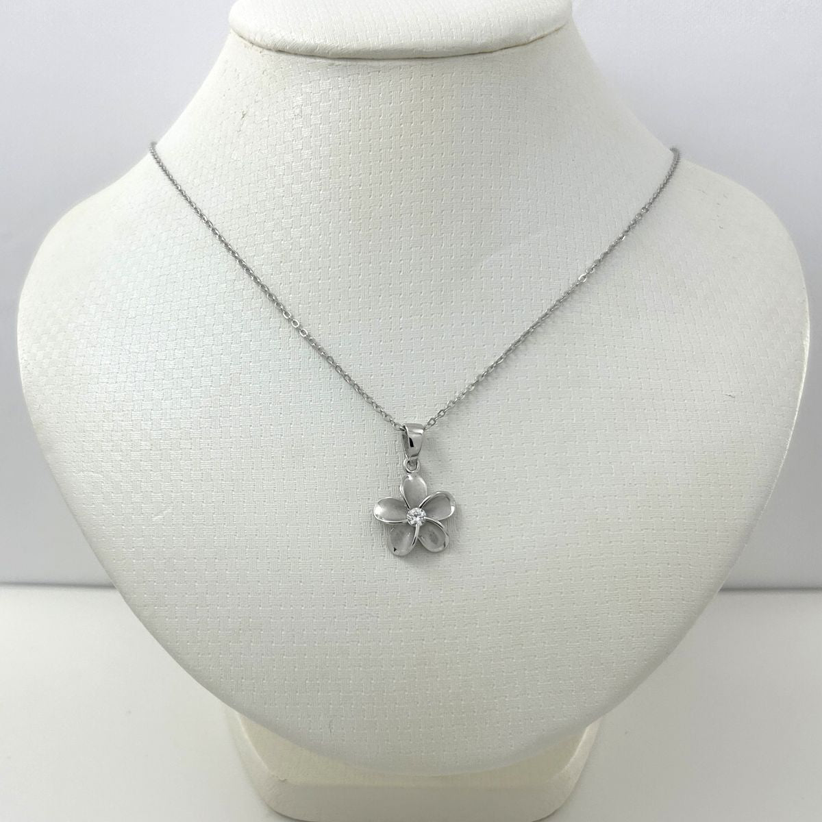 **Hawaiian Plumeria Sterling Silver CZ Pendant (14mm)**