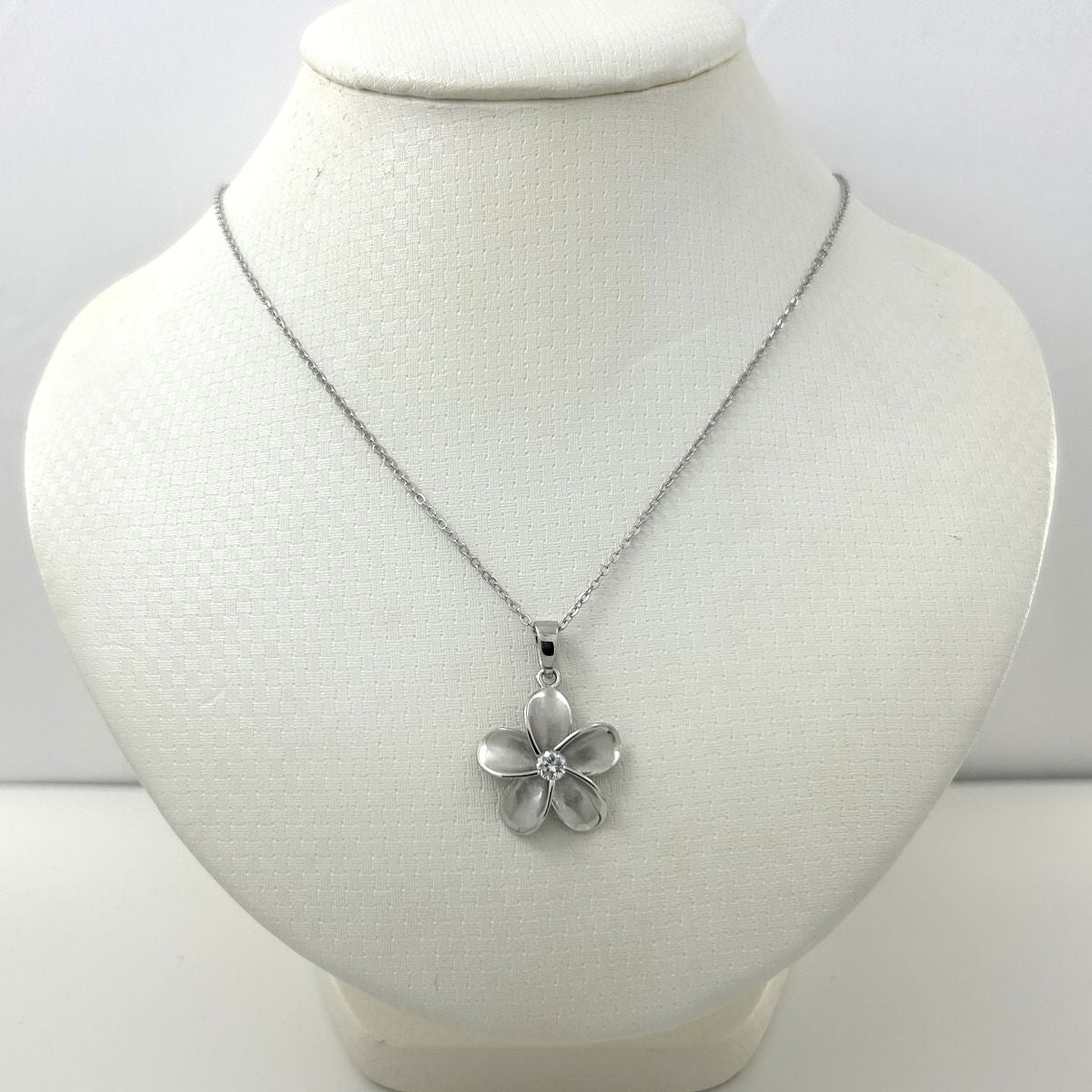 **Hawaiian Plumeria Sterling Silver CZ Pendant (19mm)**